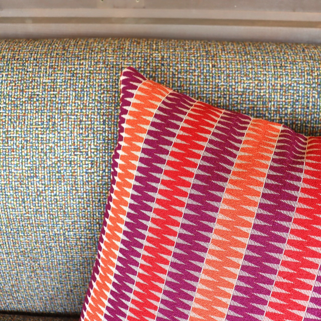 米ハーマンミラー社にて仕入れたファブリックを使用しています。シーティング用の生地のためしっかりとした造りで、独創的なパターンも魅力的。