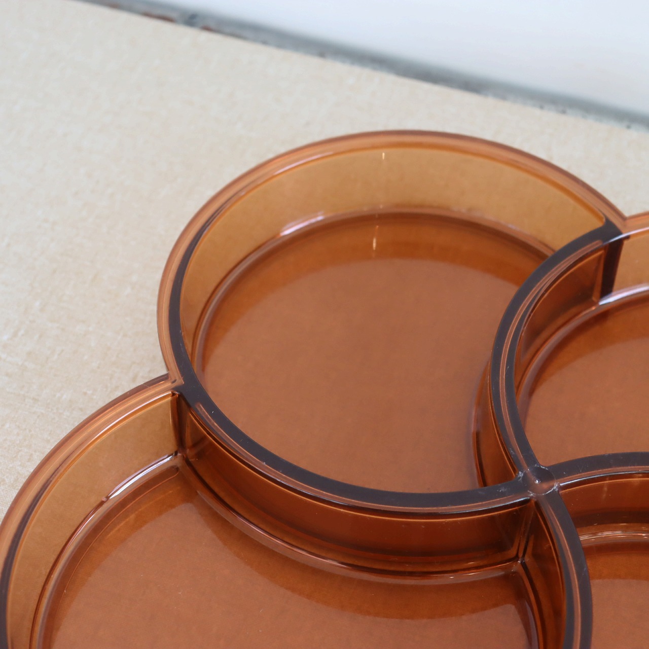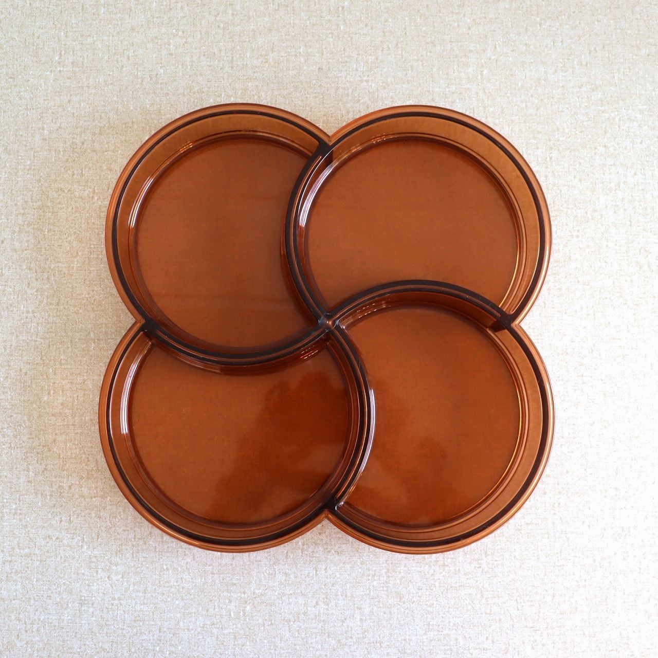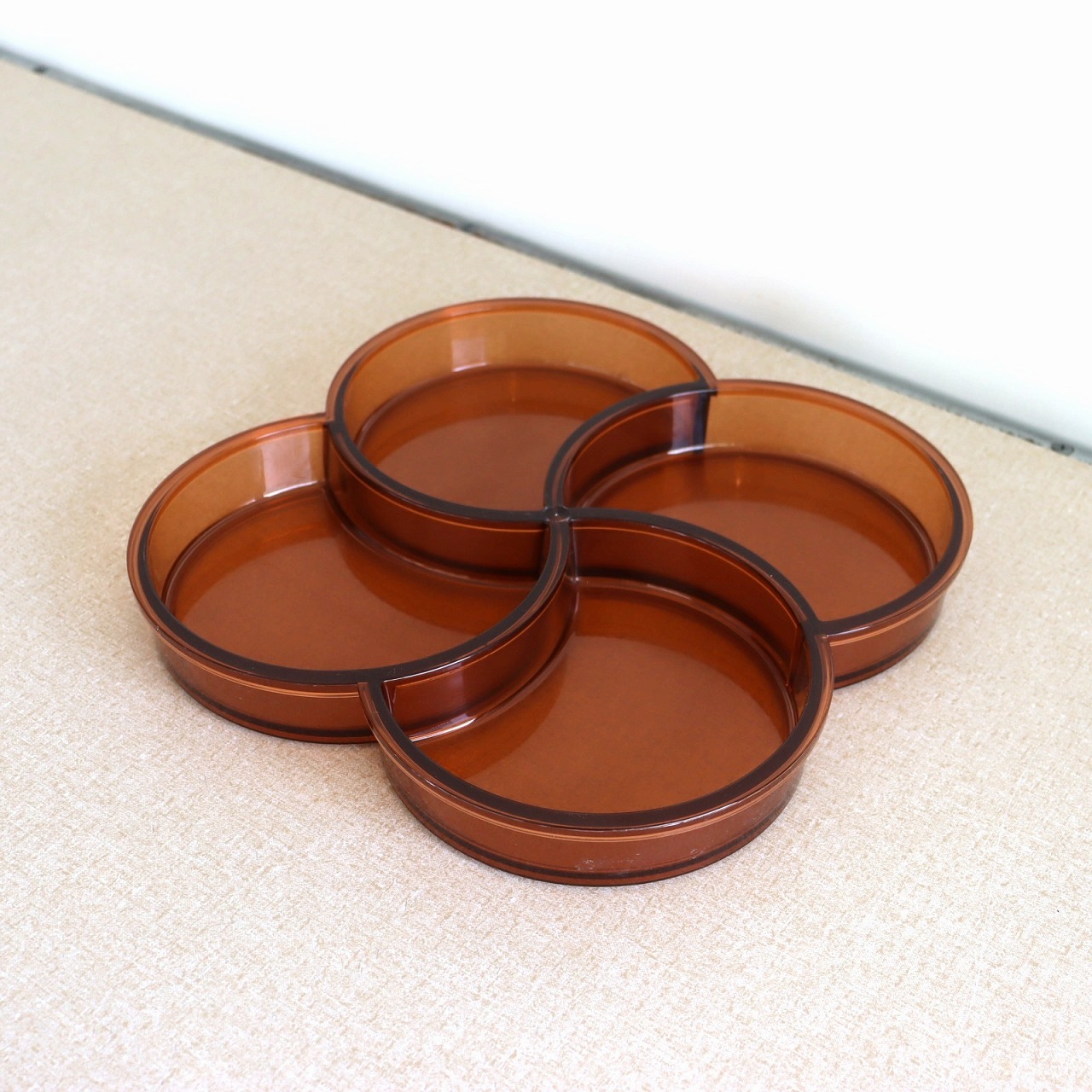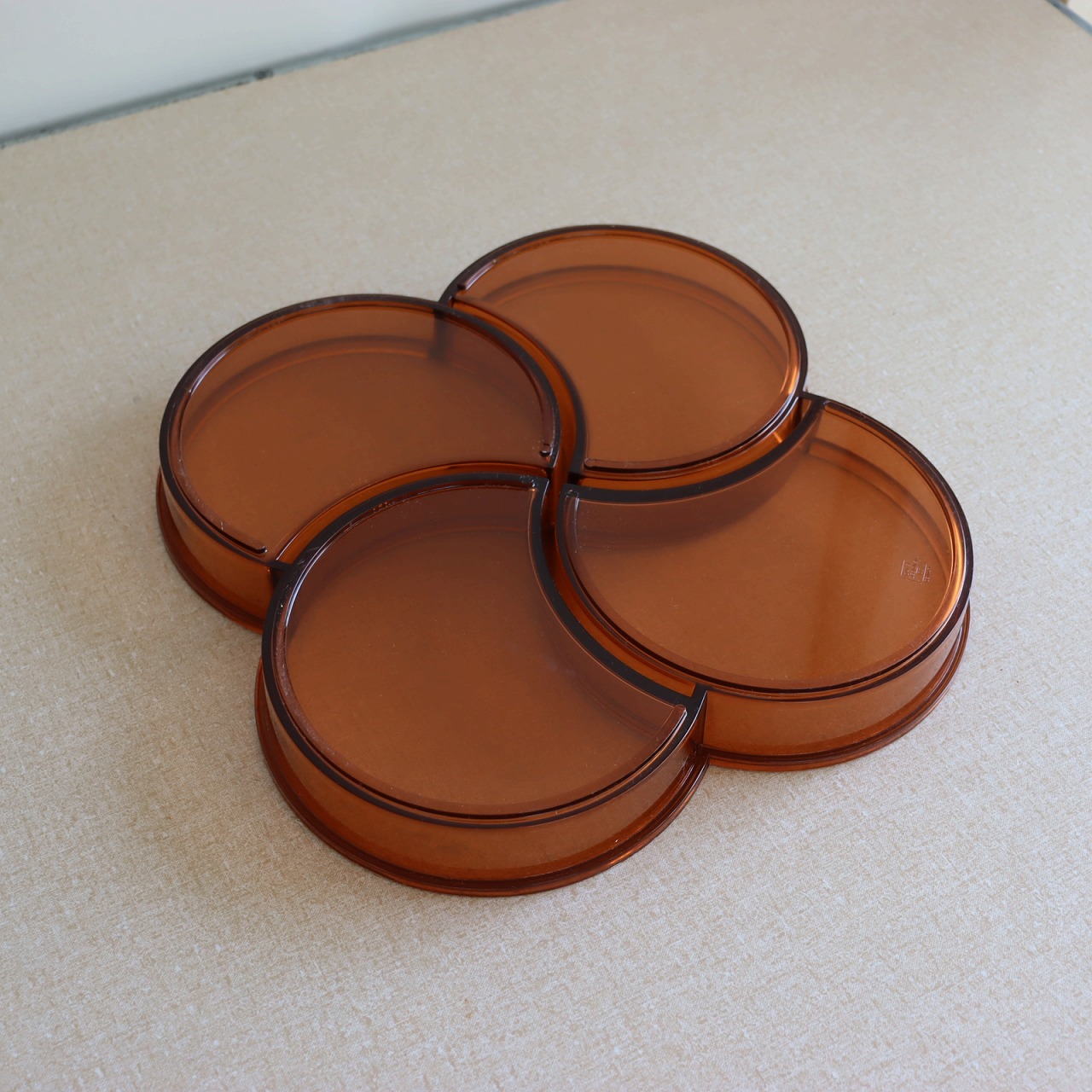 4つのポケットからなるプレスチックトレー。幾何学的でありながら、四葉のクローバーのような植物やお花もイメージされるデザインですね。