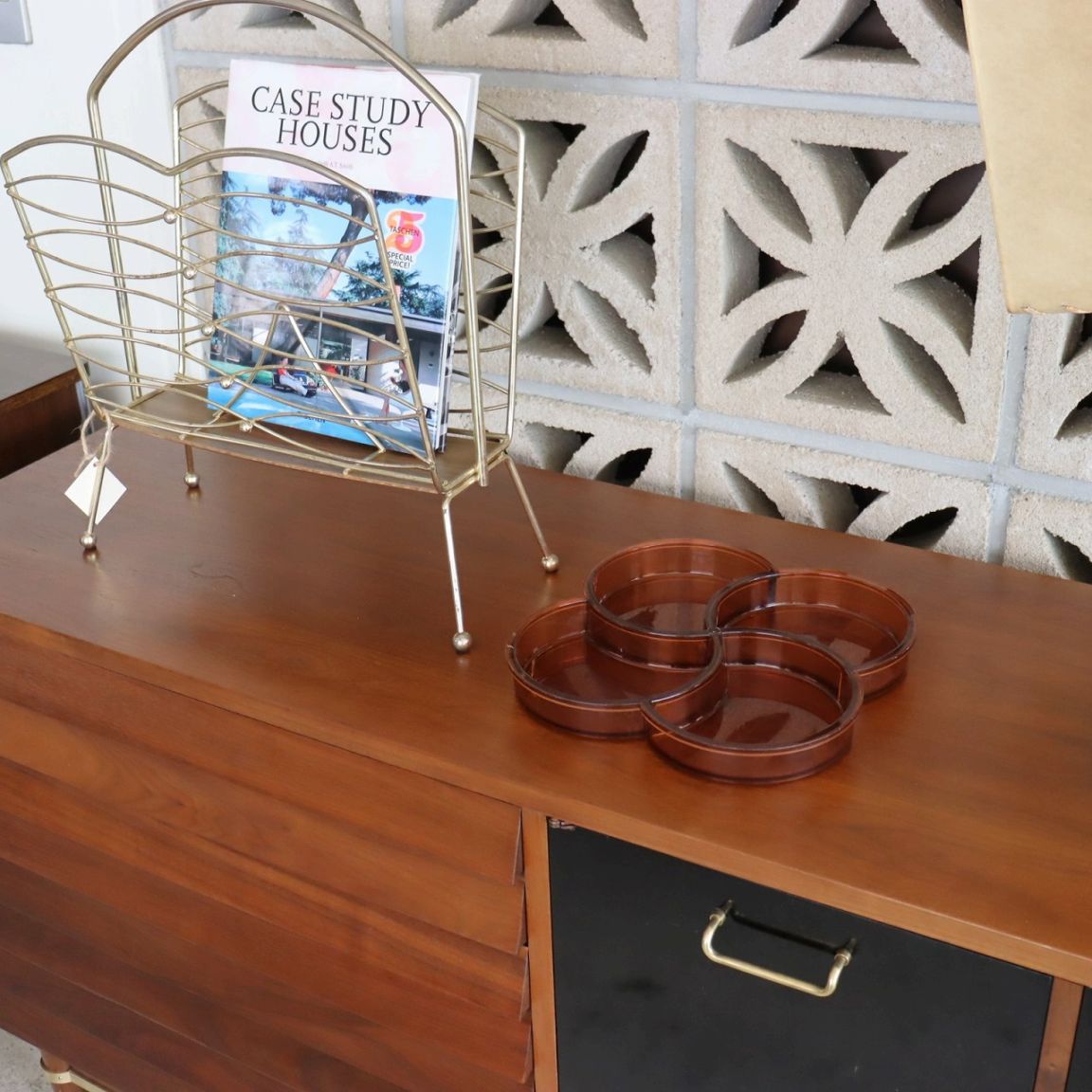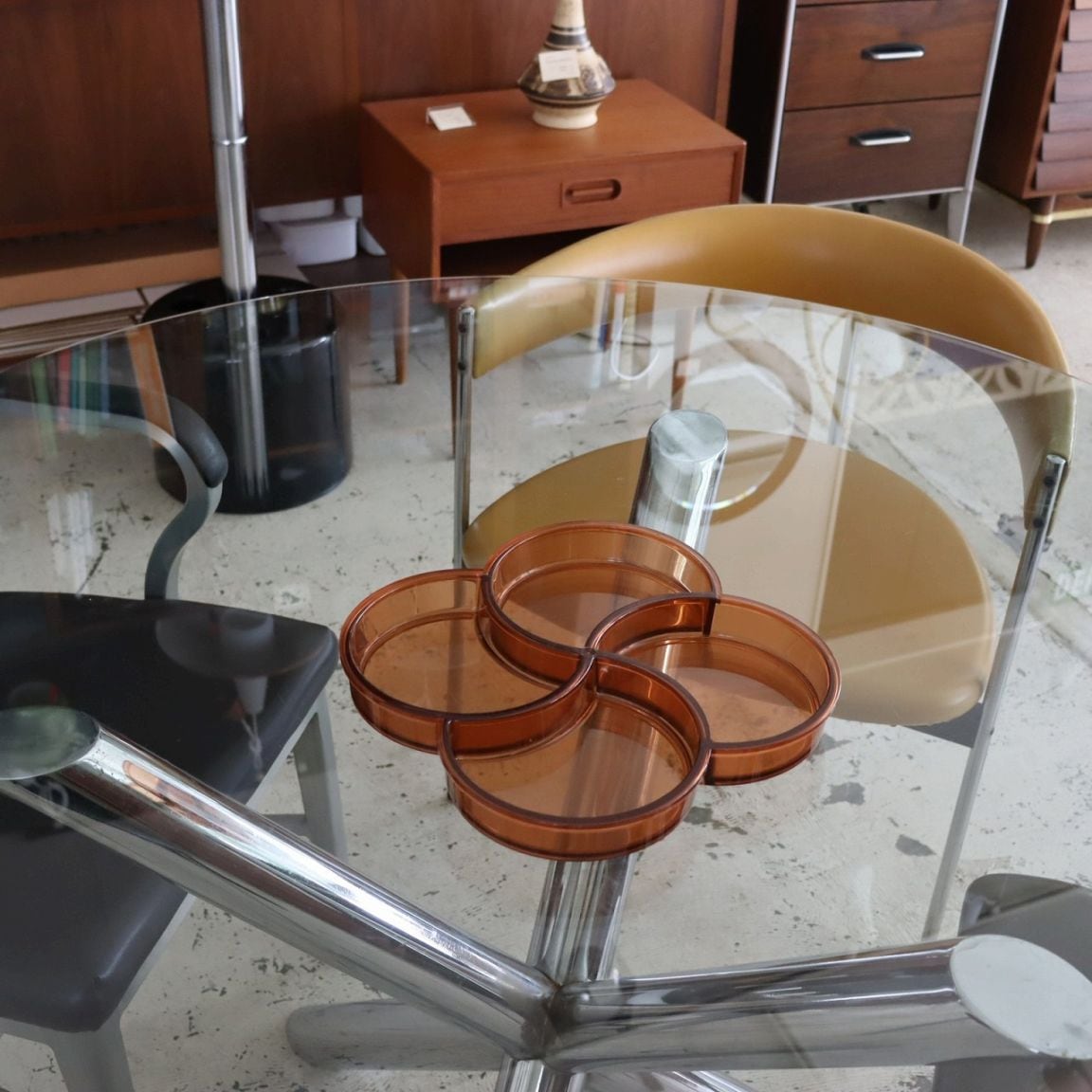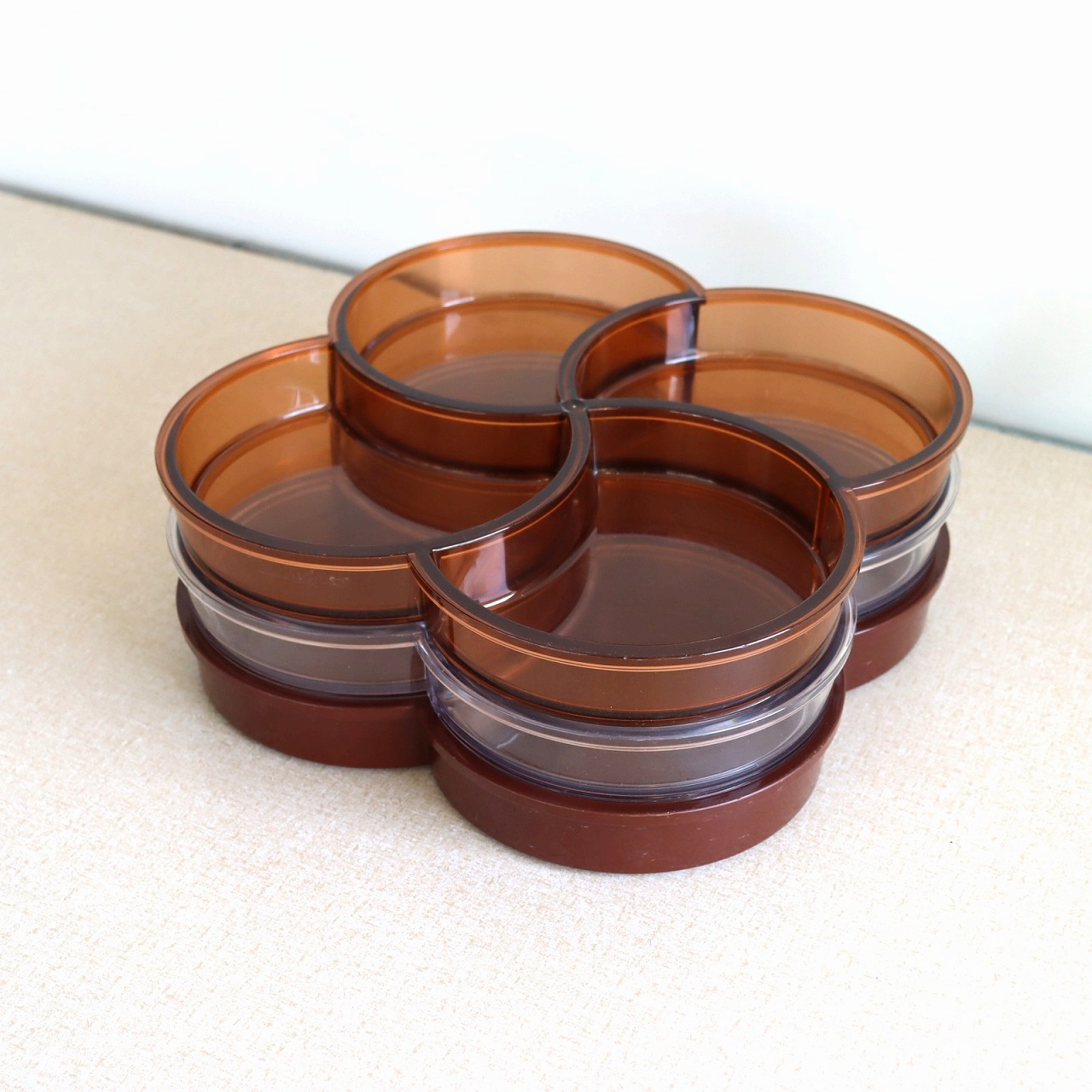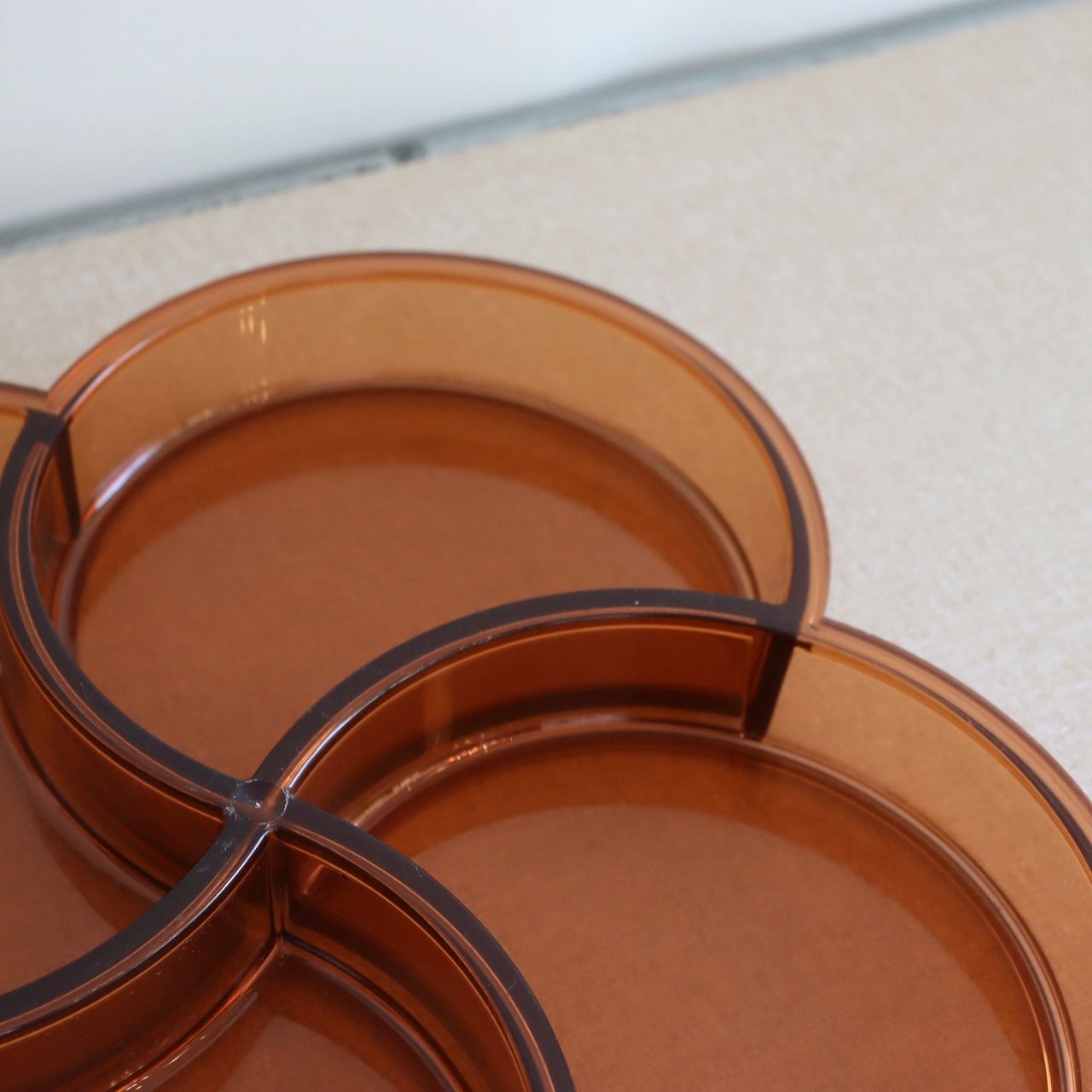 4つのポケットからなるプレスチックトレー。幾何学的でありながら、四葉のクローバーのような植物やお花もイメージされるデザインですね。