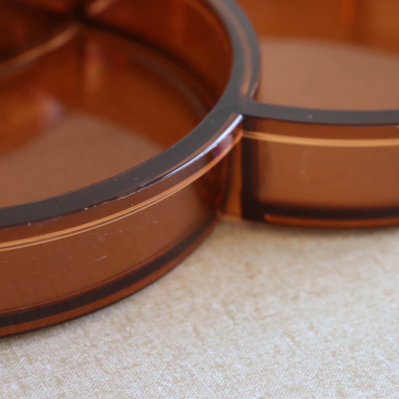 カラーはクリアブラウン。プラスチックならではの形状と表情でかわいらしいですね。