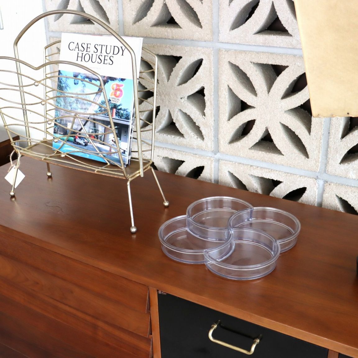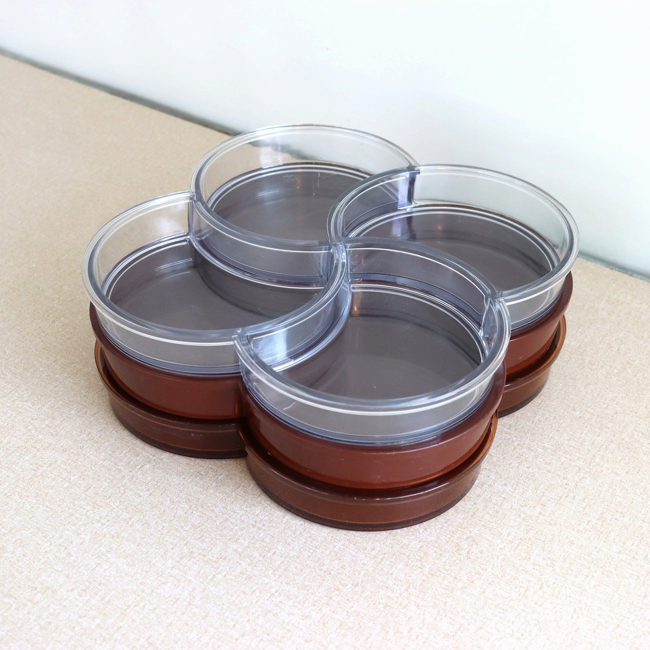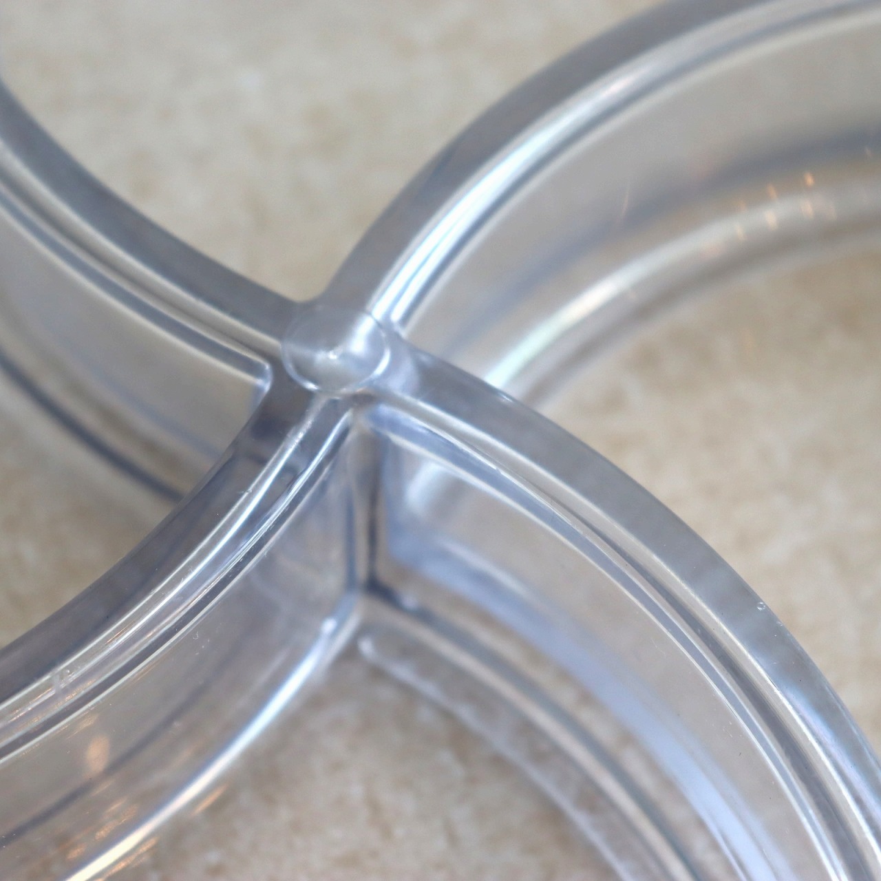 4つのポケットからなるプレスチックトレー。幾何学的の四葉のクローバーのような植物やお花もイメージされるデザインです。