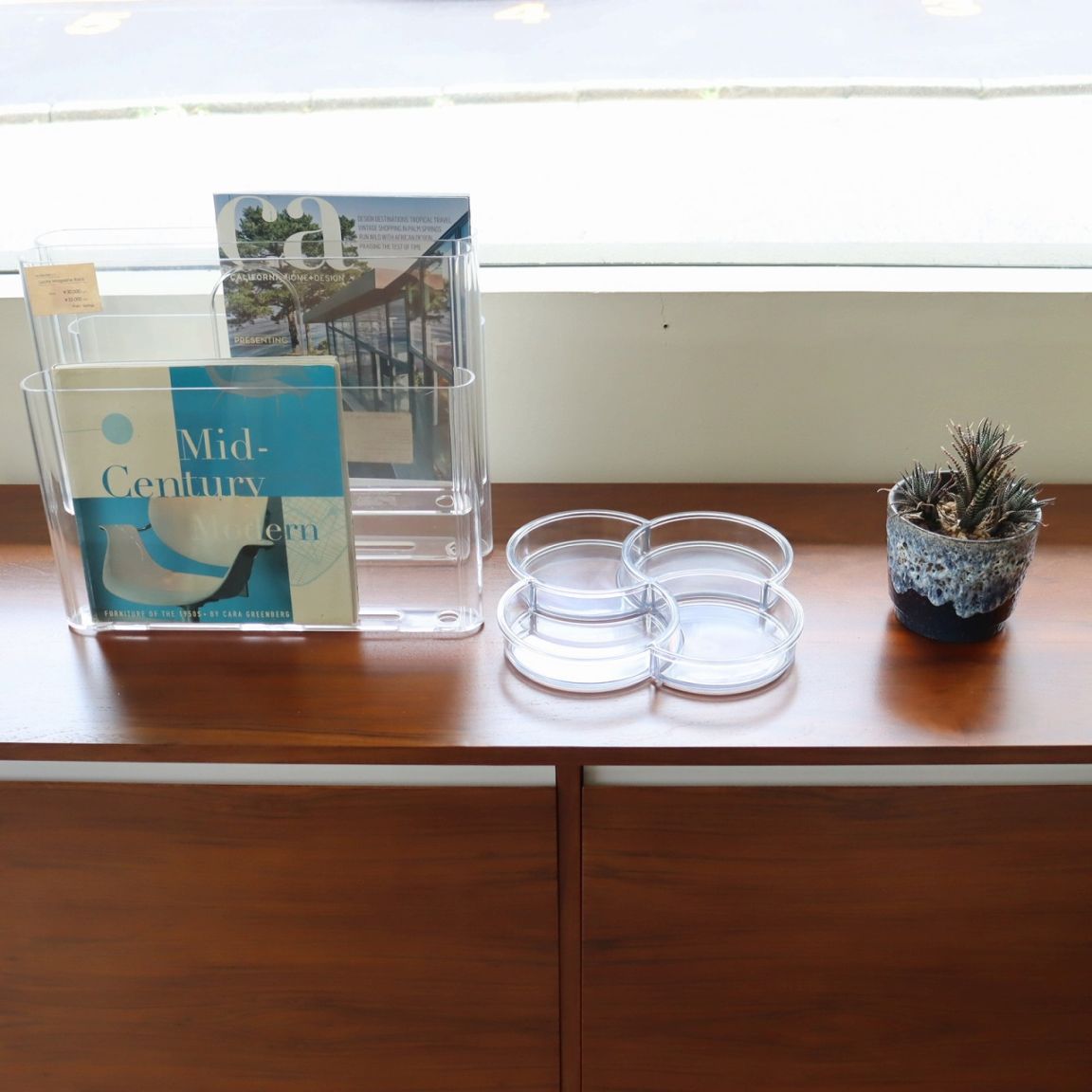 こちらはクリアのものになりますが、お店にブラウンとクリアのブラウンのカラーもございます。重ねられるようになっておりますので、是非合わせてご検討してみてください。