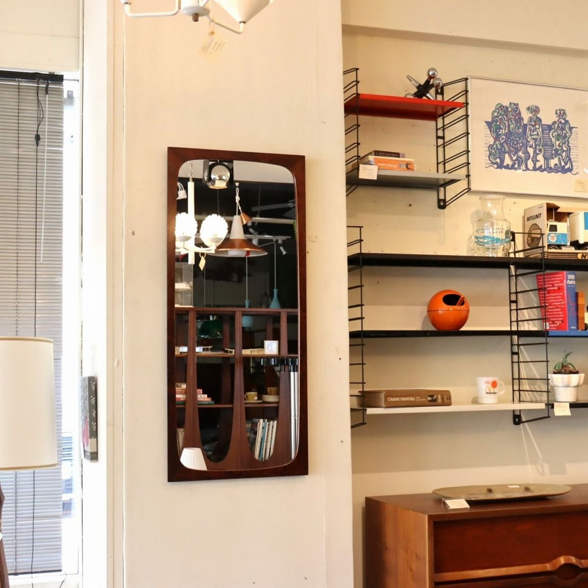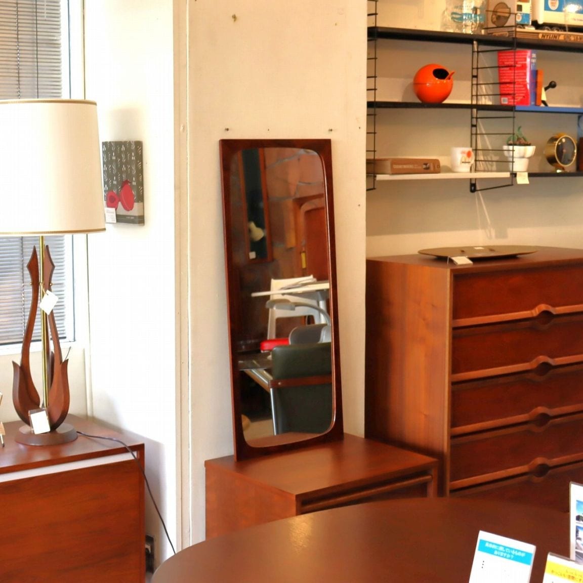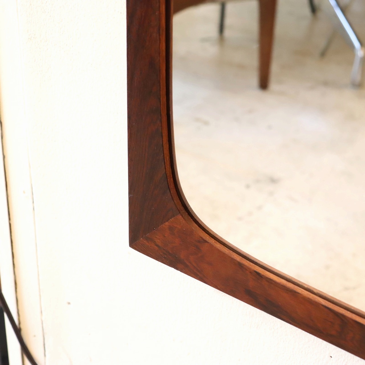 壁掛けのミラーはお部屋を映すインテリアとしても活躍します。ランプの映り込みも考えて設置すると光の増幅効果で夜の雰囲気が格段にアップ。新品にはない味わいや深みが、空間をぐっと柔らかく落ち着ける雰囲気にしてくれます。