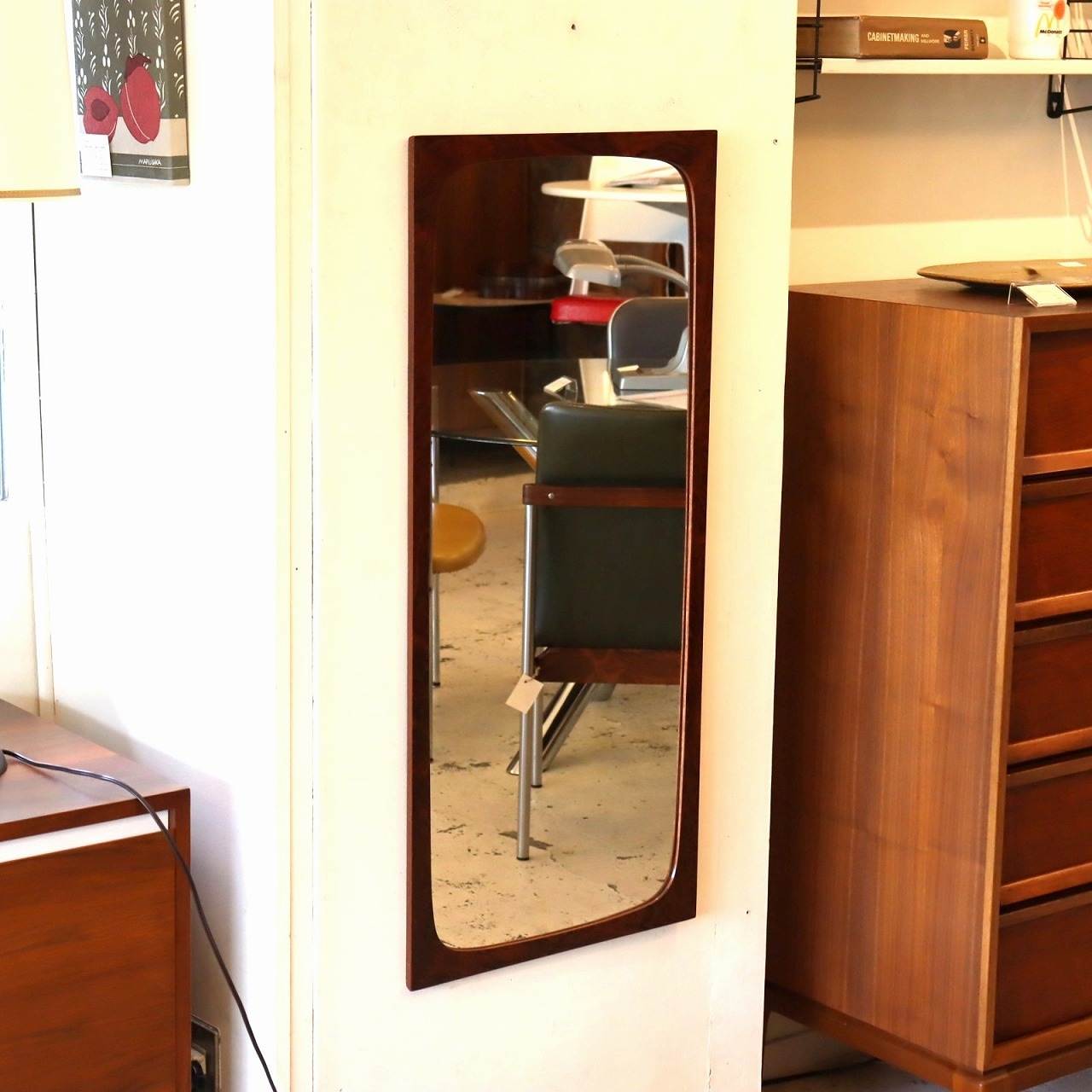 ウッドフレームミラー。長方形のシンプルな壁掛けの鏡です。