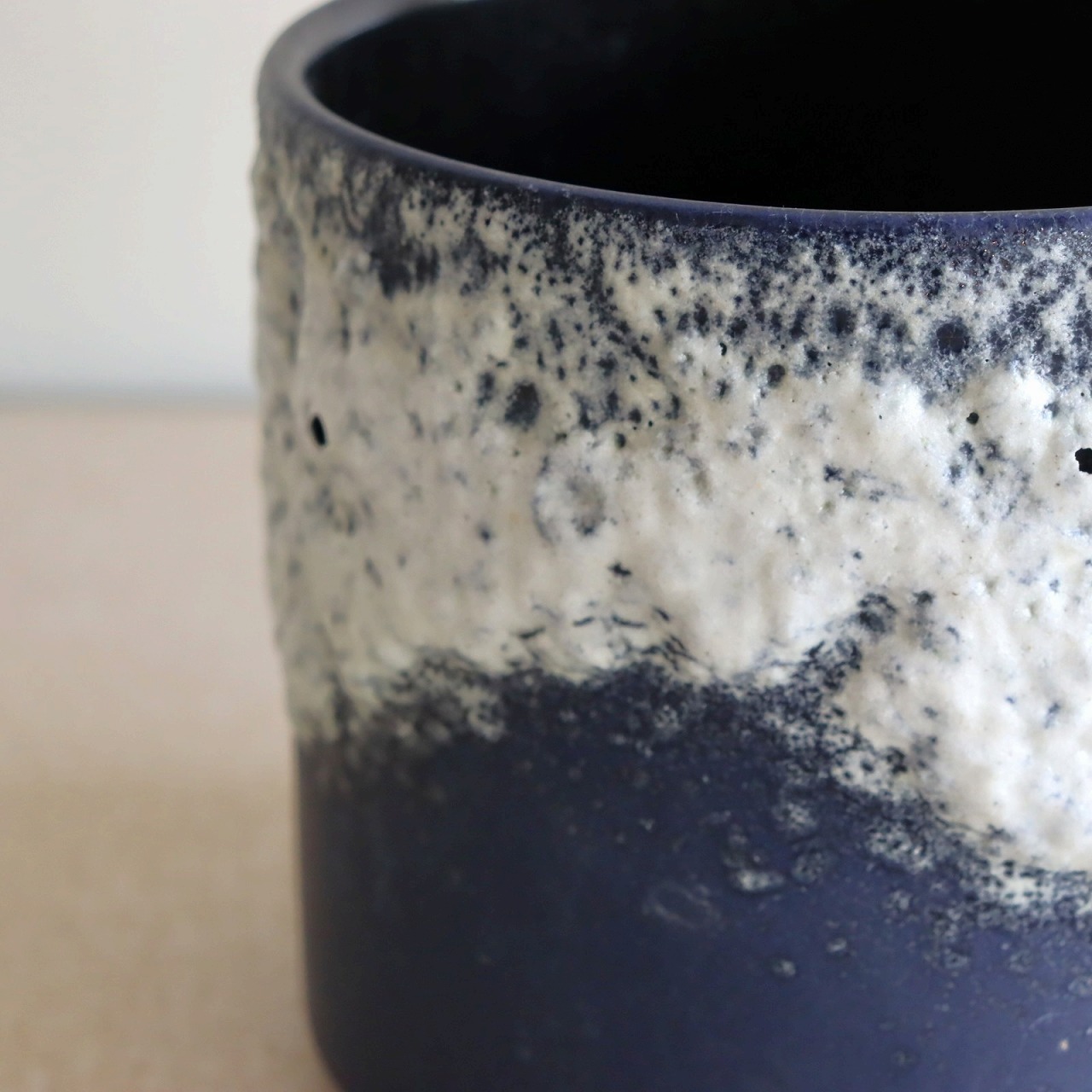 側面にはいくつか気泡が割れてできた穴があります。製造時に膨らんだ釉薬の躍動感を感じさせますね。