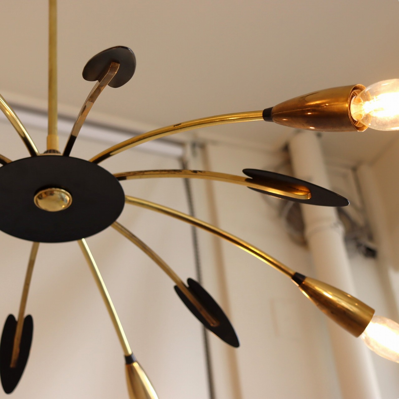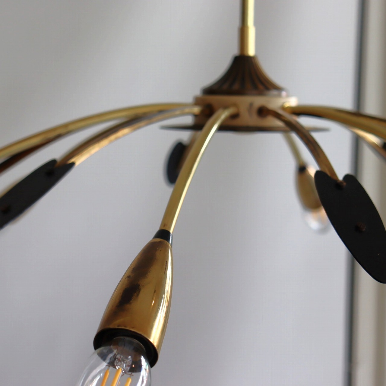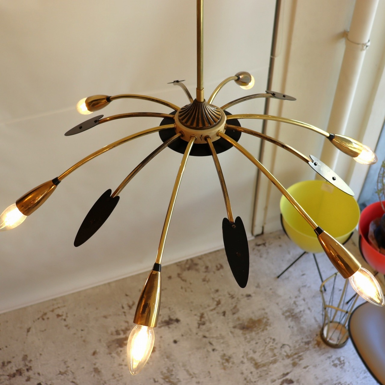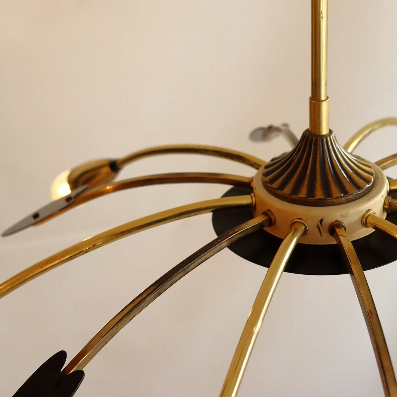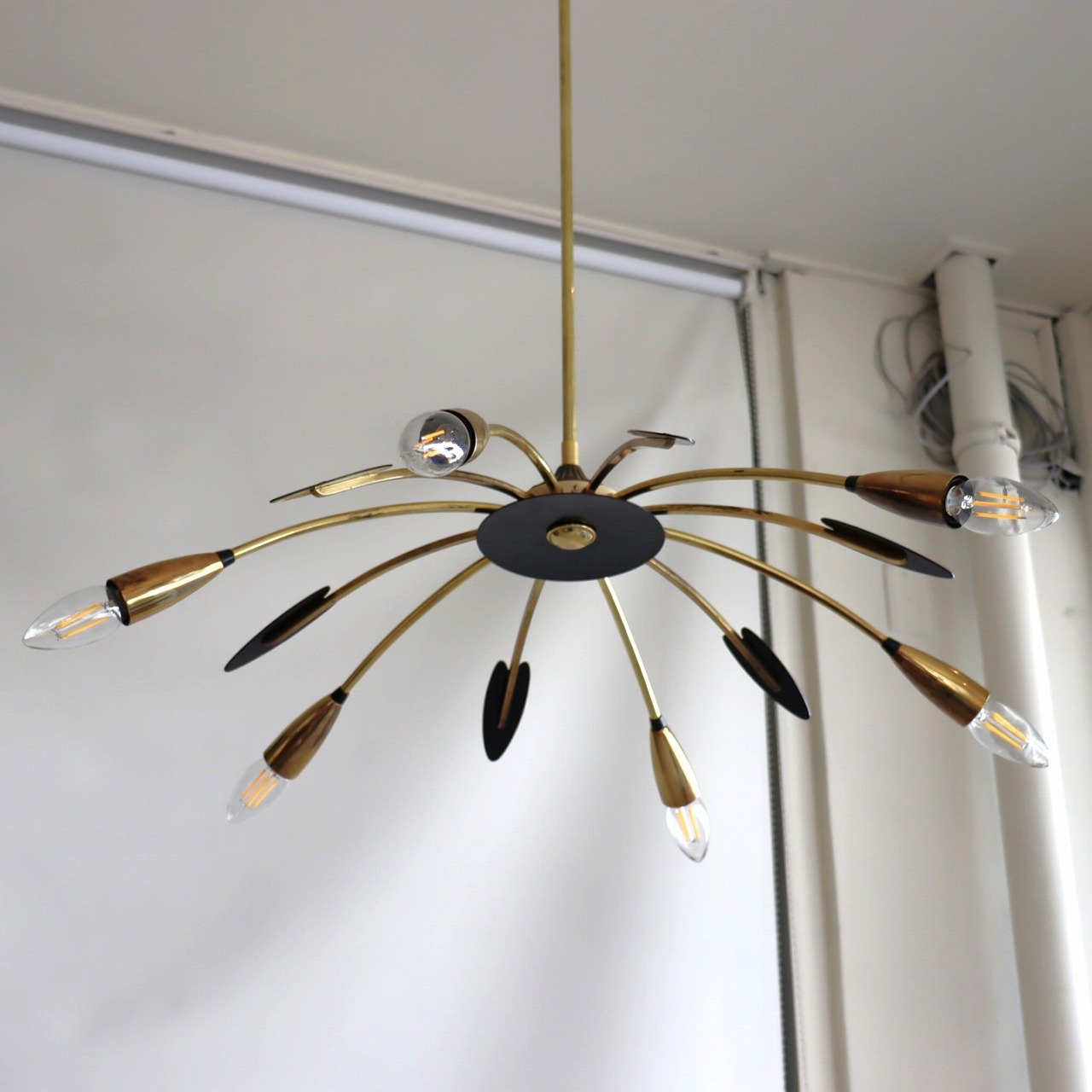6灯スパイダーランプ。クモの脚のようにアームが広がった姿からスパイダーランプと呼ばれるヨーロッパミッドセンチュリーの照明です。