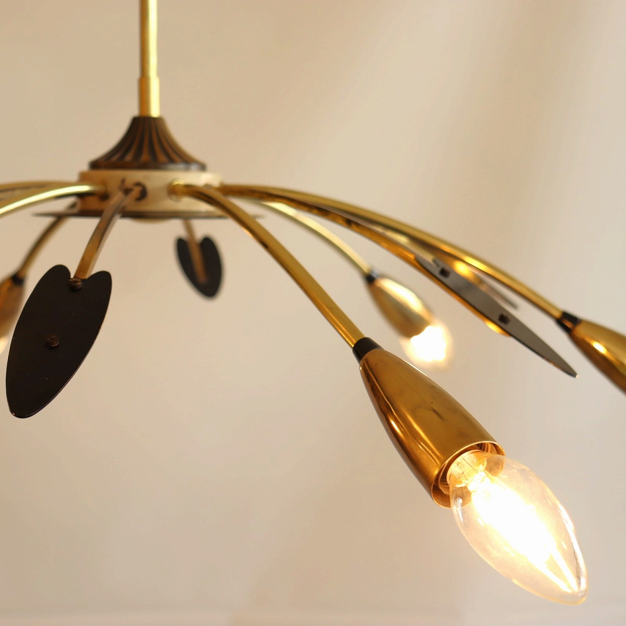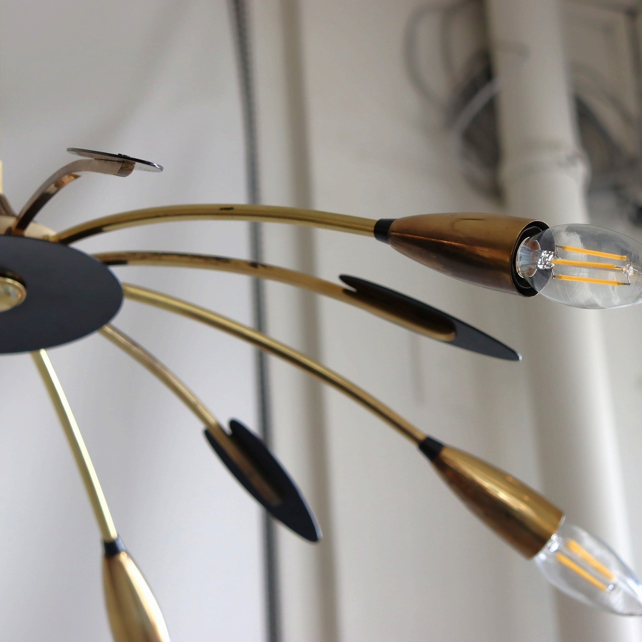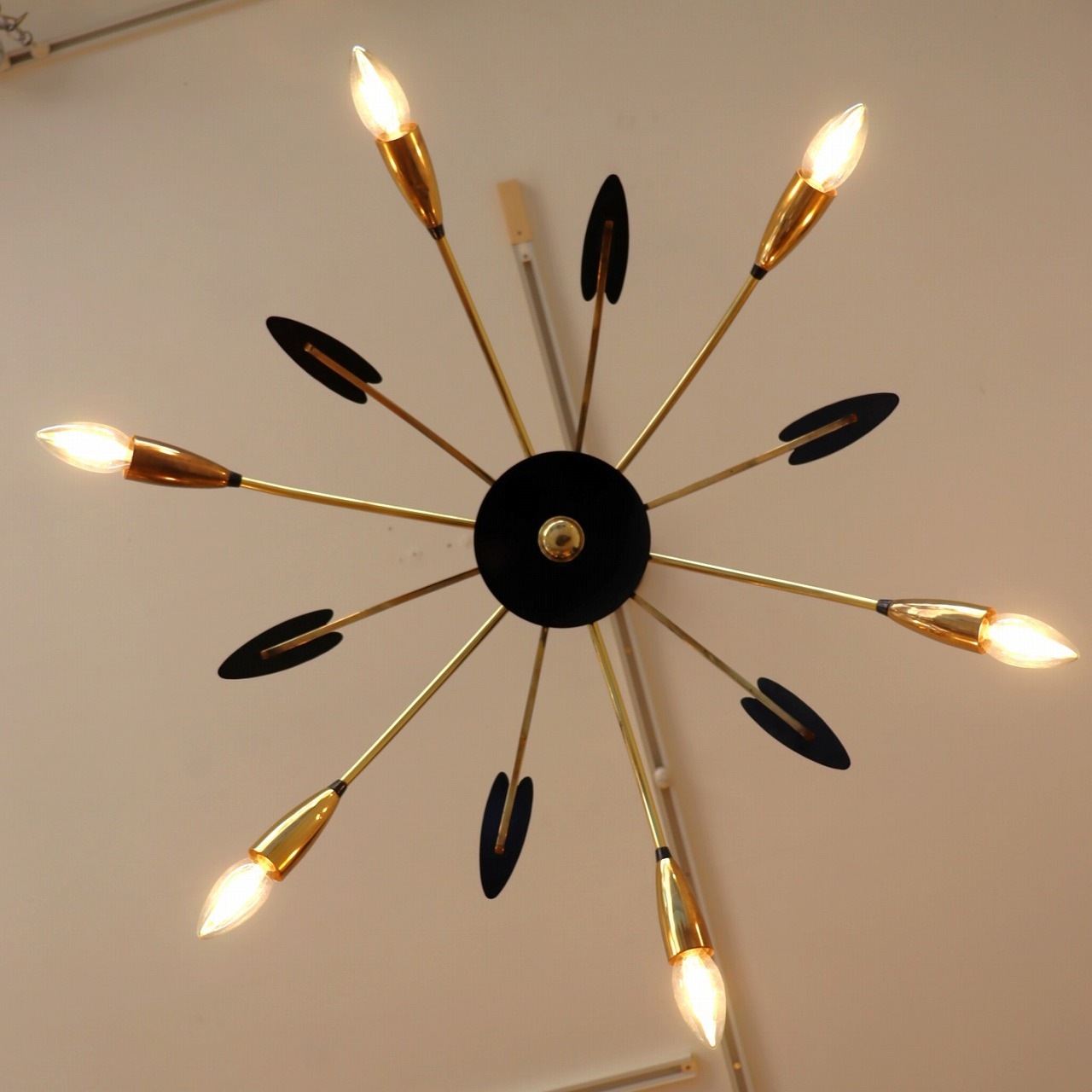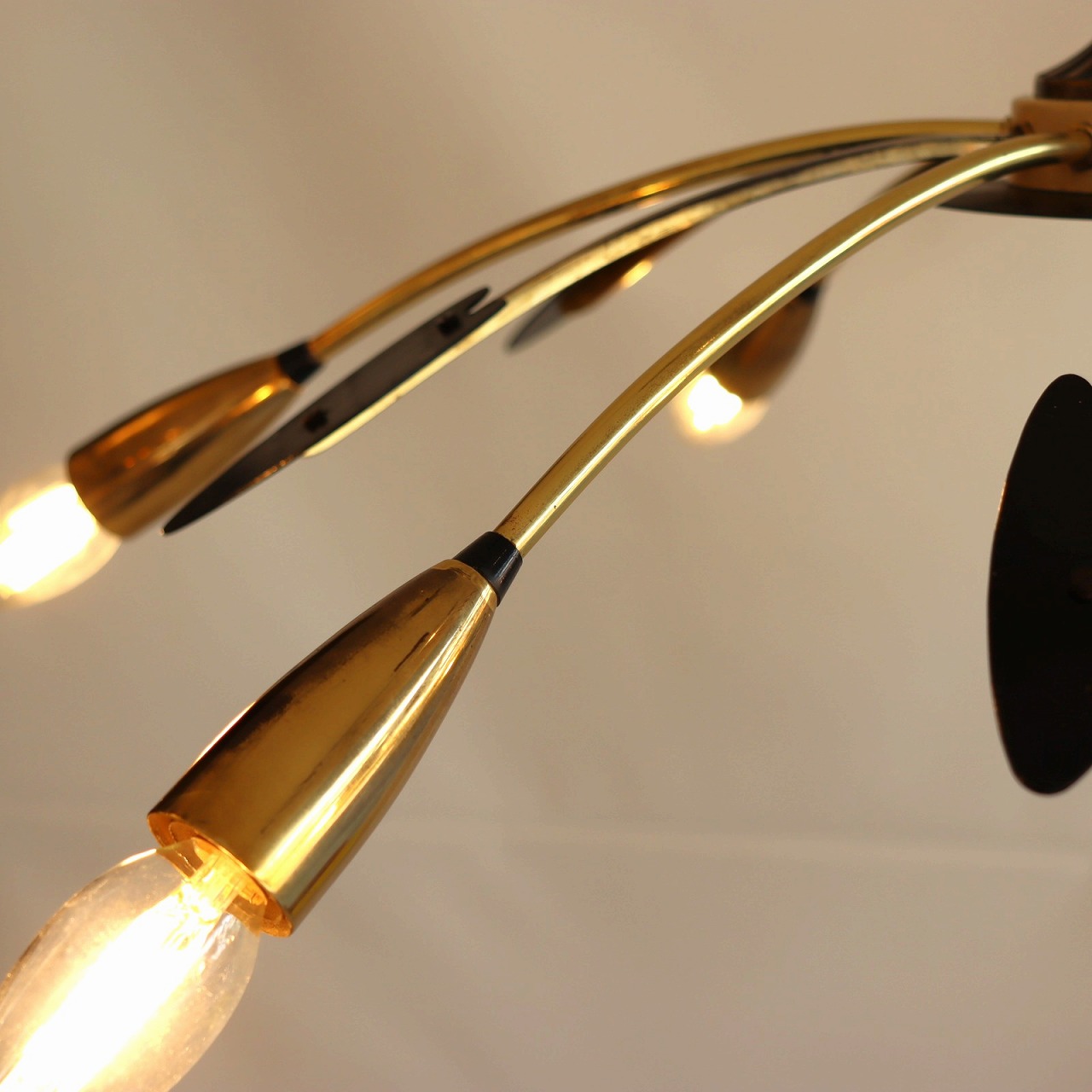 6灯スパイダーランプ。クモの脚のようにアームが広がった姿からスパイダーランプと呼ばれるヨーロッパミッドセンチュリーの照明です。