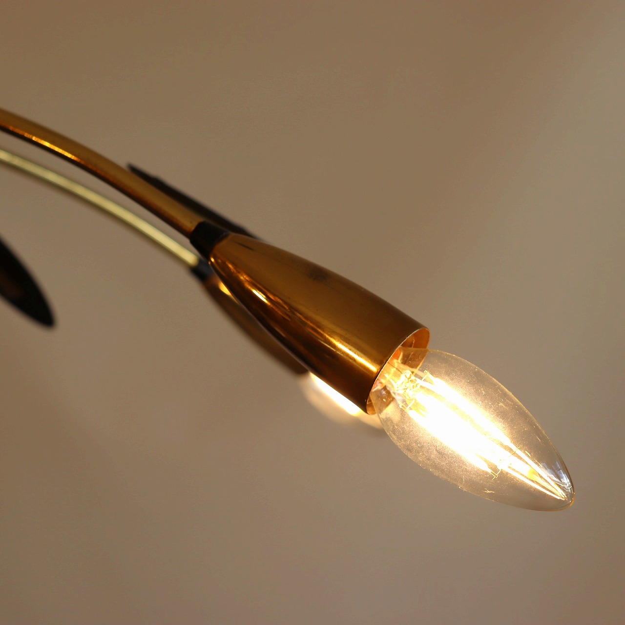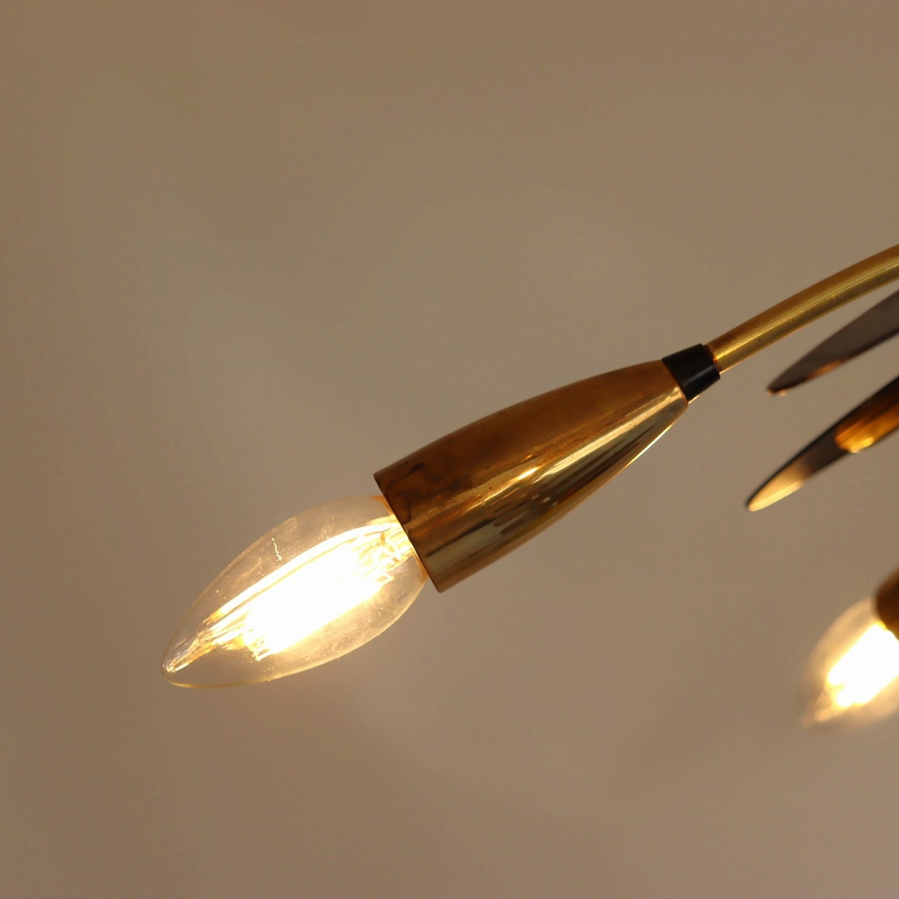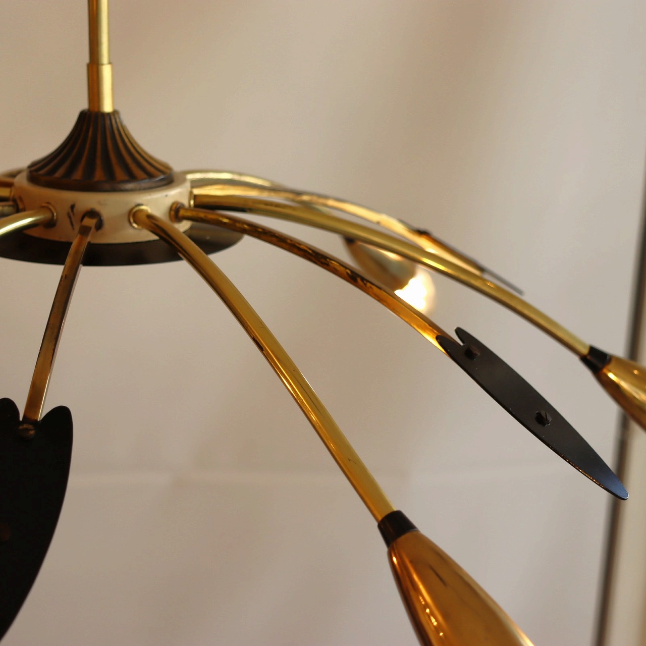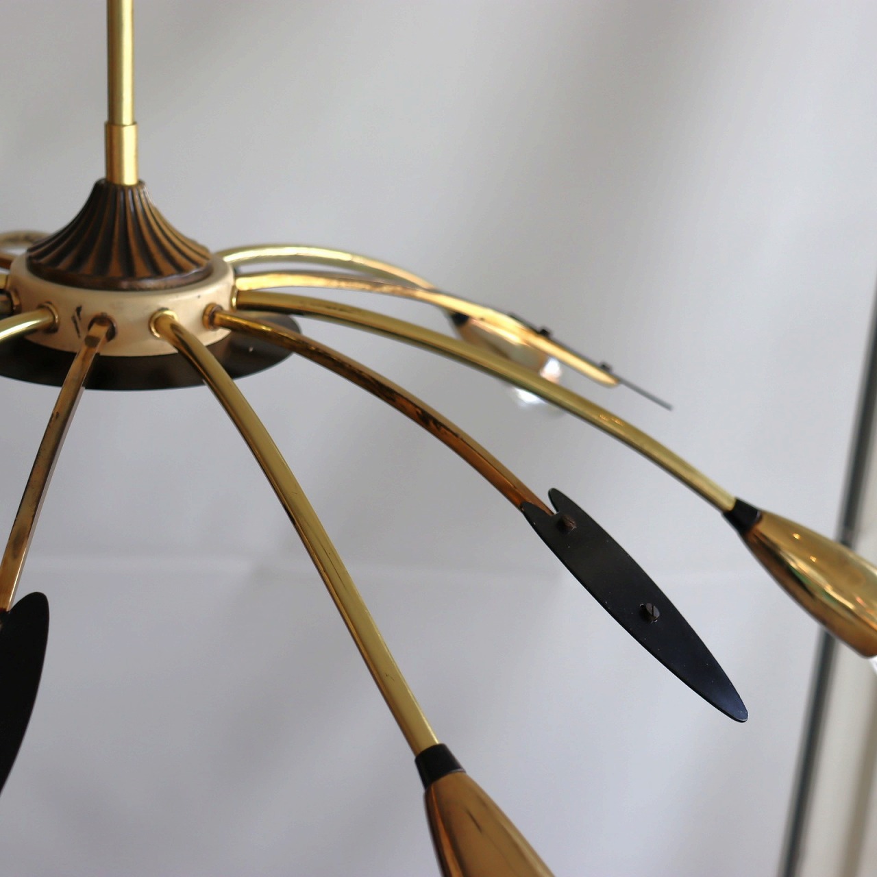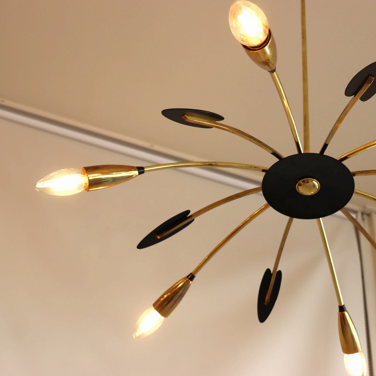 6灯スパイダーランプ。クモの脚のようにアームが広がった姿からスパイダーランプと呼ばれるヨーロッパミッドセンチュリーの照明です。