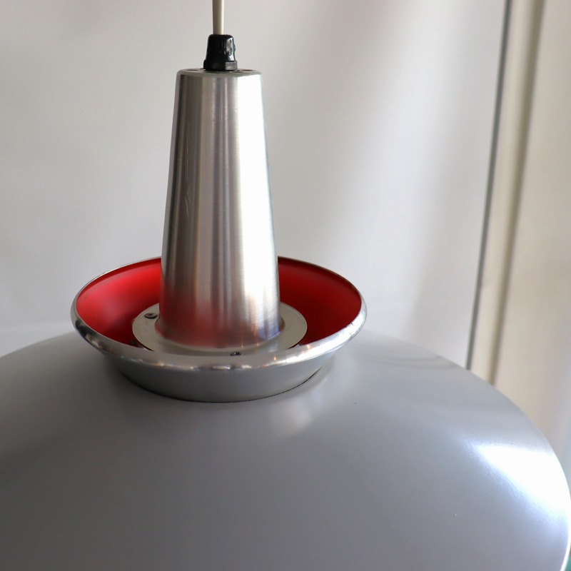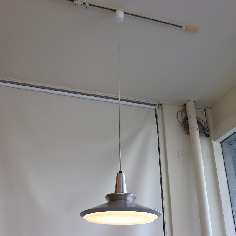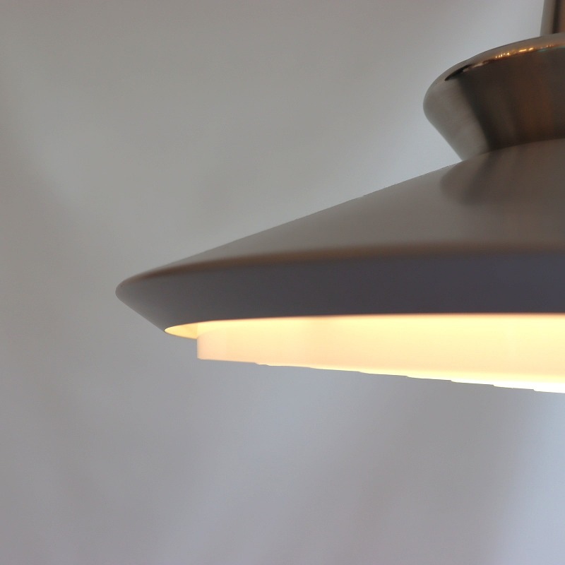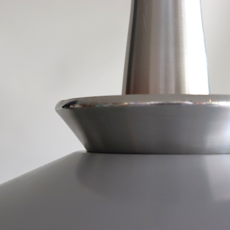 裾へ広がるシルエットが美しく、北欧デザインらしいシンプルかつ美しい凛とした佇まい。シェード下部はライト紫がかったライトグレー、上部はシルバーです。