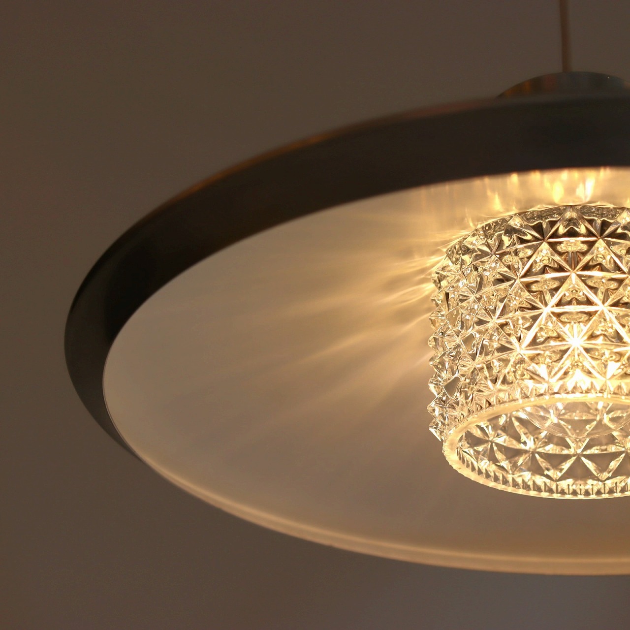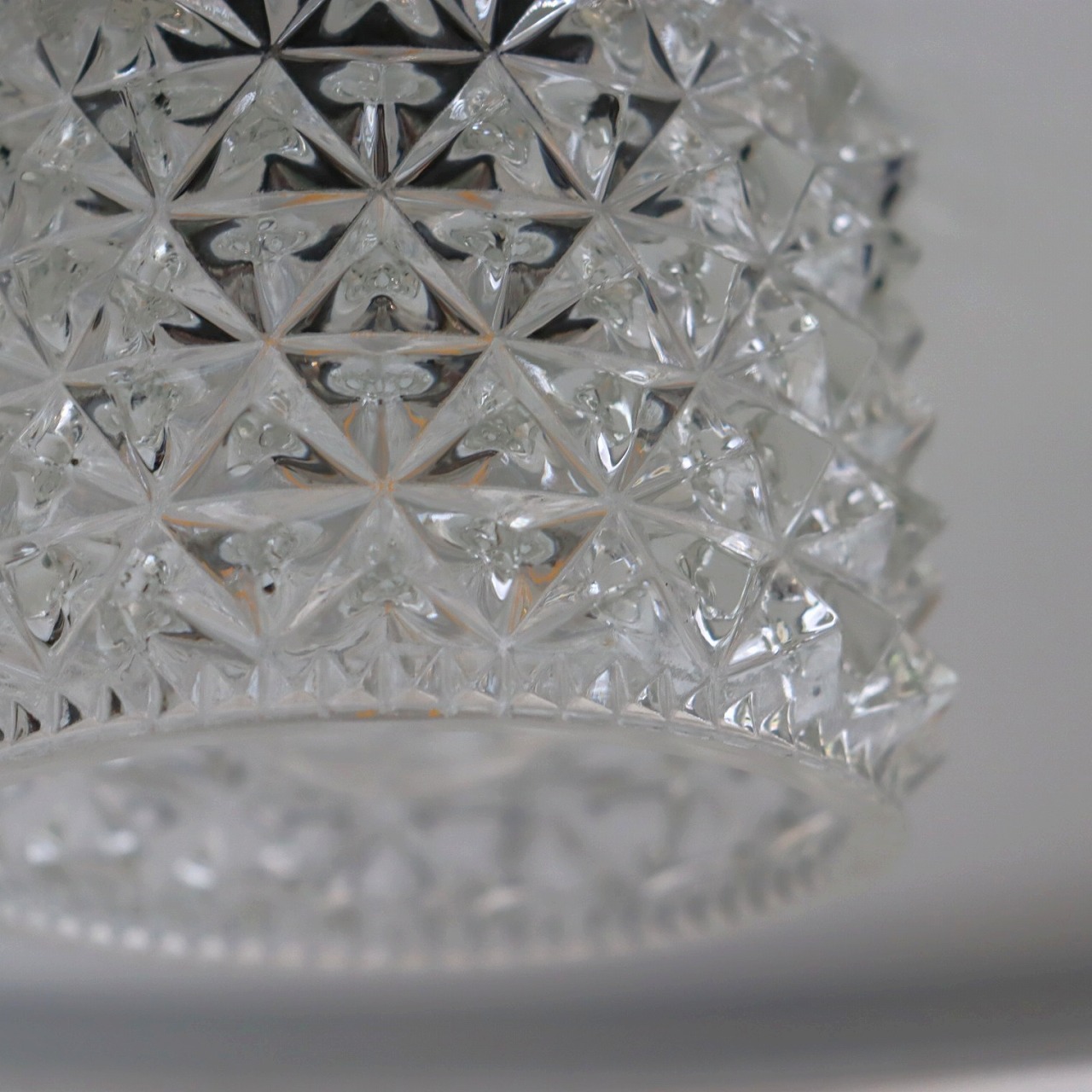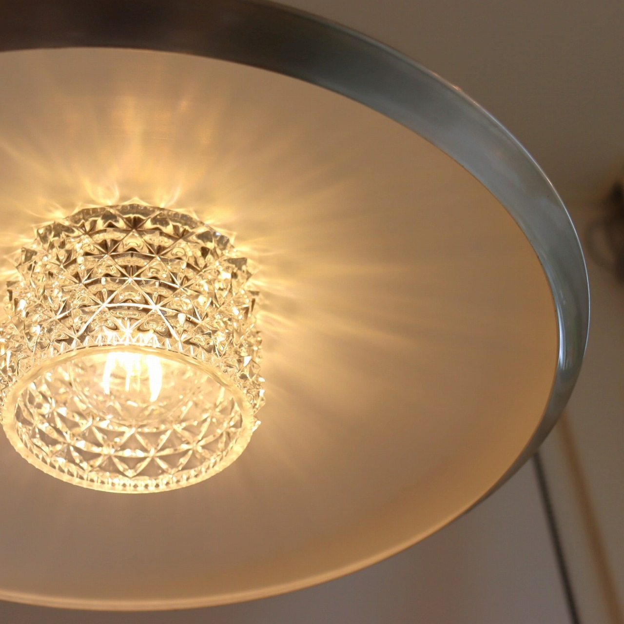 ガラスは宝石のようなカットが特徴的で細かな陰影が見て取れます。シェード内側に投影された美しい模様がとても素敵です。