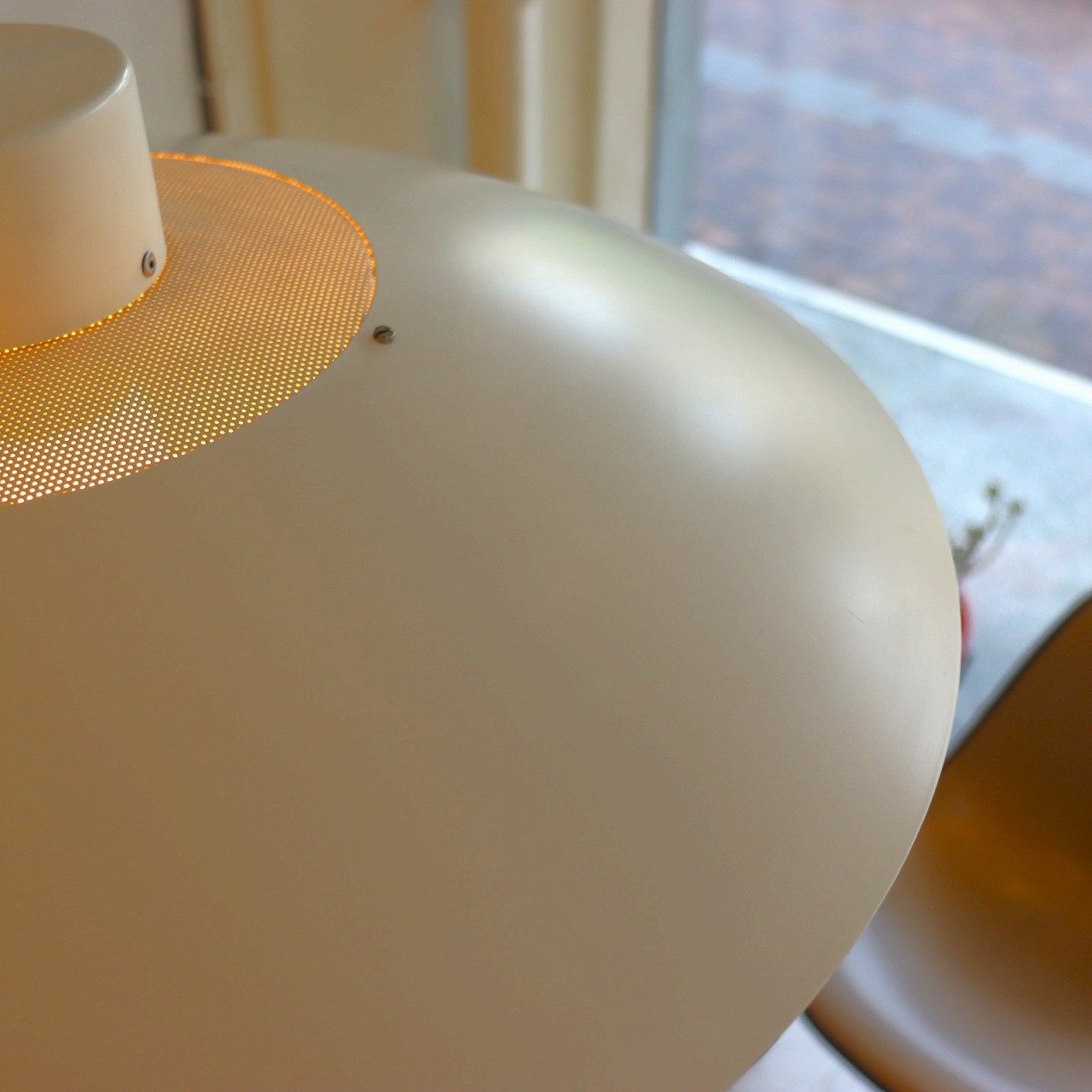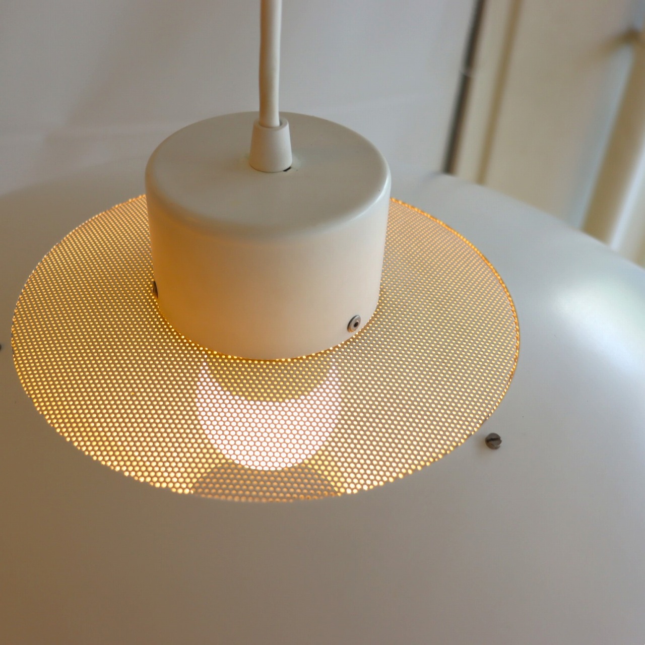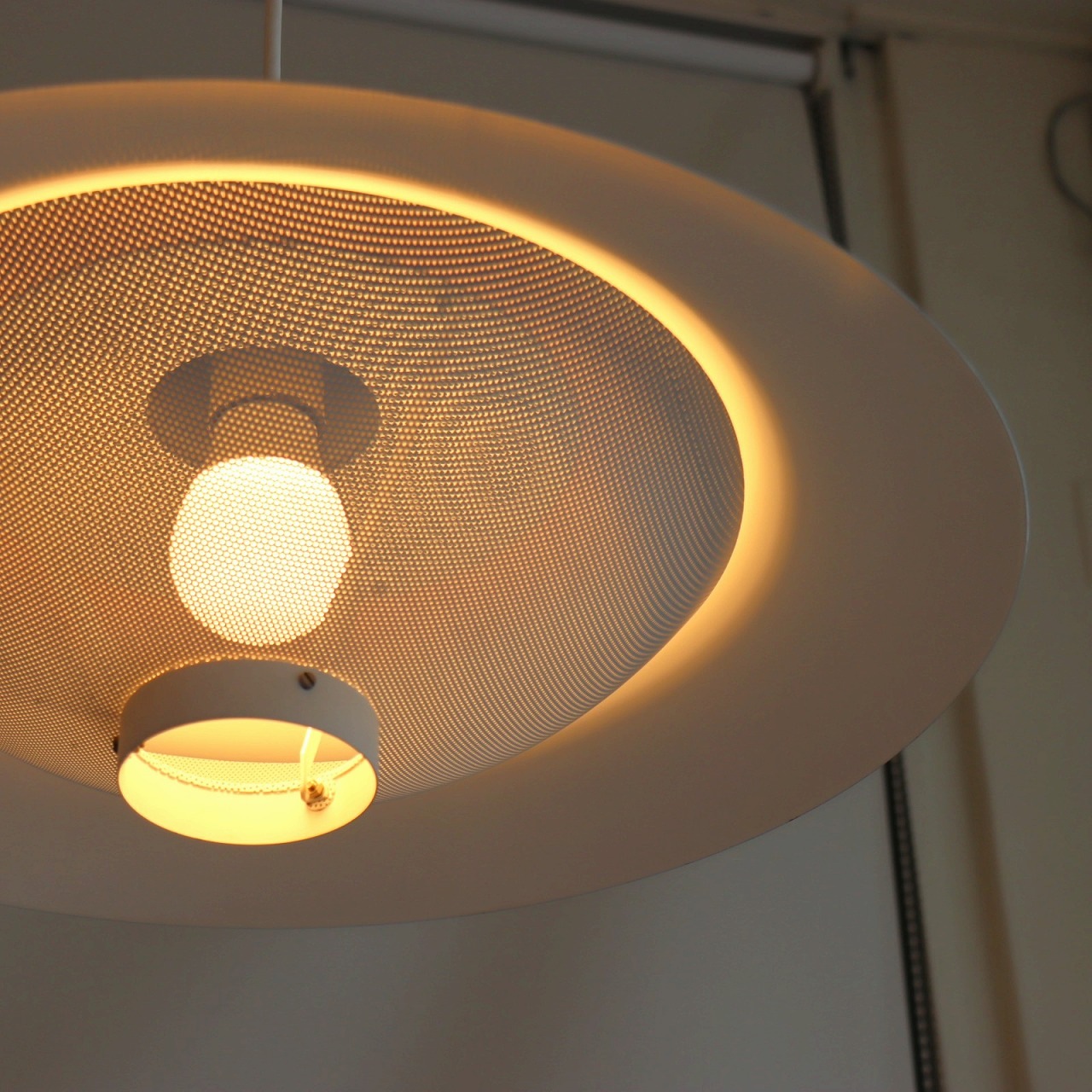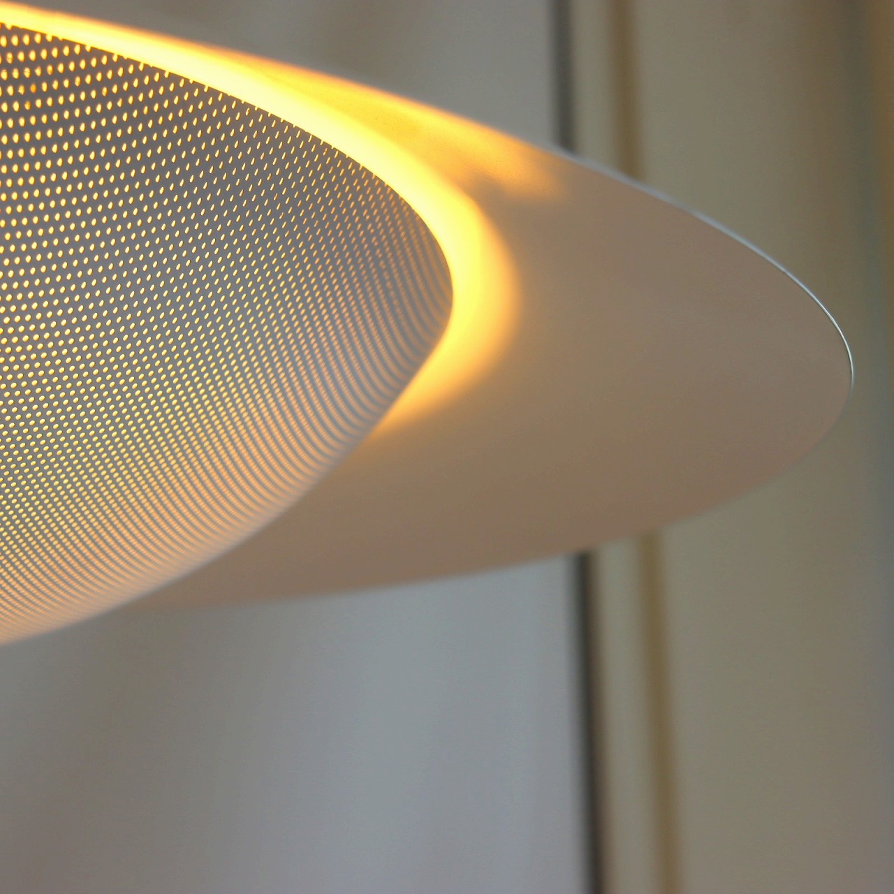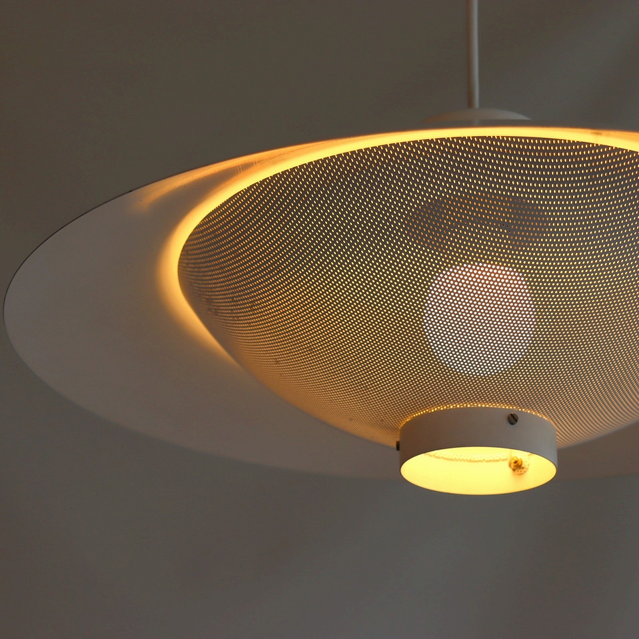 上部にもパンチングが施されているので、電球の光が天井側にも届き、柔らかい漏れる灯りが広がるのも良いポイントです。