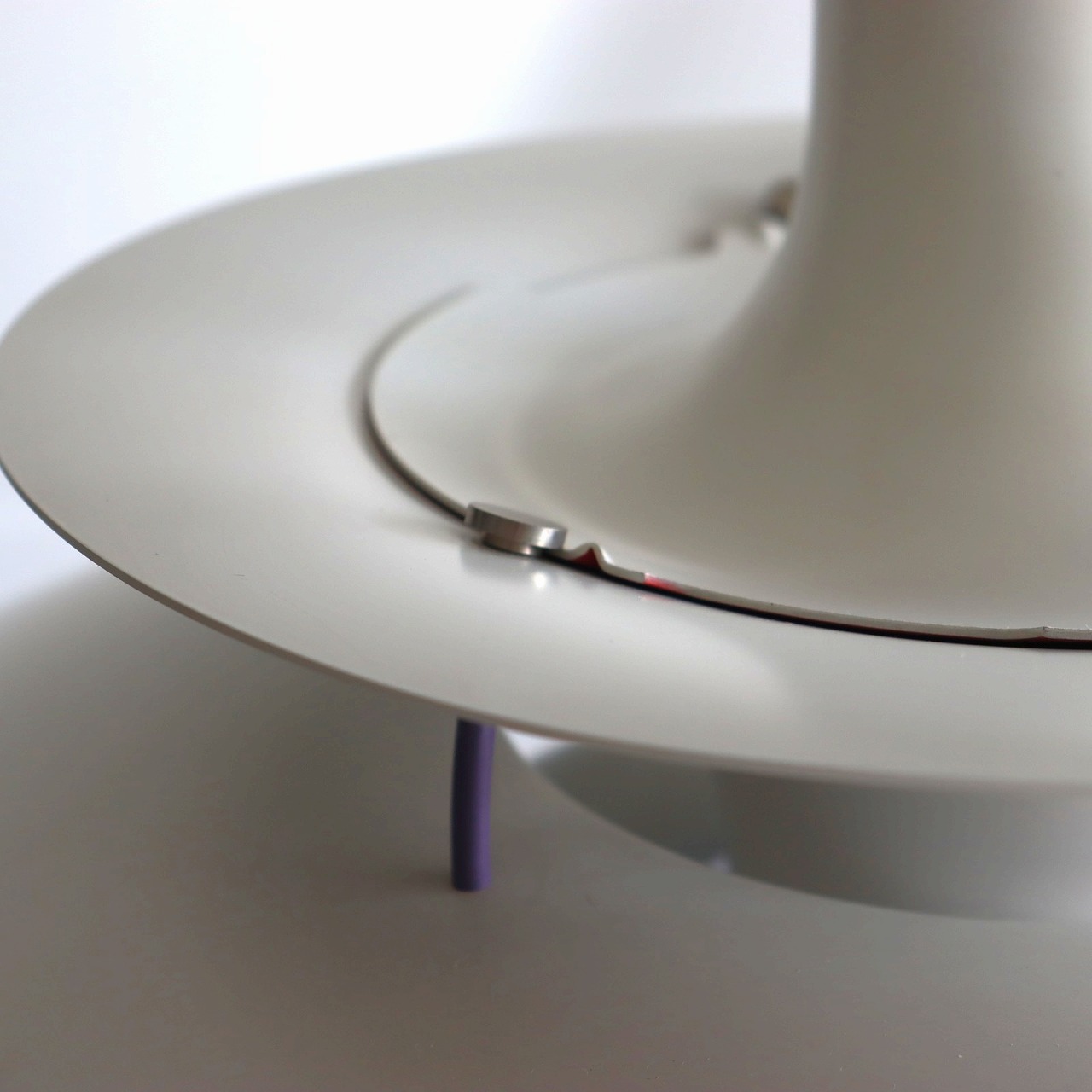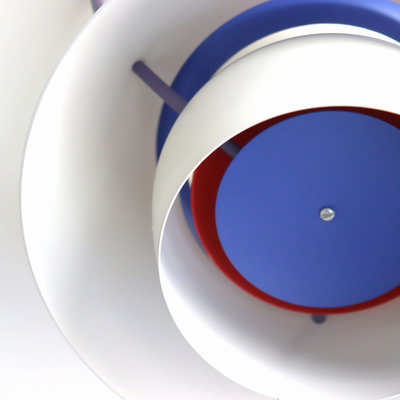 シェードはオフホワイト、ランプ中央部はブルーとレッドです。カラーがアクセントとしてとてもよく利いていますね。点灯時はもちろん消灯時でも美しく、オブジェのような洗練された佇まいです。