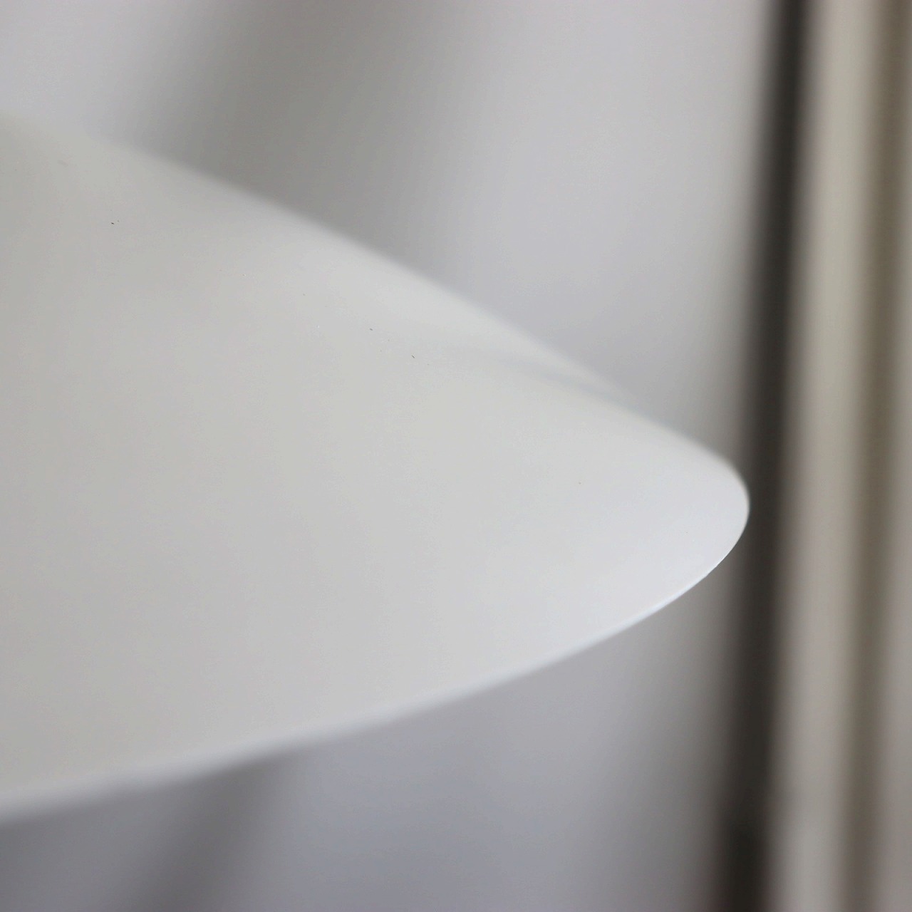 隙間から洩れる光がグラデーションとなってシェードを柔らかく照らします。薄いシェードがルーバーの重なりやフォルムを際立たせて、とても綺麗なランプですね。