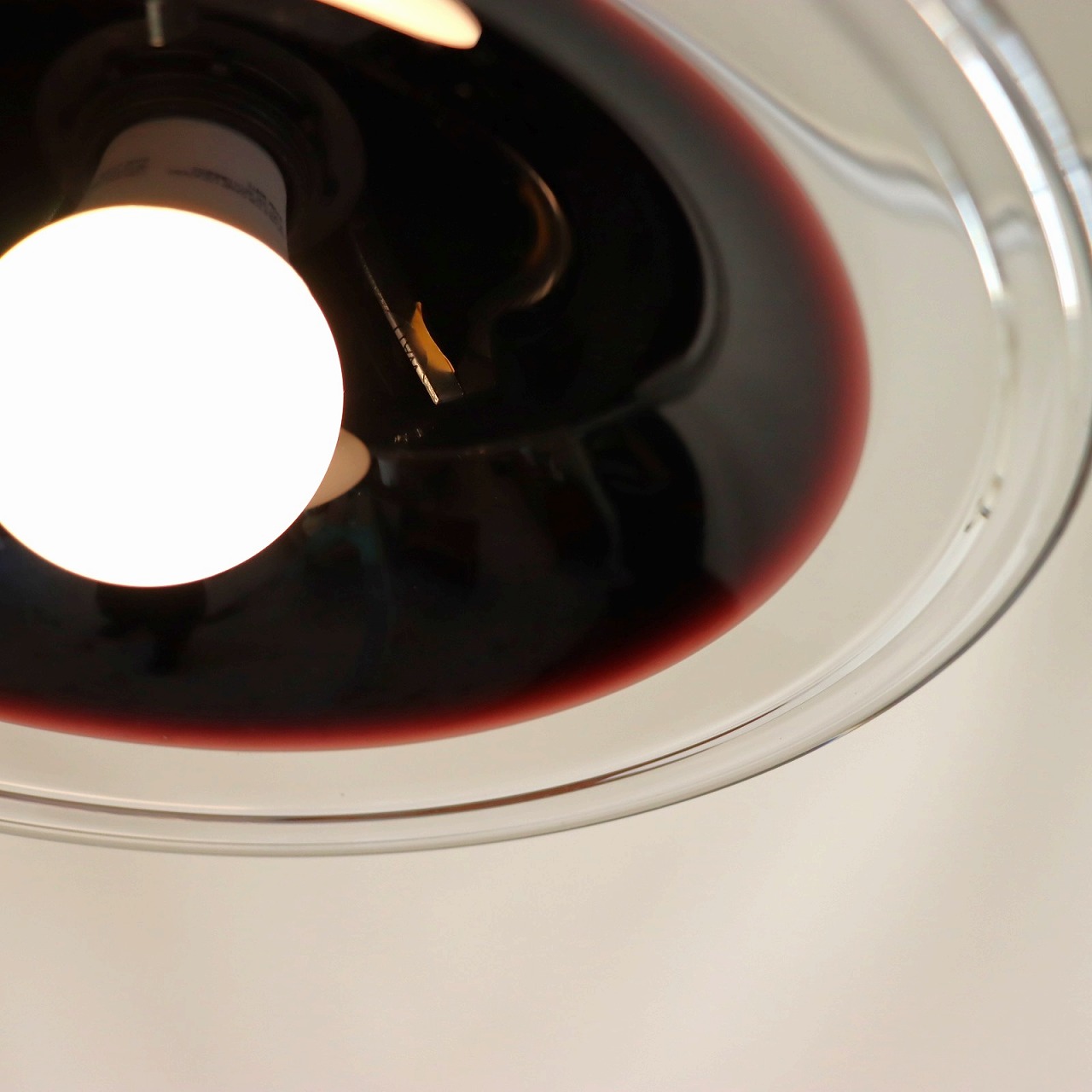 黒に近い色で明かりをつけると電球部分がほんのり赤紫色に変わります。
