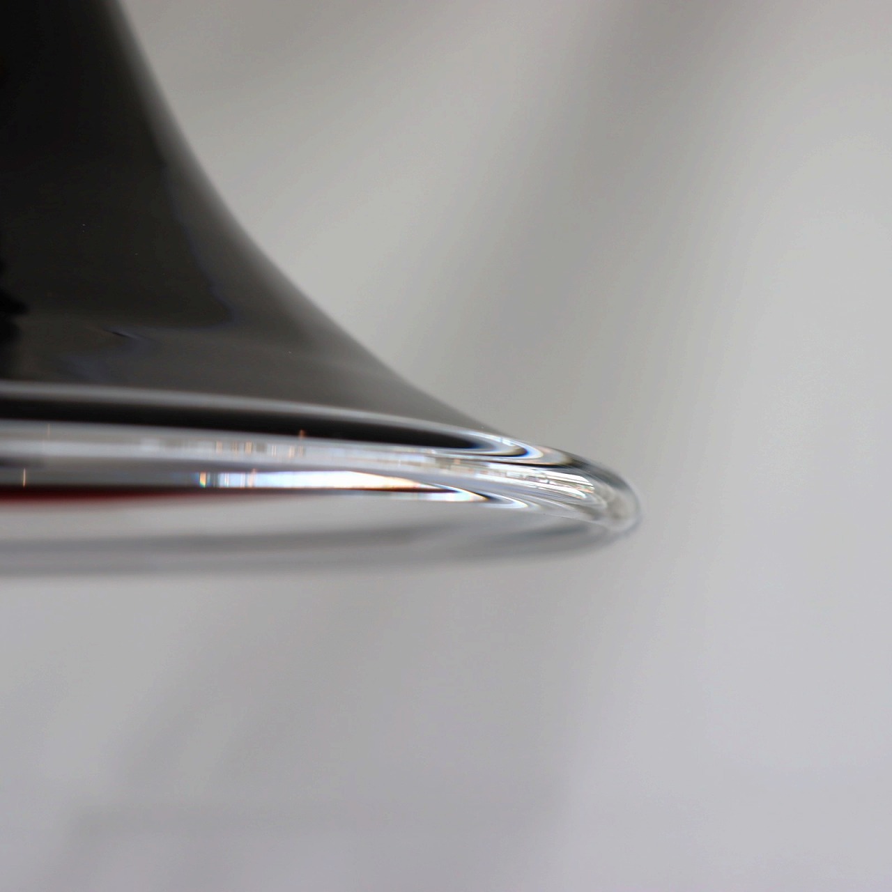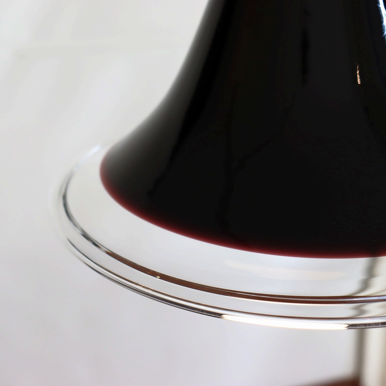 こちらは一見ブラックに見える色味ですが、近くで見るとパープルであることが分かります。フレアの裾部分はクリアです。当時のカタログには、"aubergine=茄子"という表記があるようで、ナスの色という表現がぴったりです。