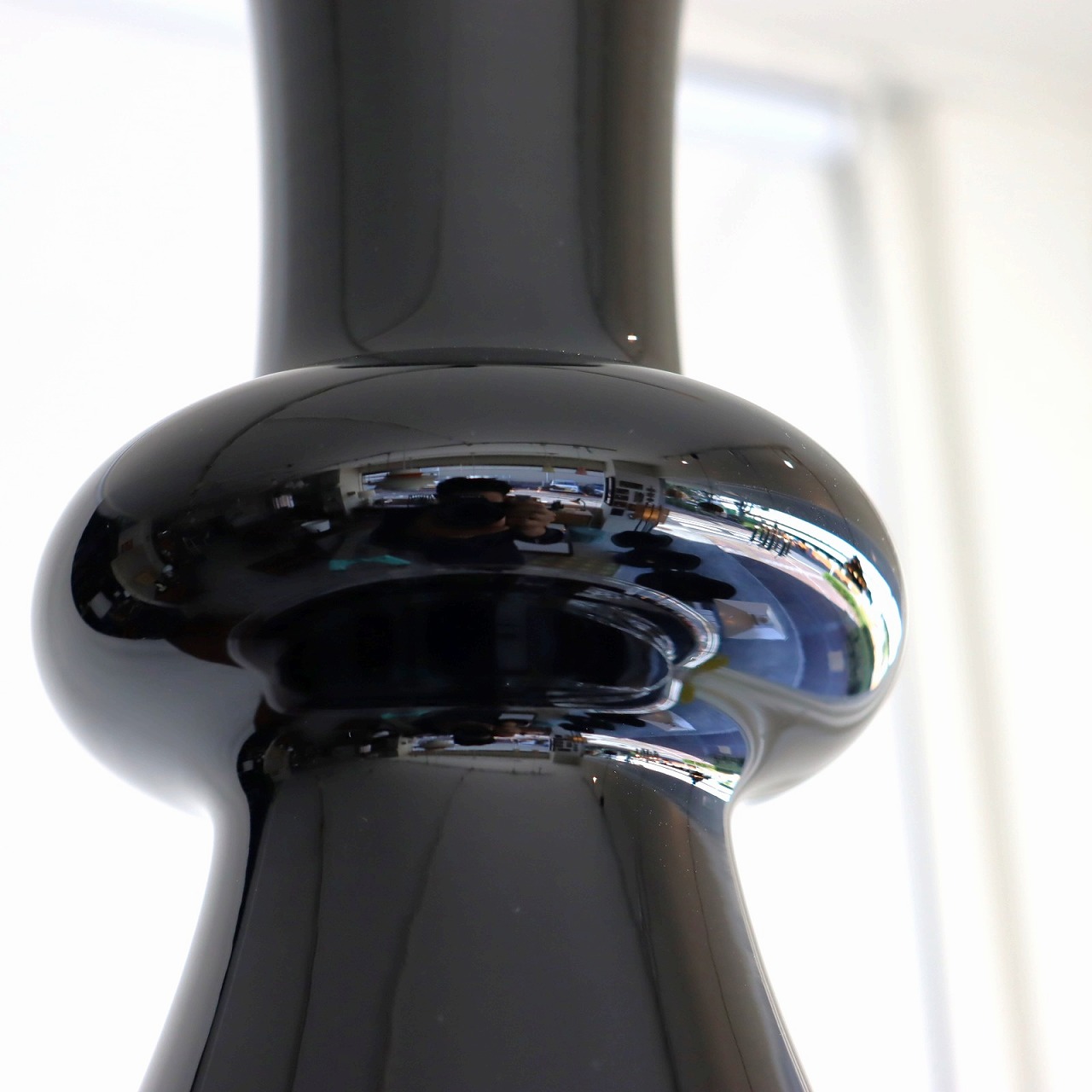 中央が膨らみ、下部がトランペットやドレスのようにひろがったシルエット。オブジェのような上品で非常に美しいフォルム。分厚いガラスと曲線のシルエットでぽってりとした印象も受けます。