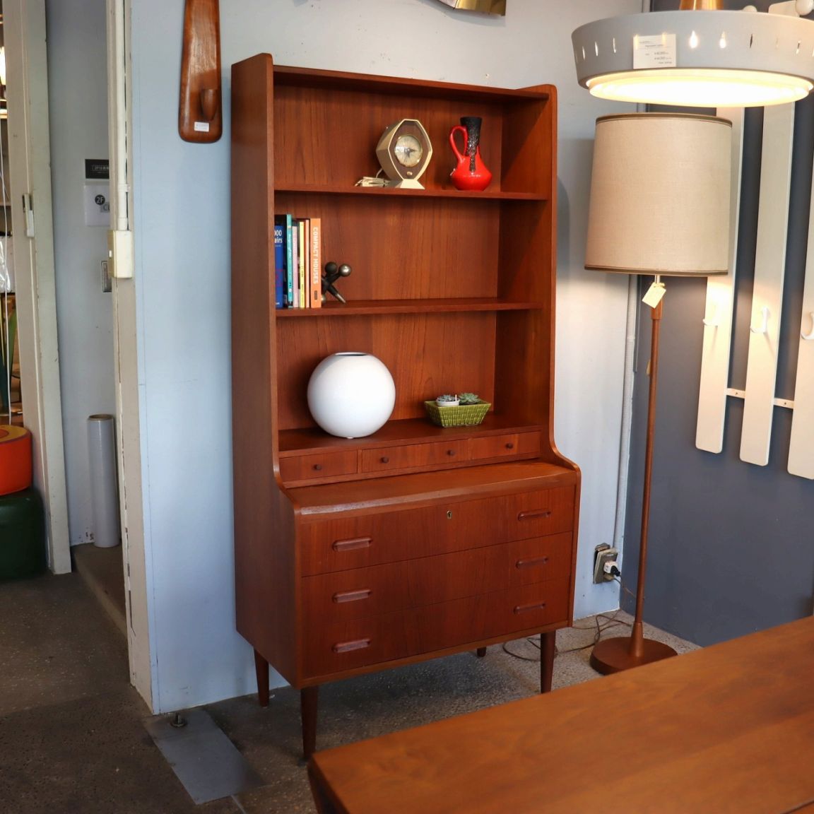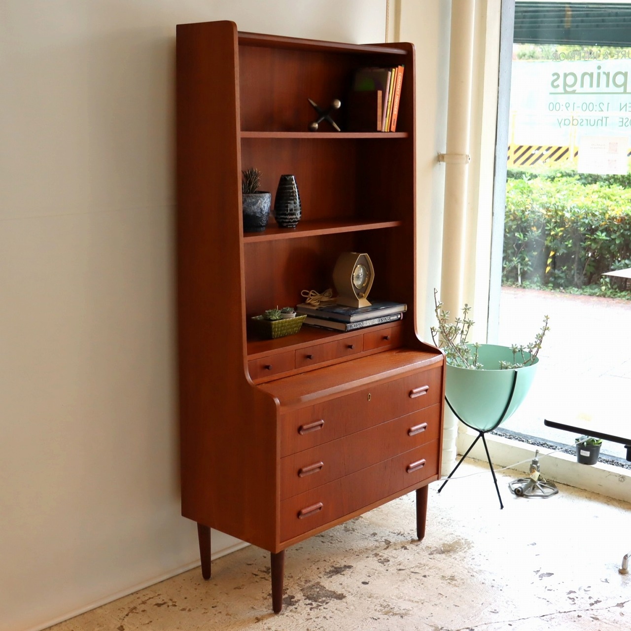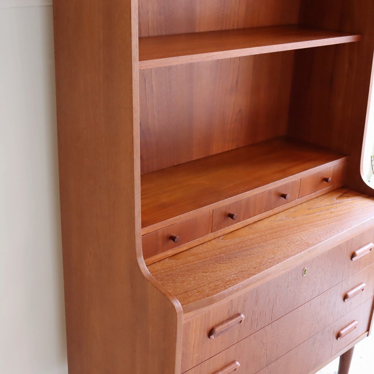 ブックシェルフ。1960年~1970年ごろのデンマークビンテージ家具らしい洗練された雰囲気のブックシェルフ/ライティングビューローです。