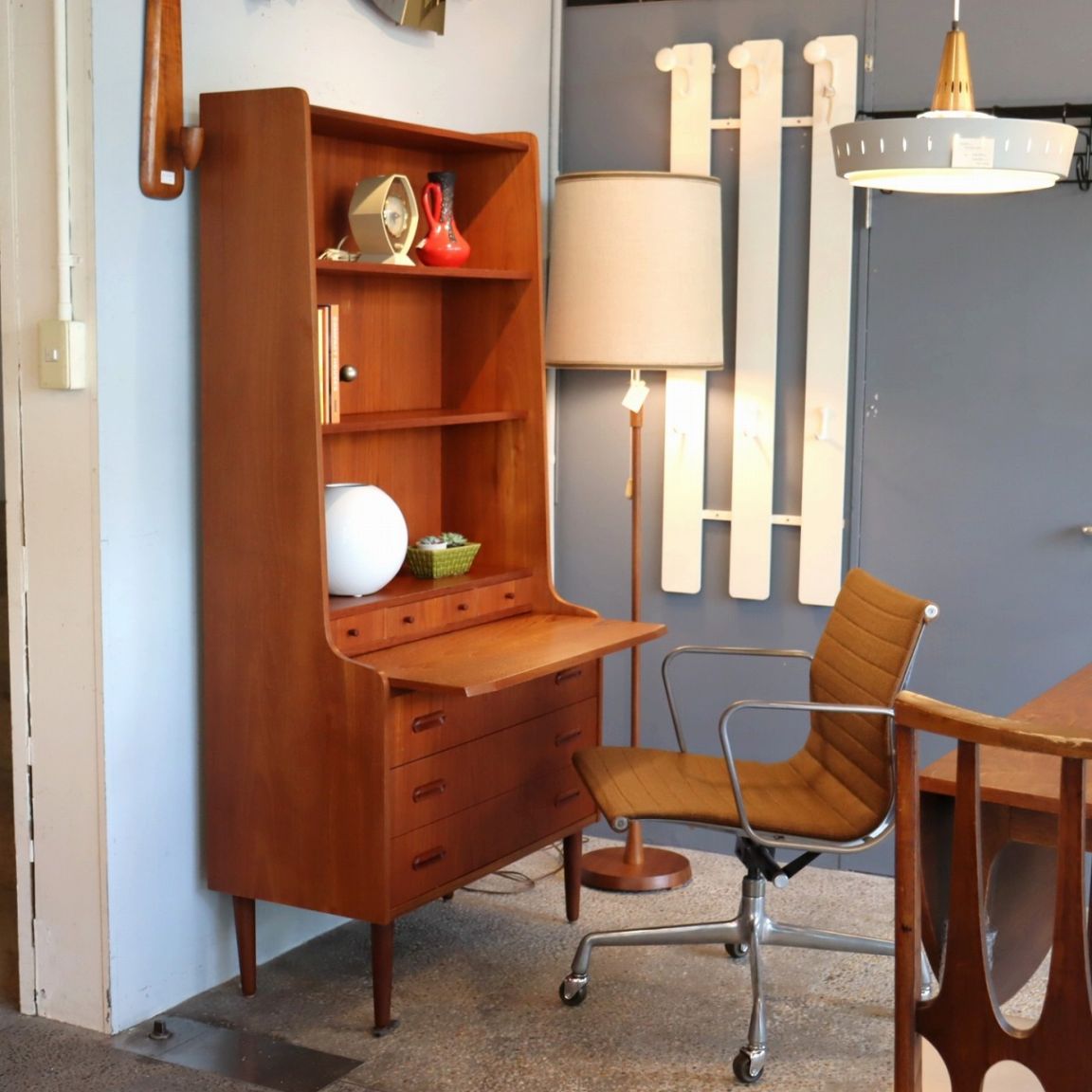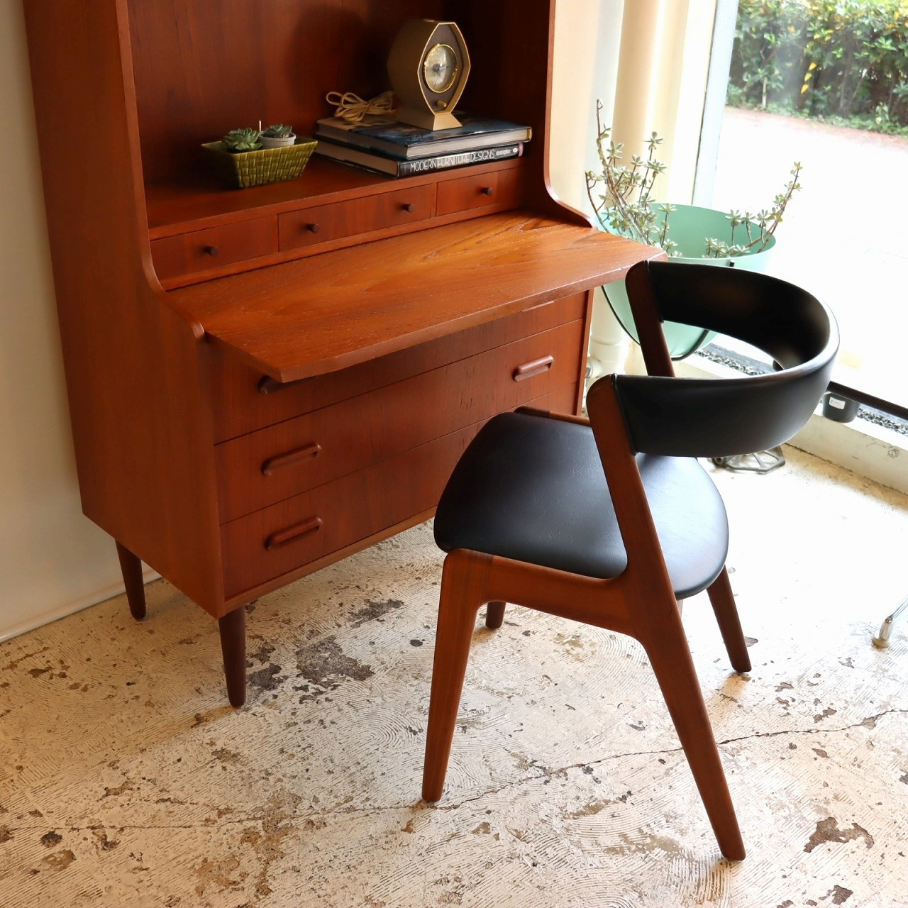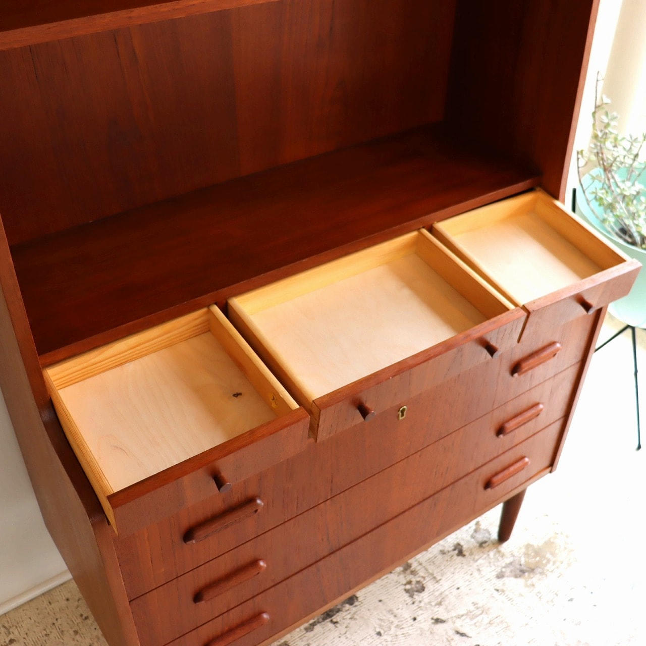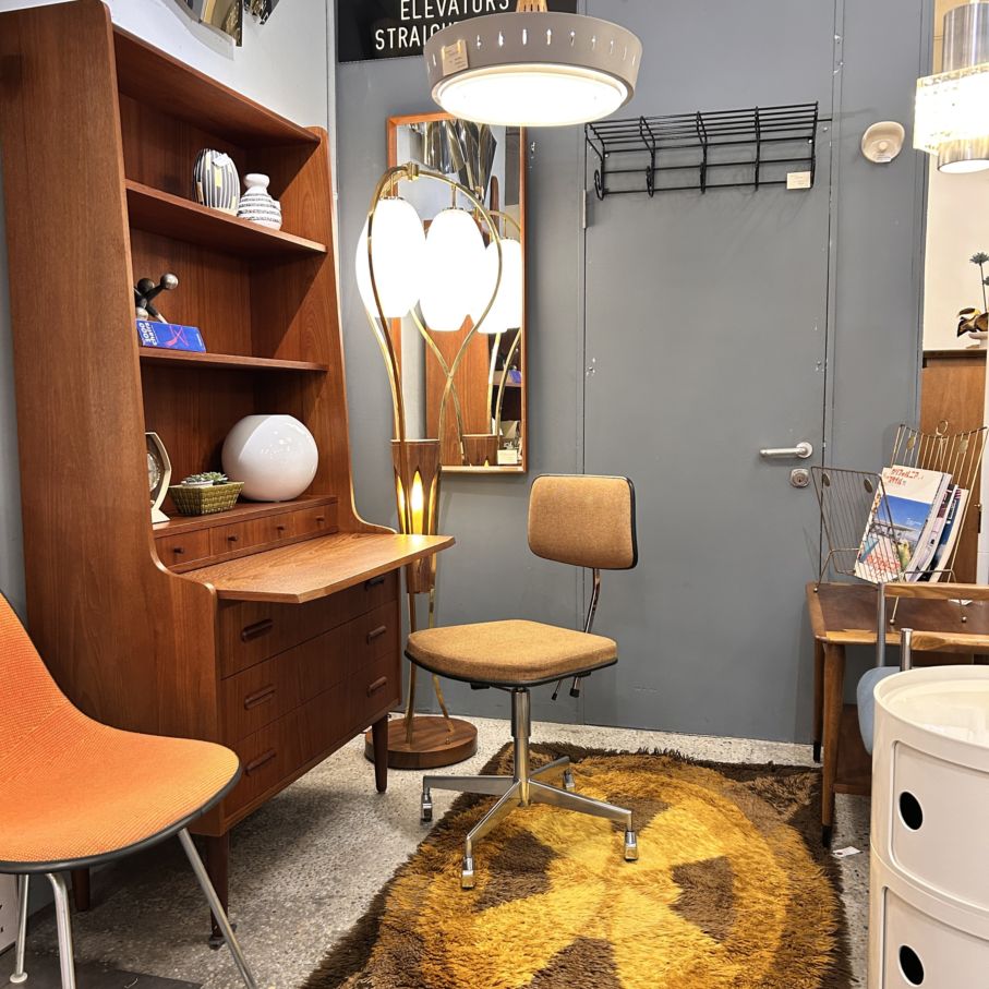 ブックシェルフ。1960年~1970年ごろのデンマークビンテージ家具らしい洗練された雰囲気のブックシェルフ/ライティングビューローです。