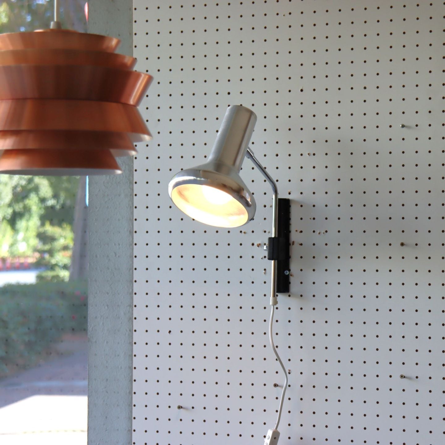ブラケットランプ。シルバーのシェードが素敵な壁掛けランプです。
