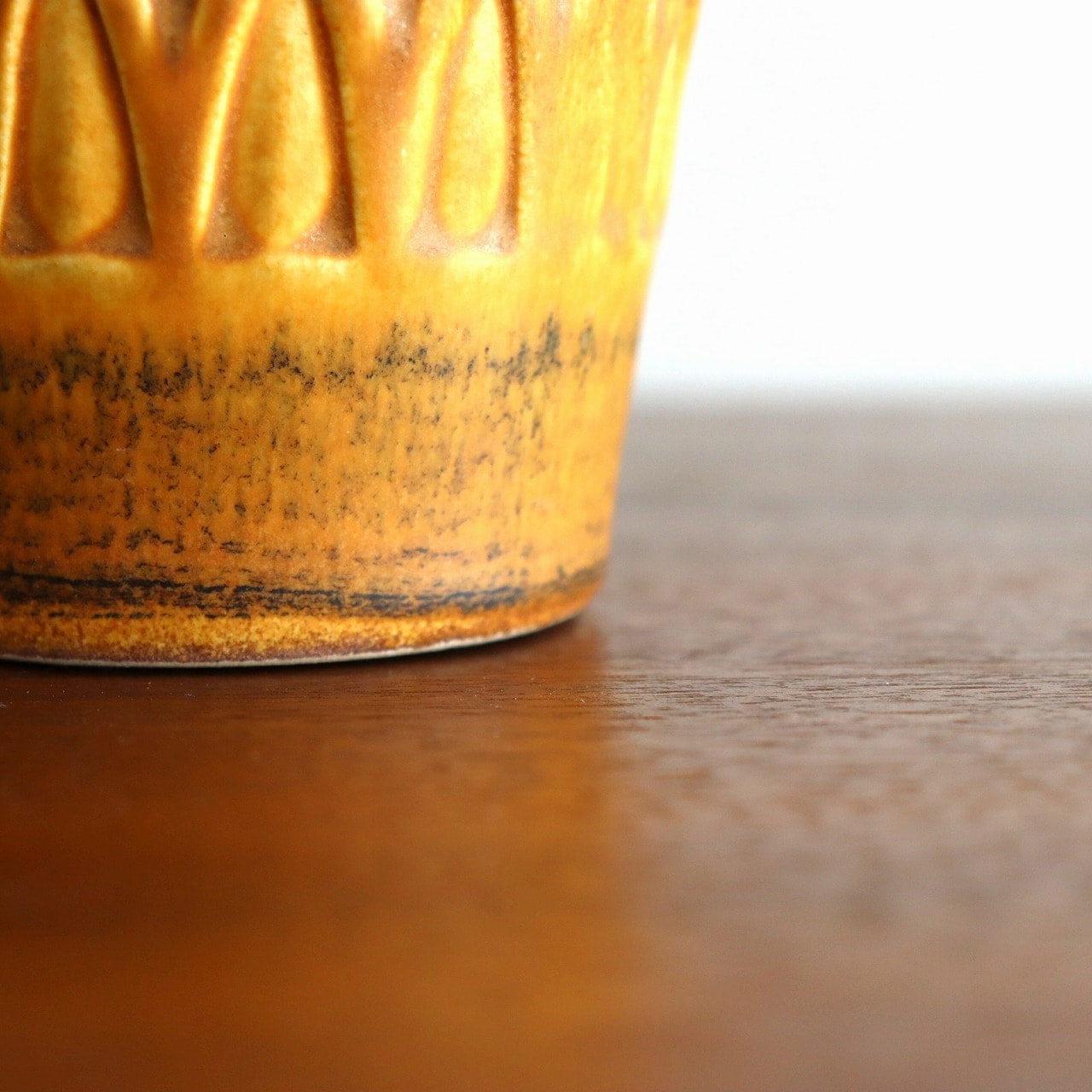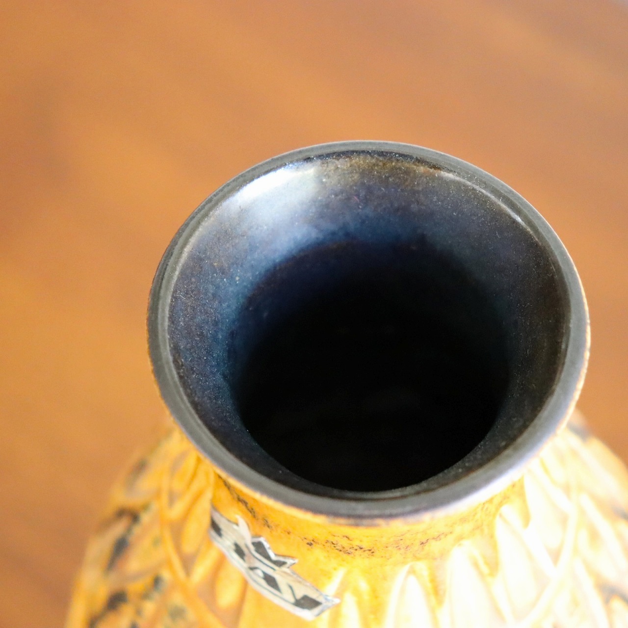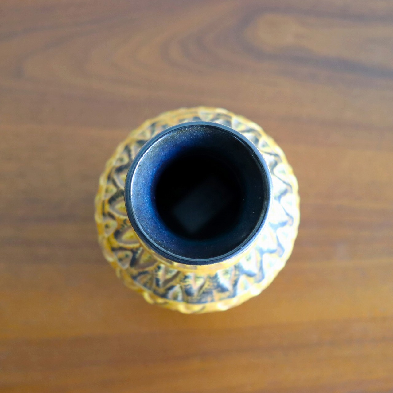 内側は少しブルーを感じる色味が入っています。外側のイエローとの対比が美しく、花瓶としてはもちろんオブジェとしてそのまま飾っても。他の花瓶やオブジェと合わせてコーナーを作っても良いですね。