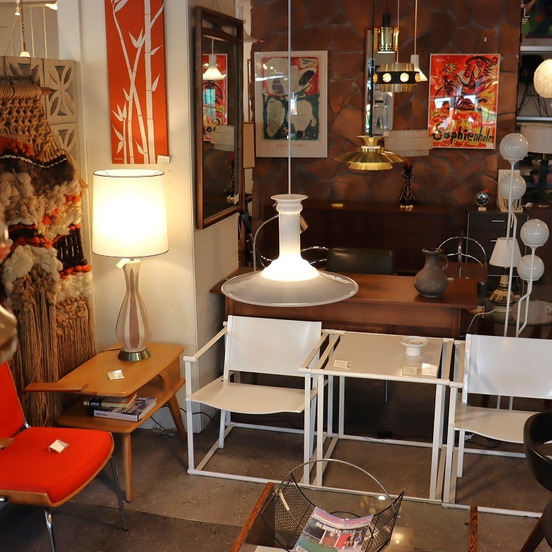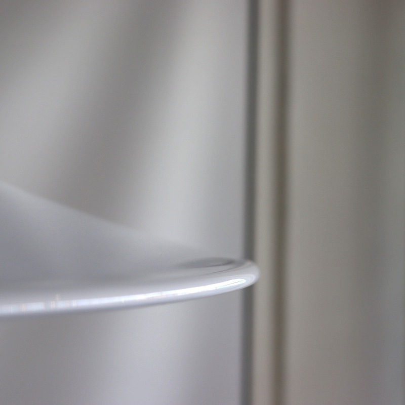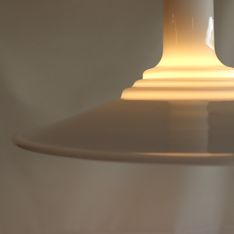 日光を受けたオパールホワイトのガラスのツヤも素敵で、消灯時もガラスのオブジェのような凛とした印象です。空間のアクセントとして、ご自宅のリビングダイニングにはもちろん、店舗什器としてもおすすめです。