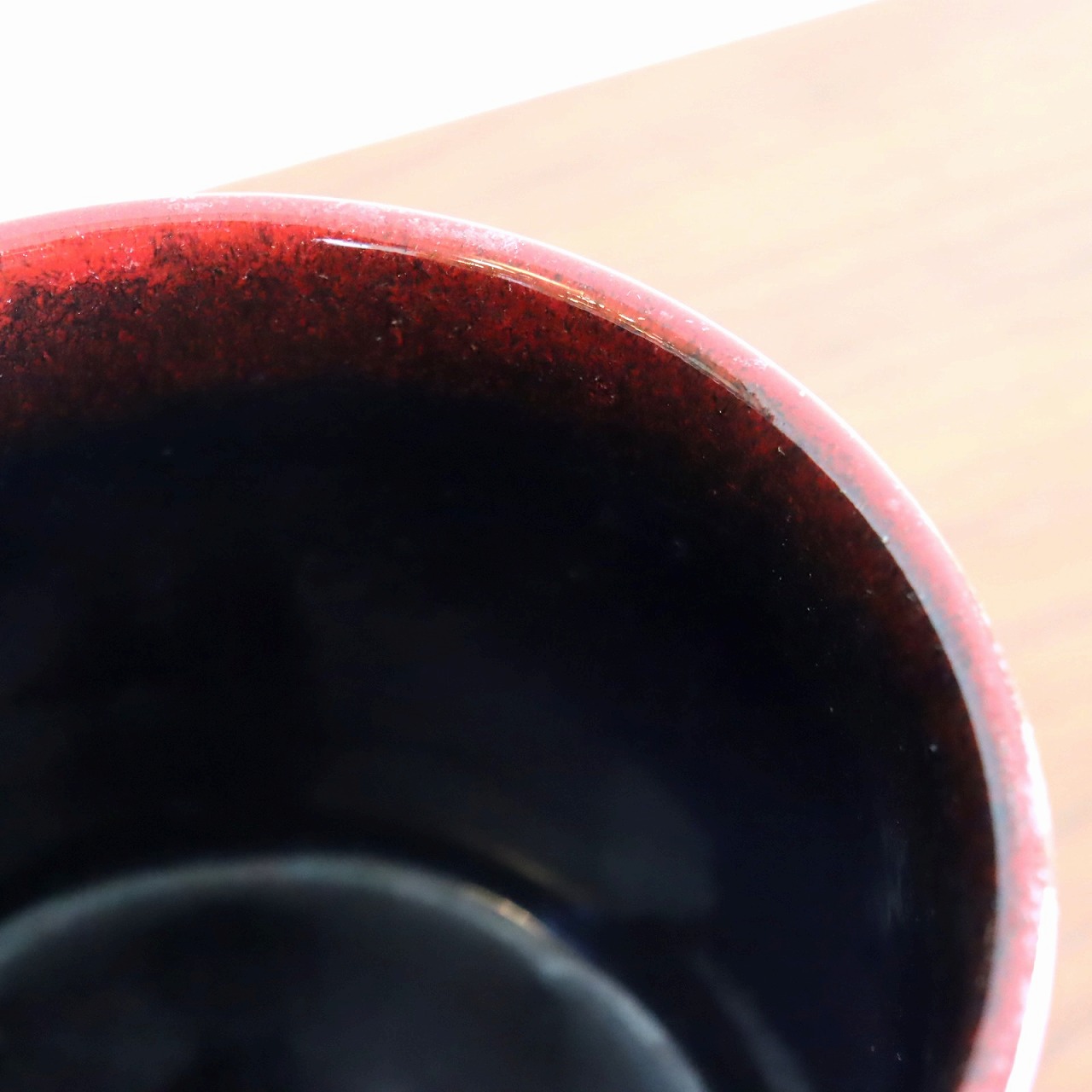 内側は深い青紫。色彩のグラデーションと釉薬の混ざり具合が絶妙なニュアンスですね。内側の色味まで洒落た心奪われるアイテムです。