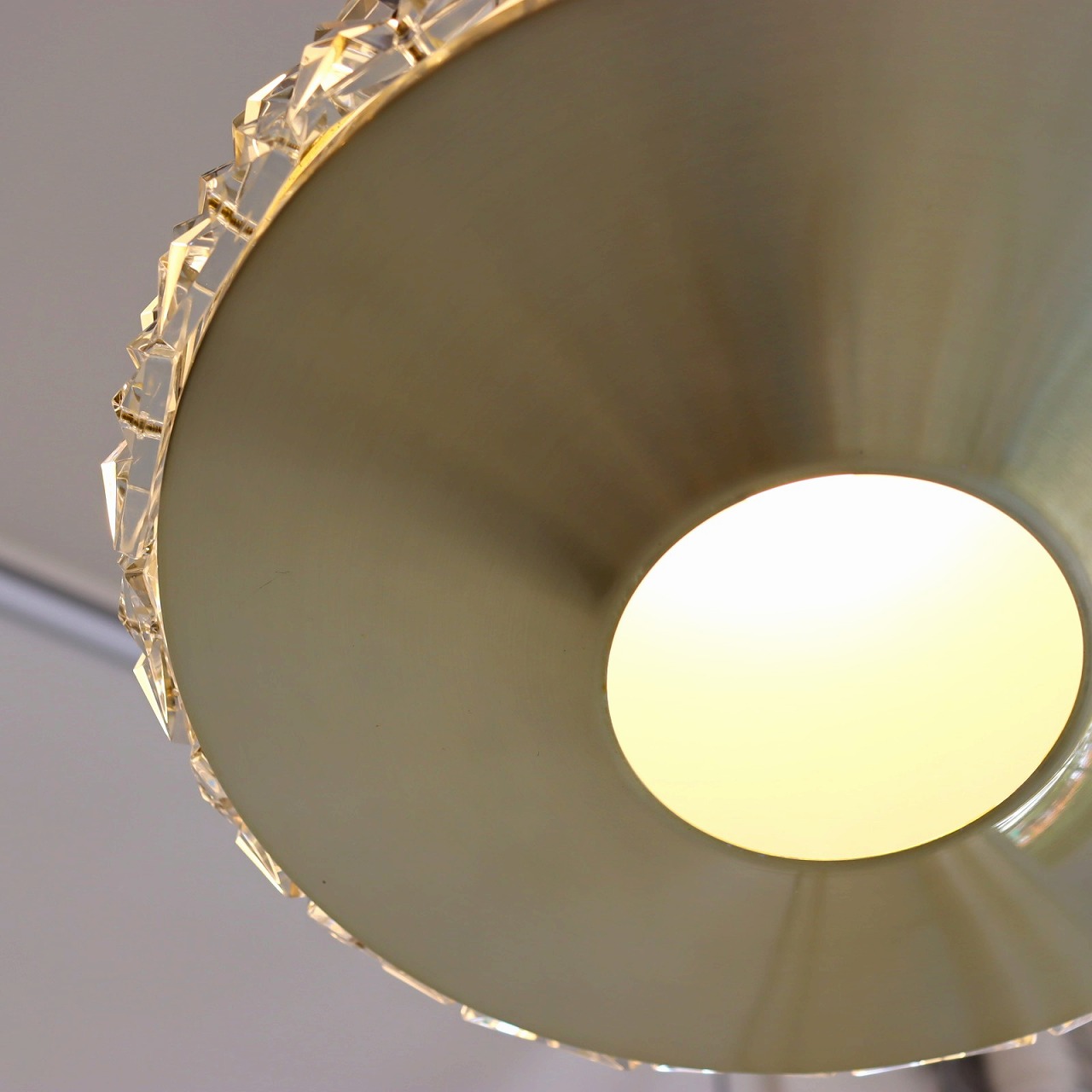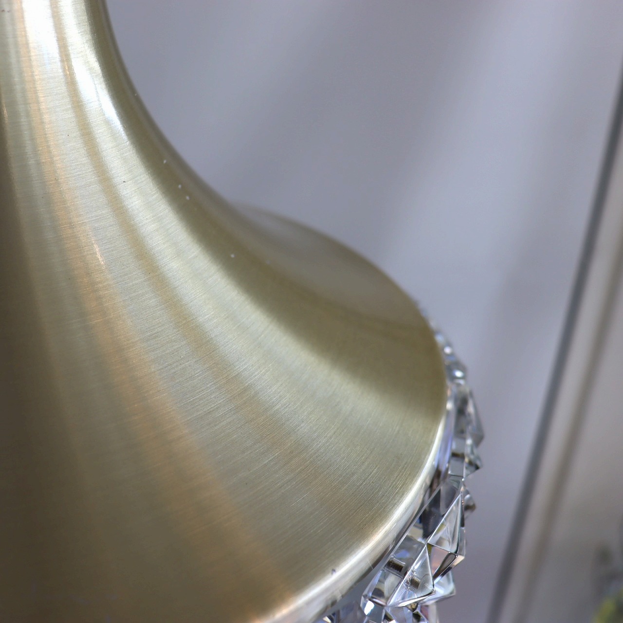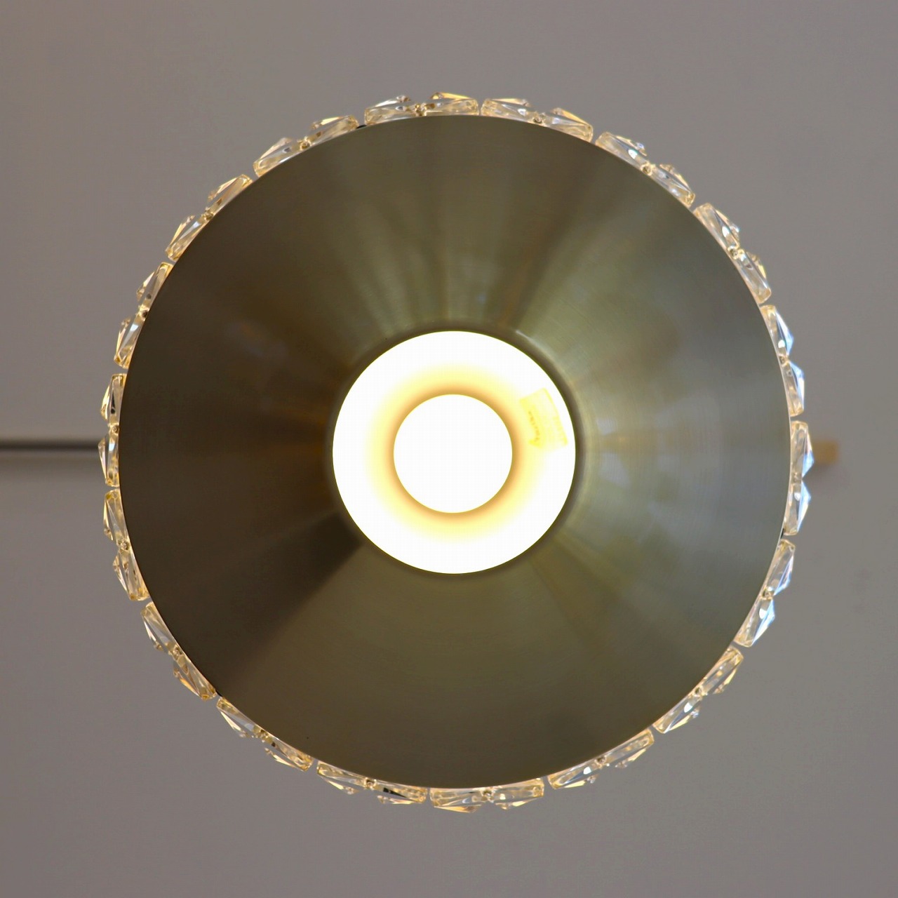 艶やかな質感が特徴的なゴールドのシェードは、外へ広がる美しい曲線を描いています。下面は窄むように内側へ湾曲していて、どの角度から見ても綺麗です。