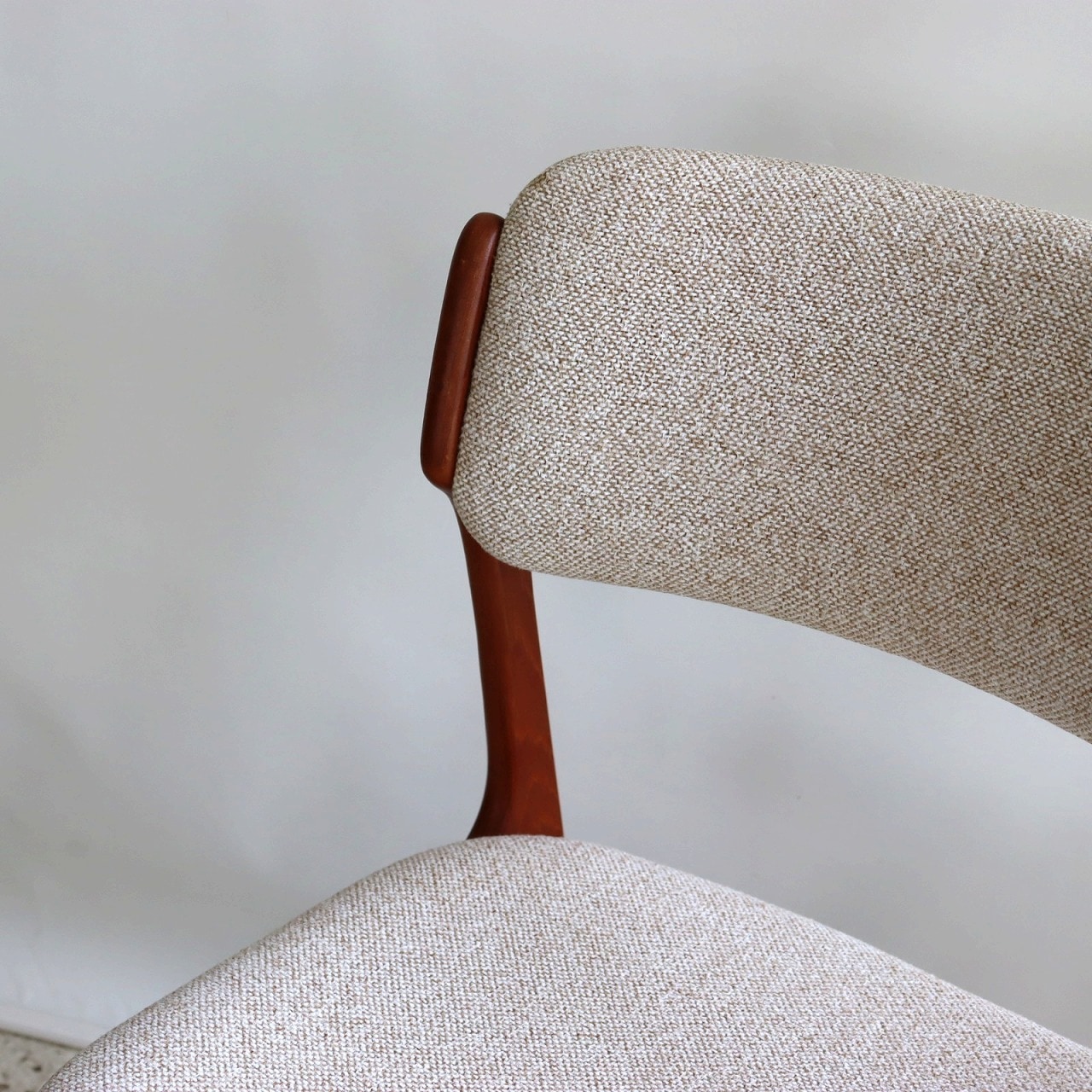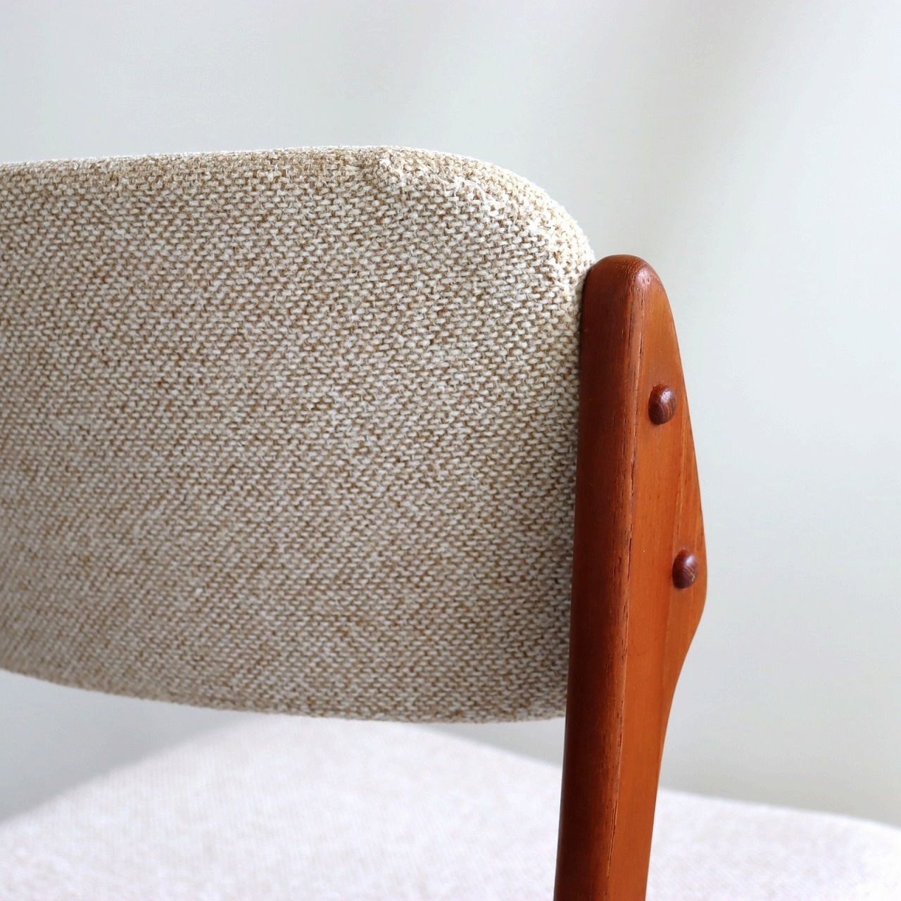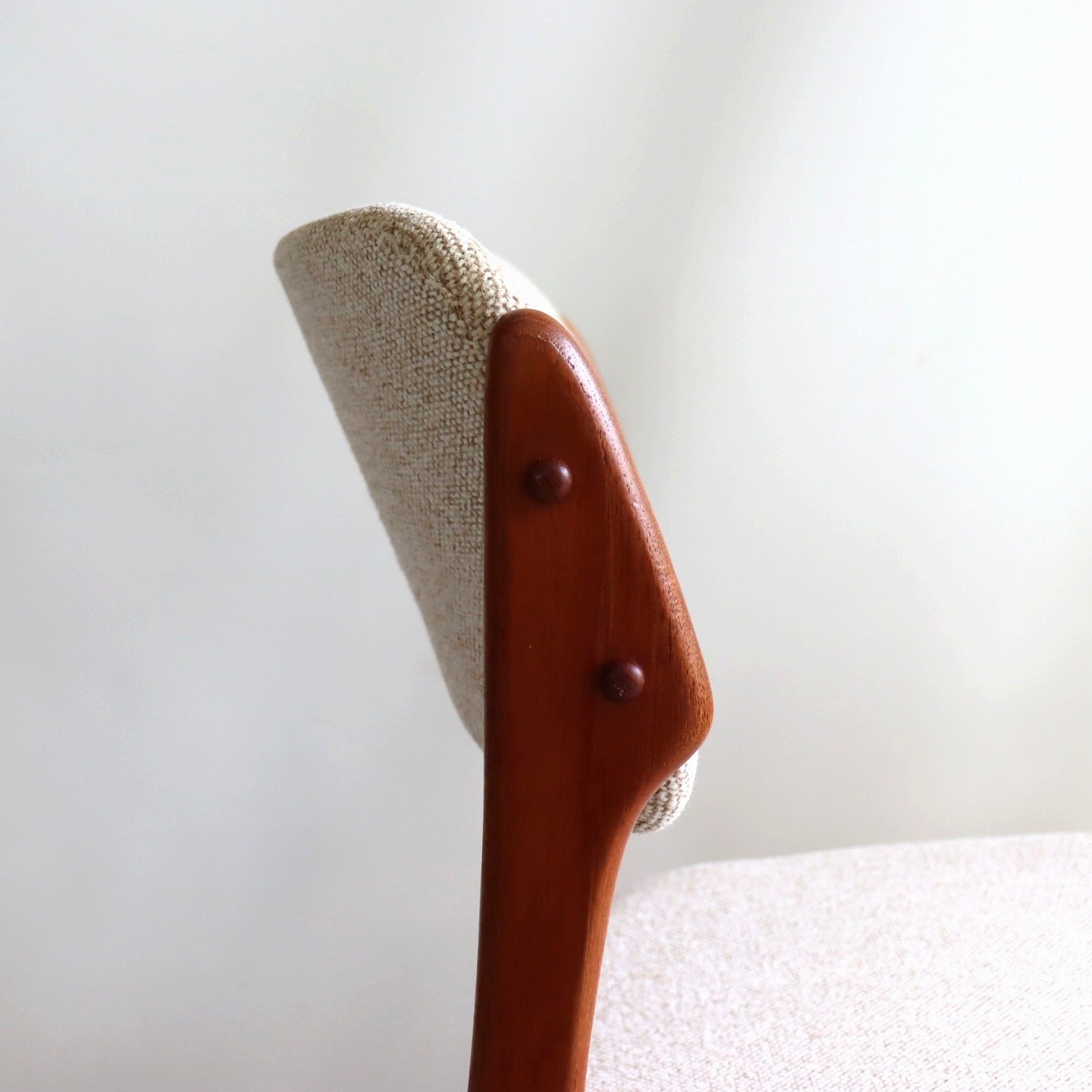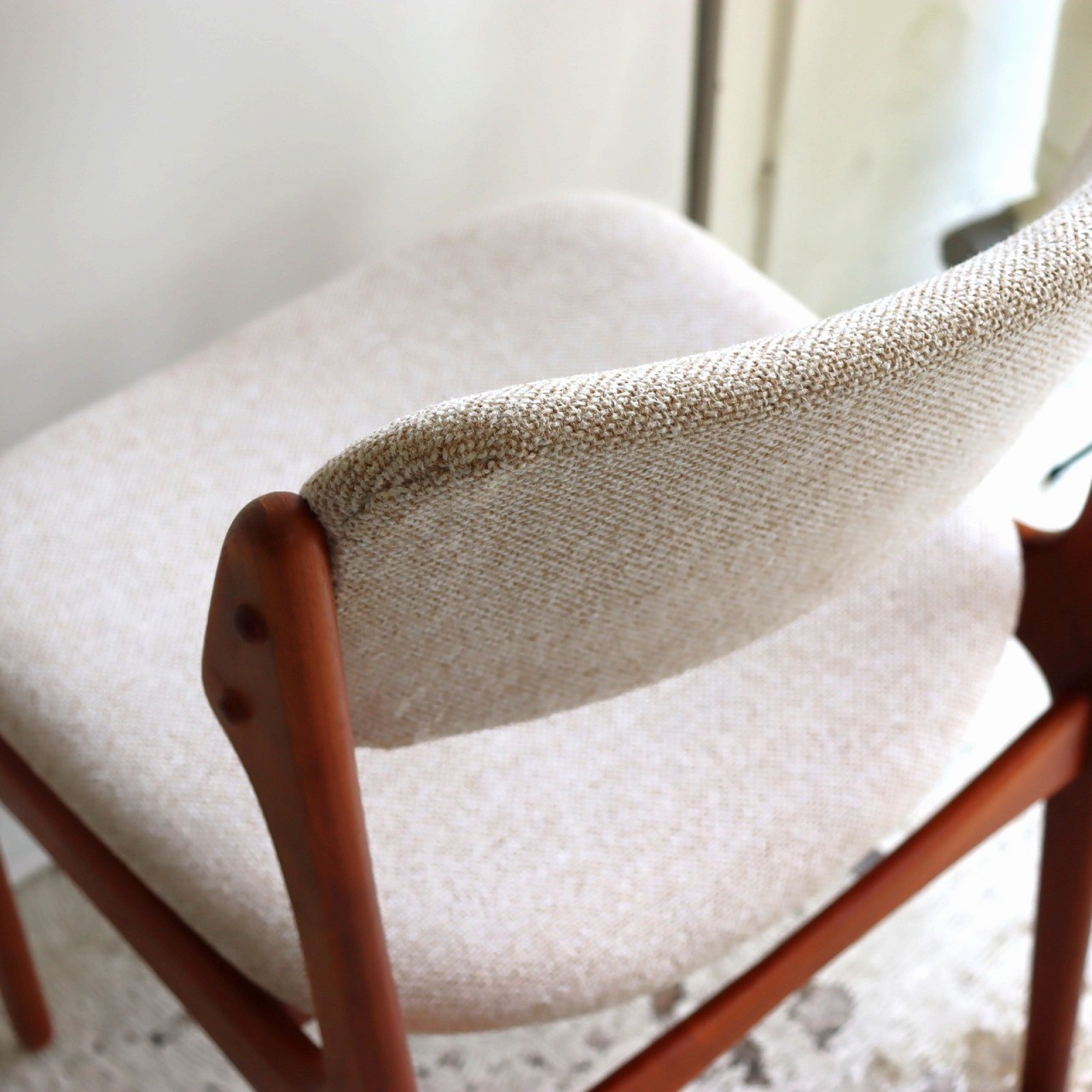張地はホワイトとベージュを織り込んだ柔らかい雰囲気で、北欧家具らしい優しい佇まいになっています。ビンテージならではの深みも感じられますね。