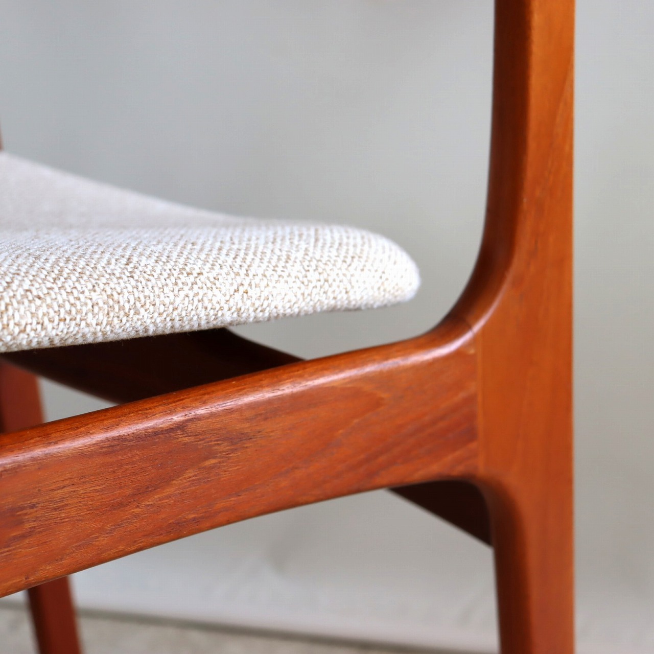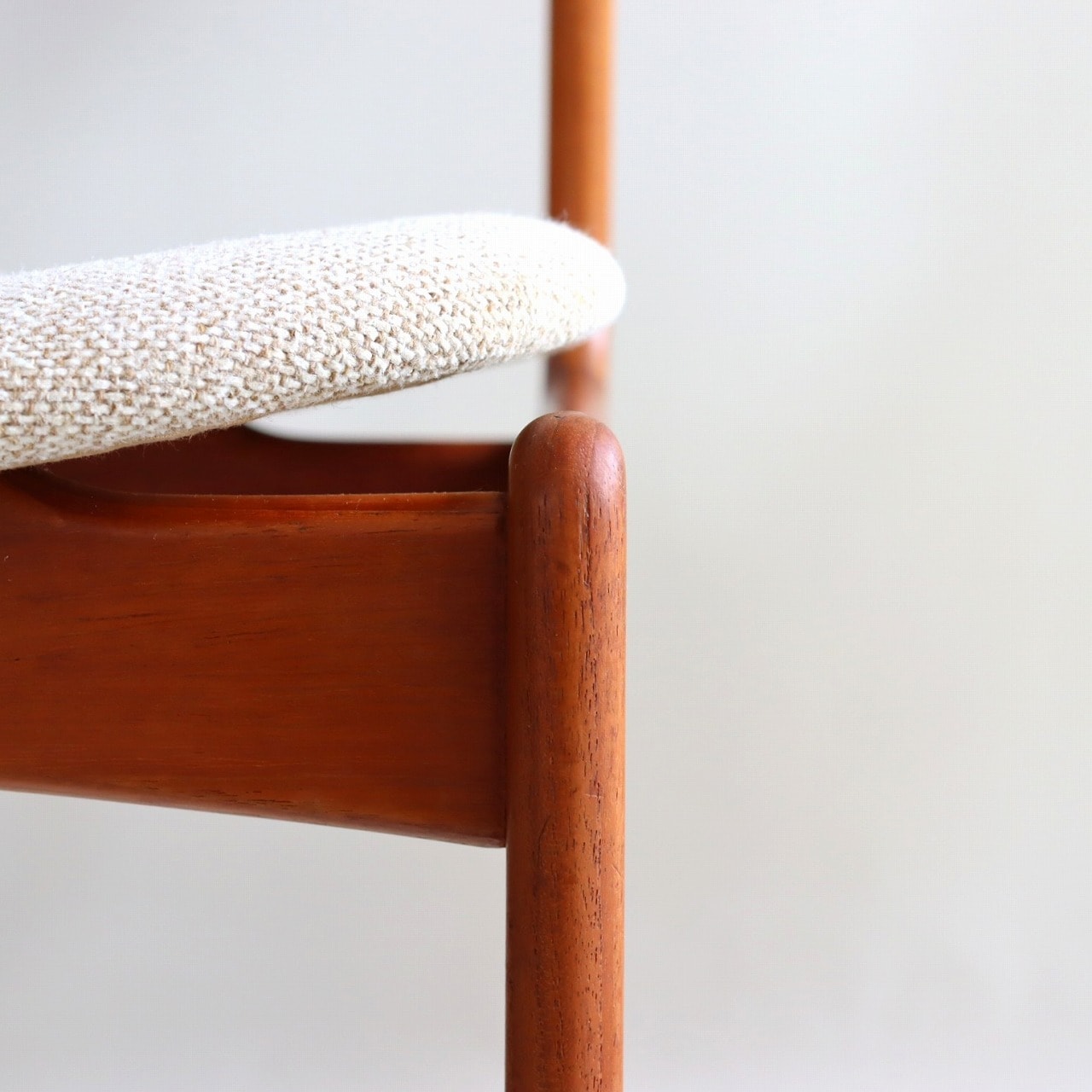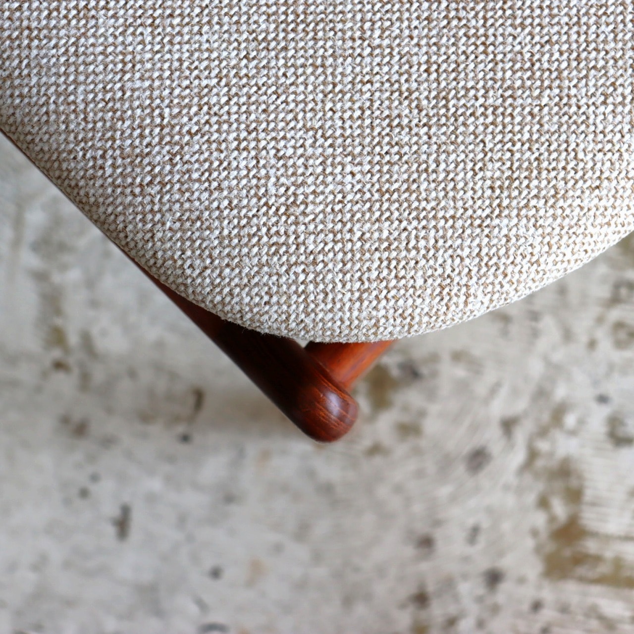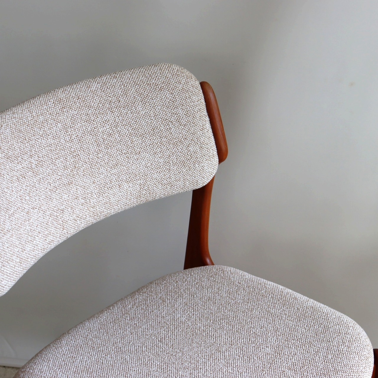 張地はホワイトとベージュを織り込んだ柔らかい雰囲気で、北欧家具らしい優しい佇まいになっています。ビンテージならではの深みも感じられますね。