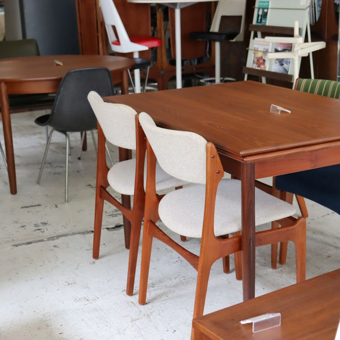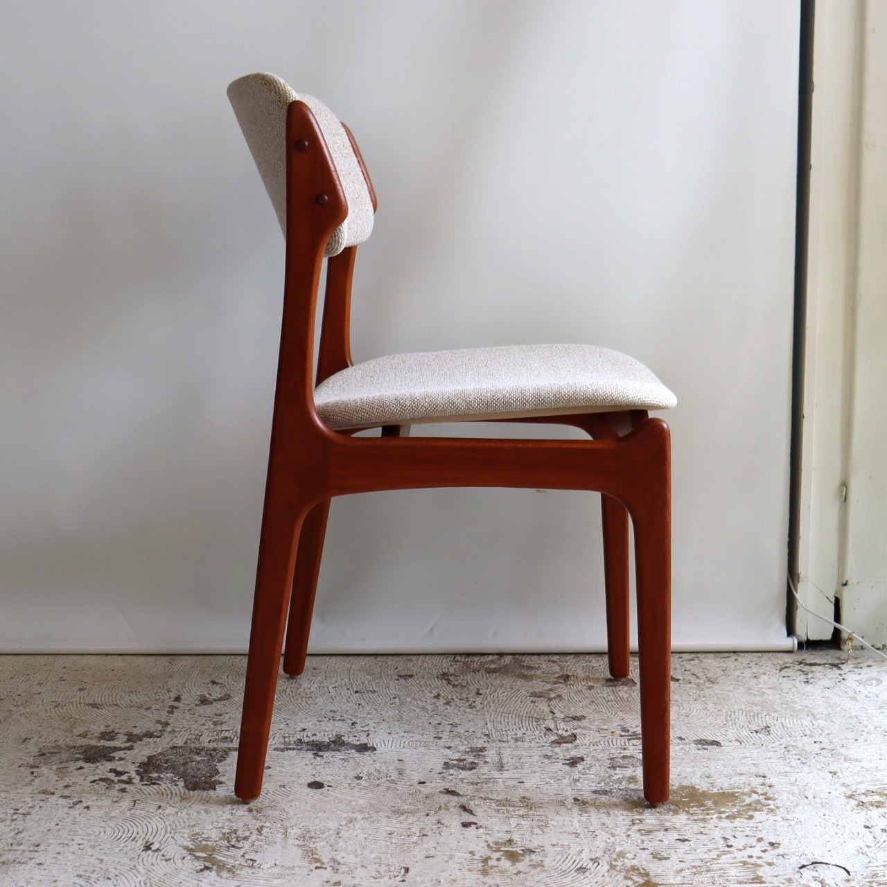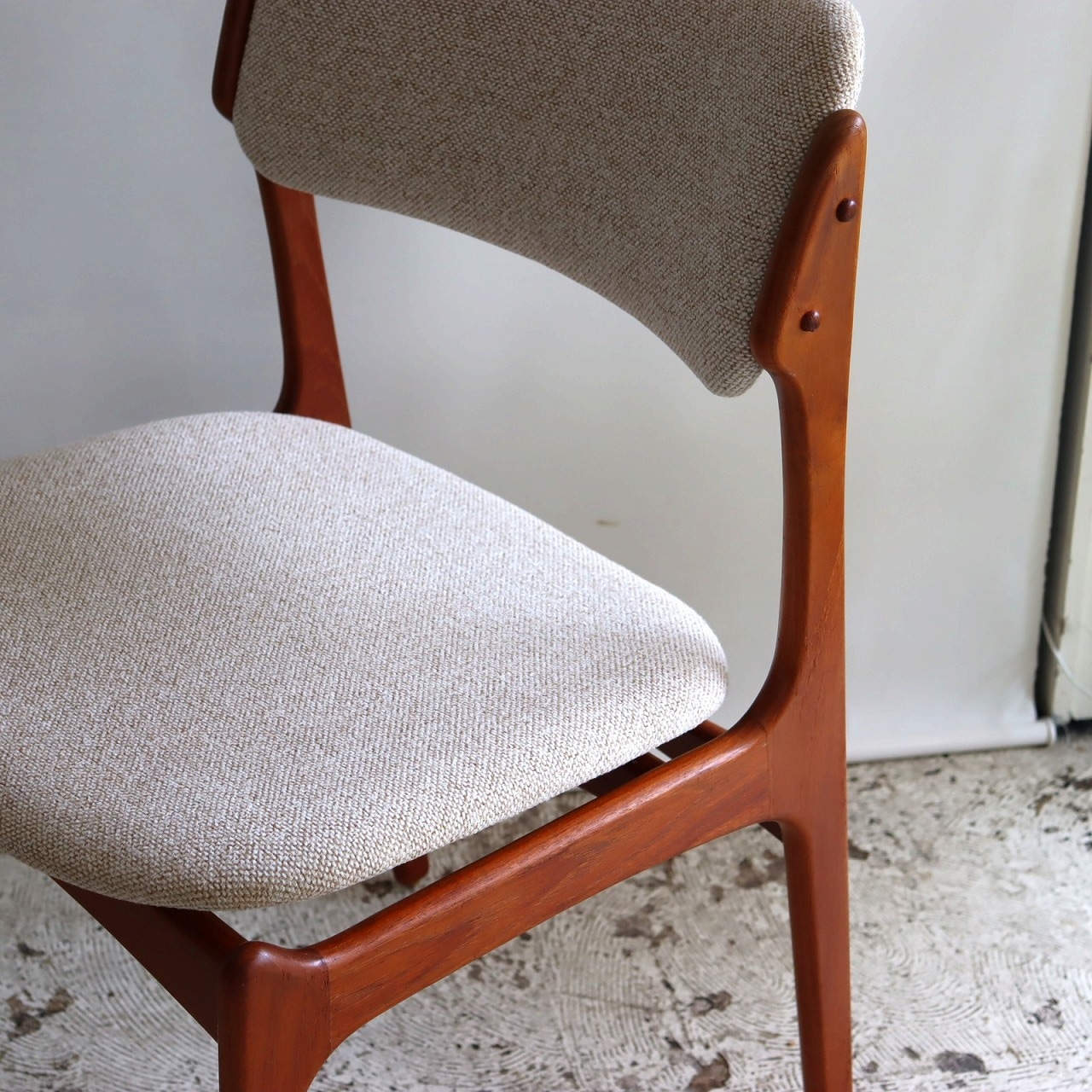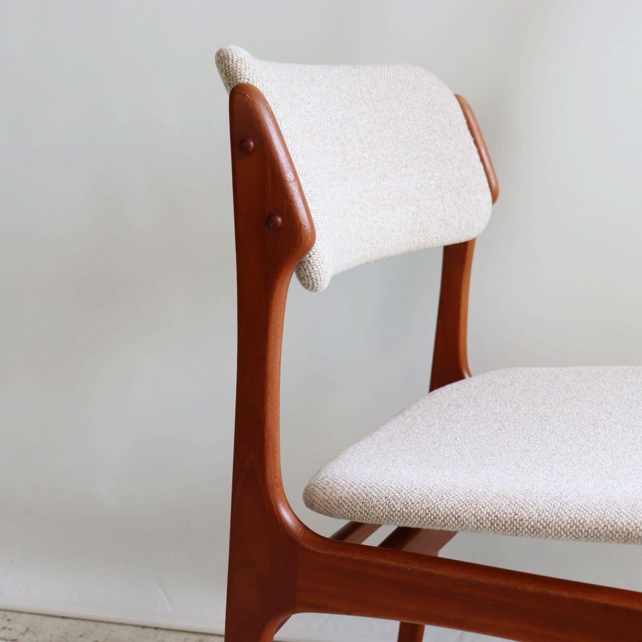 張地はホワイトとベージュを織り込んだ柔らかい雰囲気で、北欧家具らしい優しい佇まいになっています。ビンテージならではの深みも感じられますね。