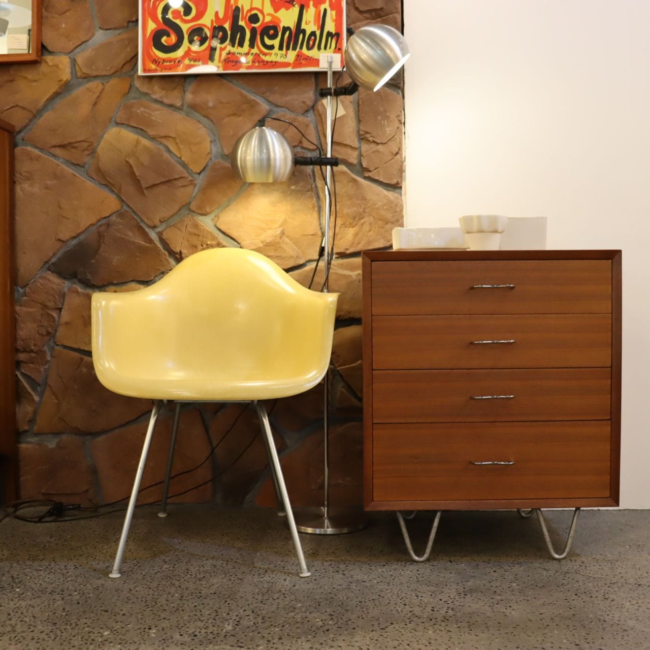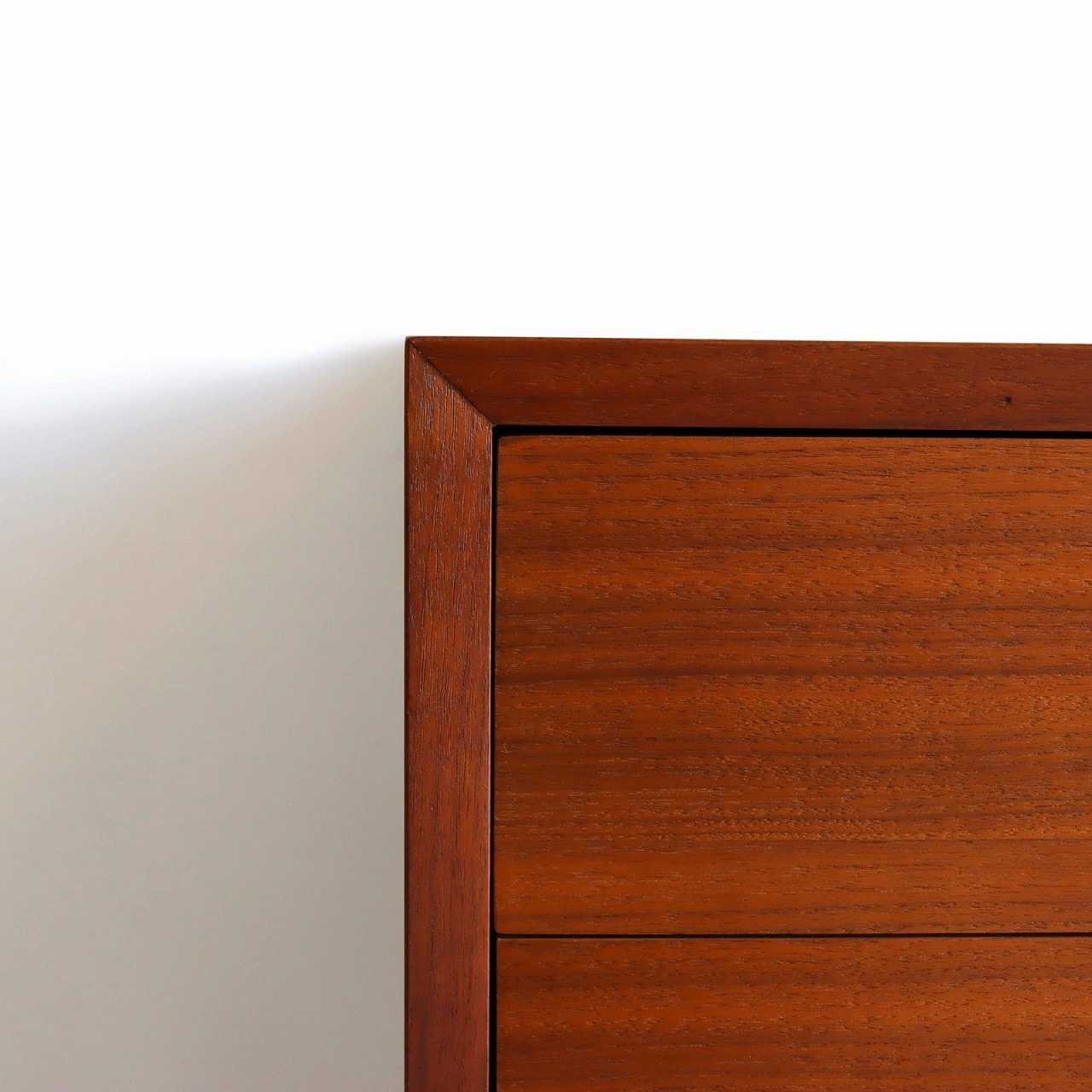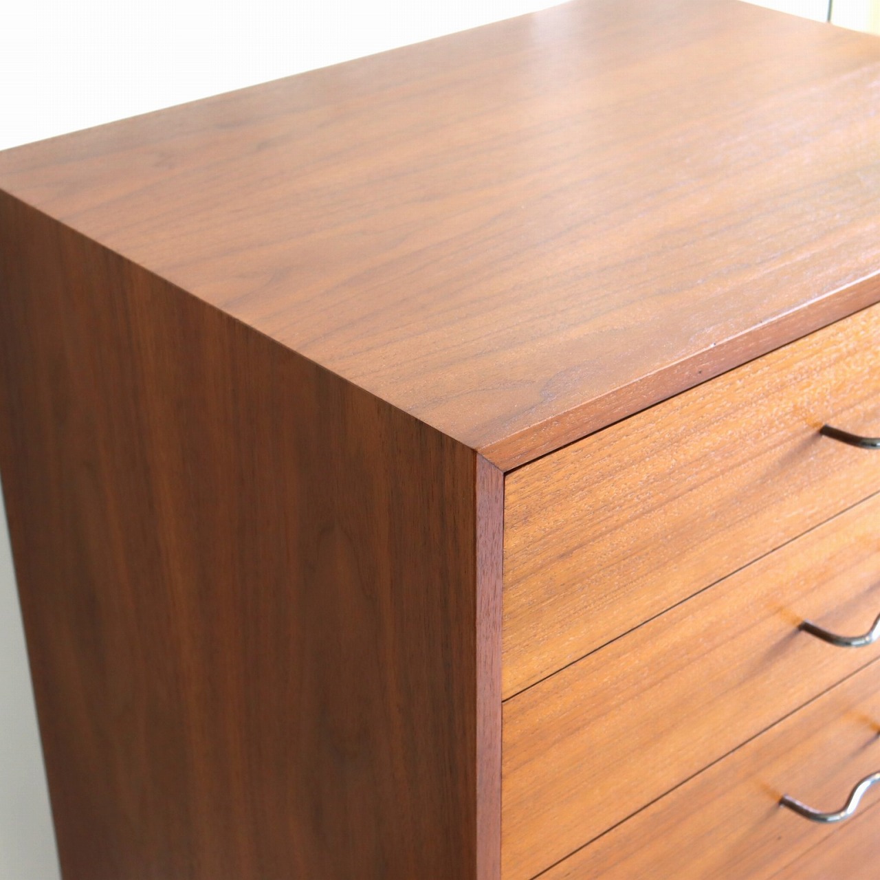 ネルソンらしいシンプルなデザインにウォールナットの華やかな板目の突板が使用されています。ミッドセンチュリーらしい深みがあり艶のある質感です。