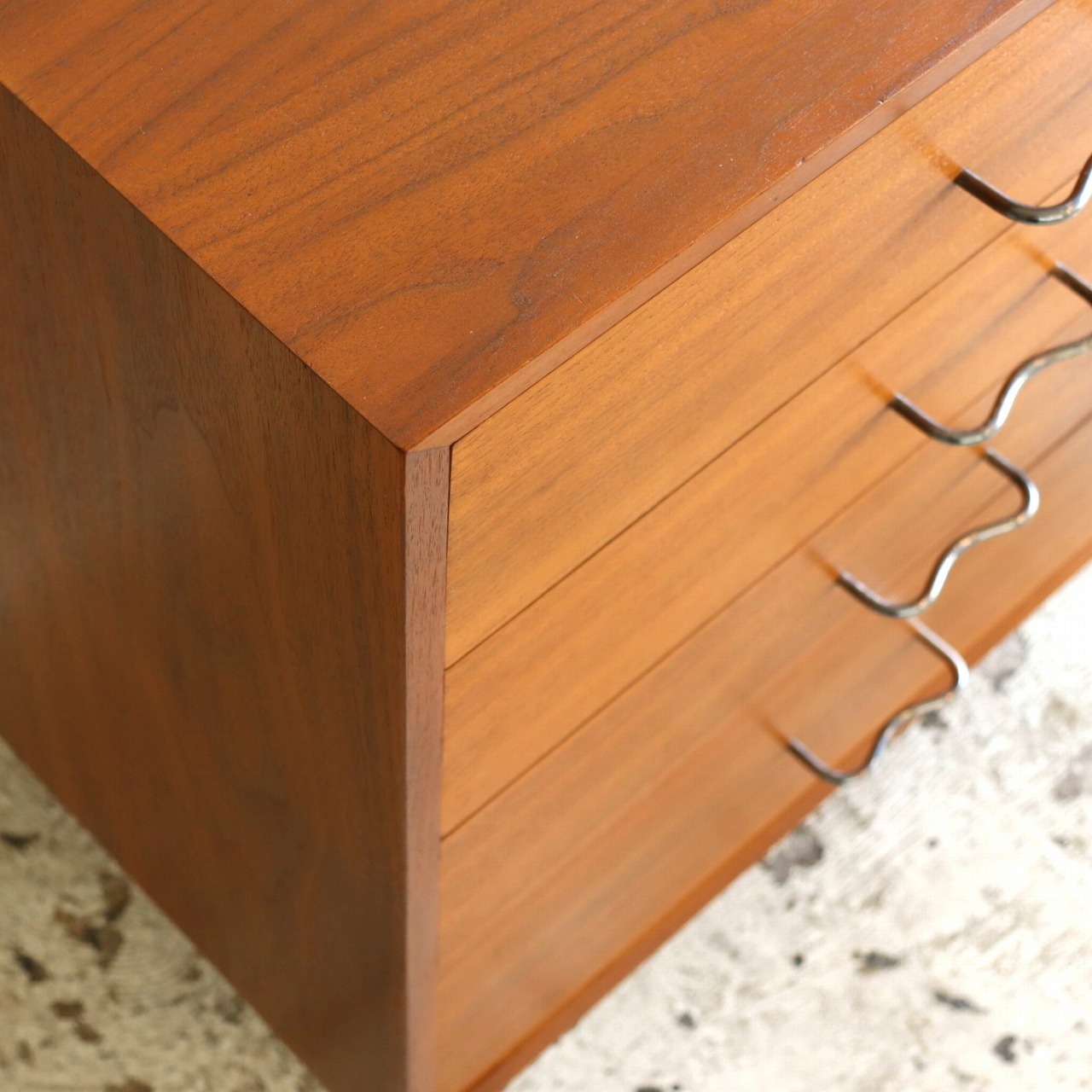 引き出し内のステッカーは残っていますが、引き出しトップの丸ラベルはありません。レストア済みでとても綺麗です。