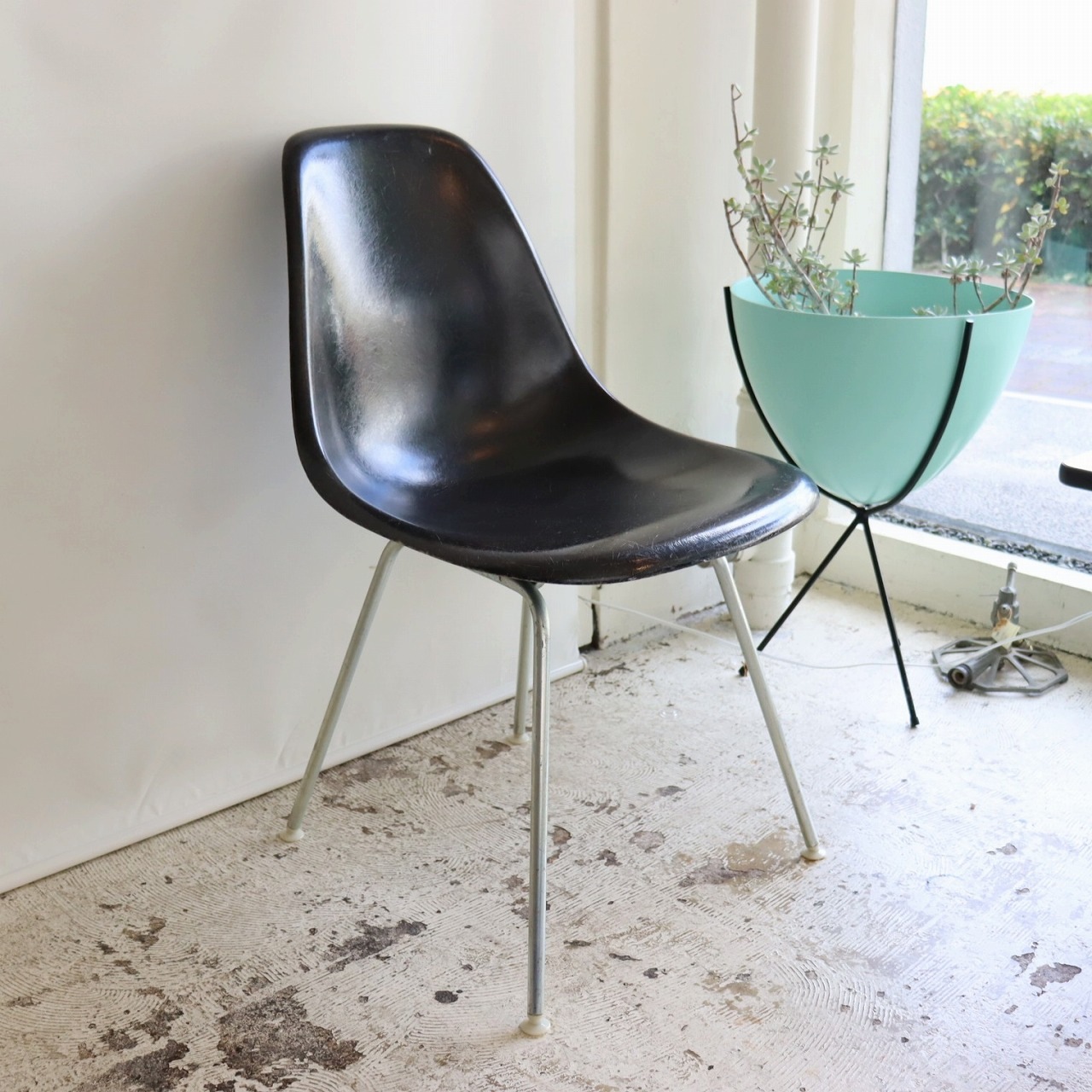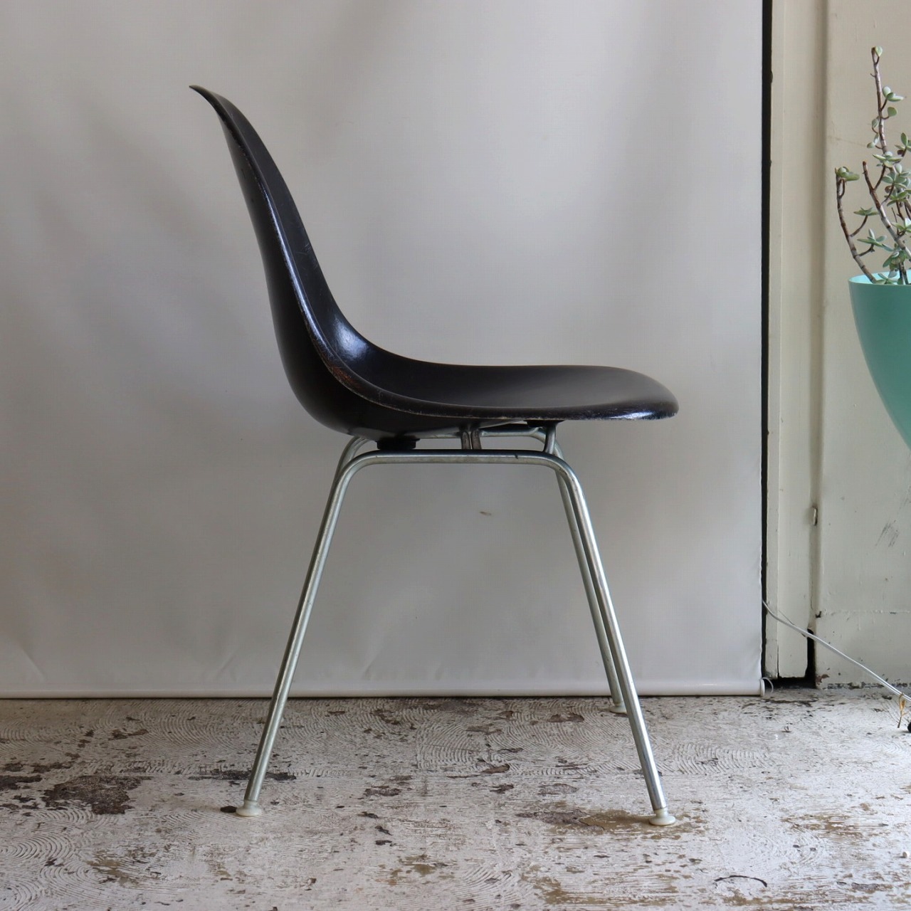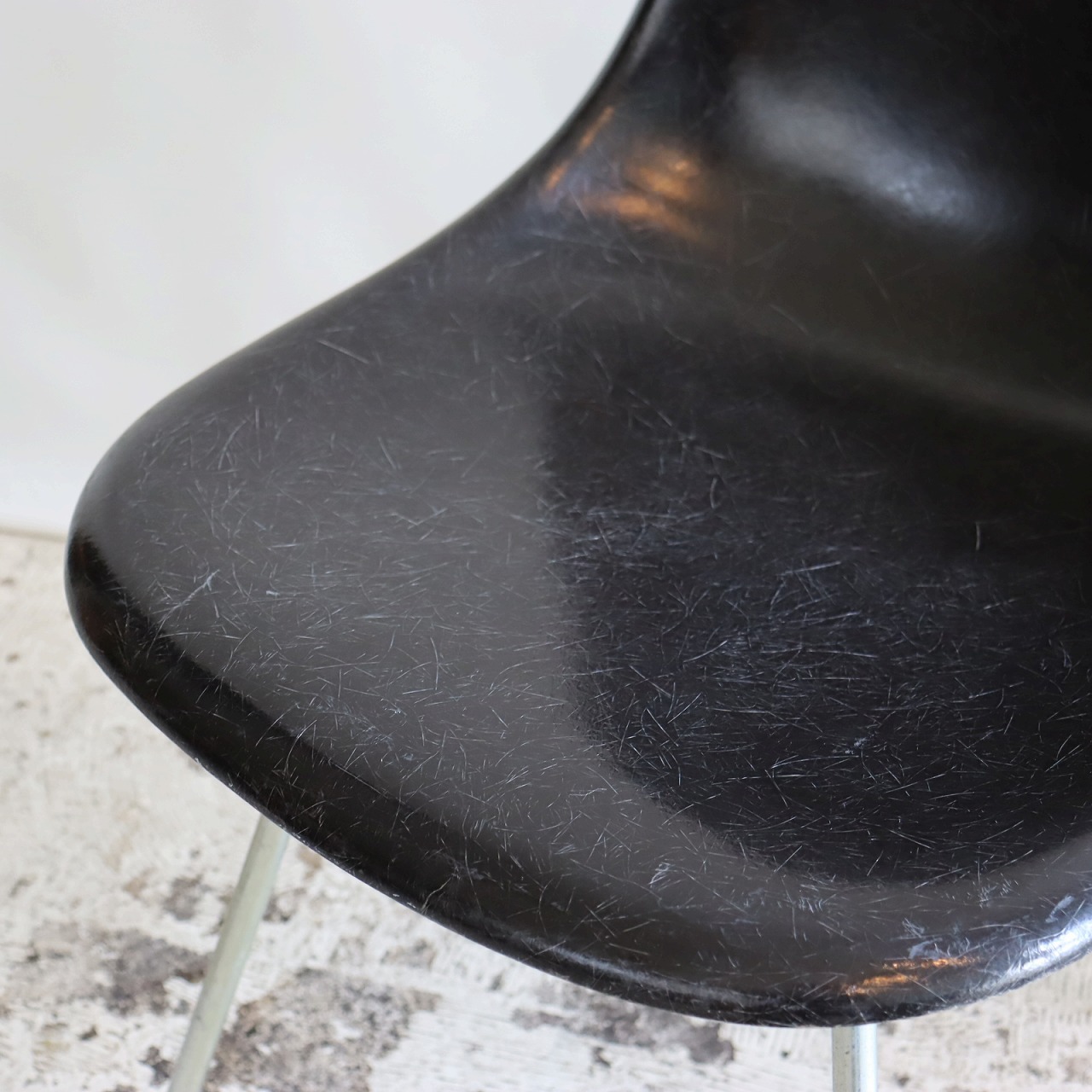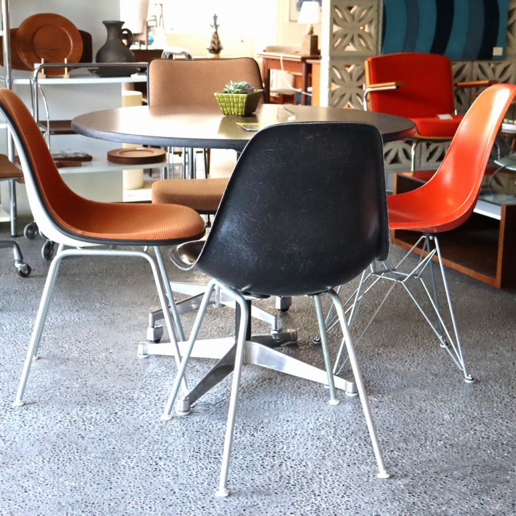 ハーマンミラー社製サイドシェルチェア。チャールズ・イームズデザインのビンテージチェア。FRP(ファイバーグラス)製のブラック、ナローマウントです。