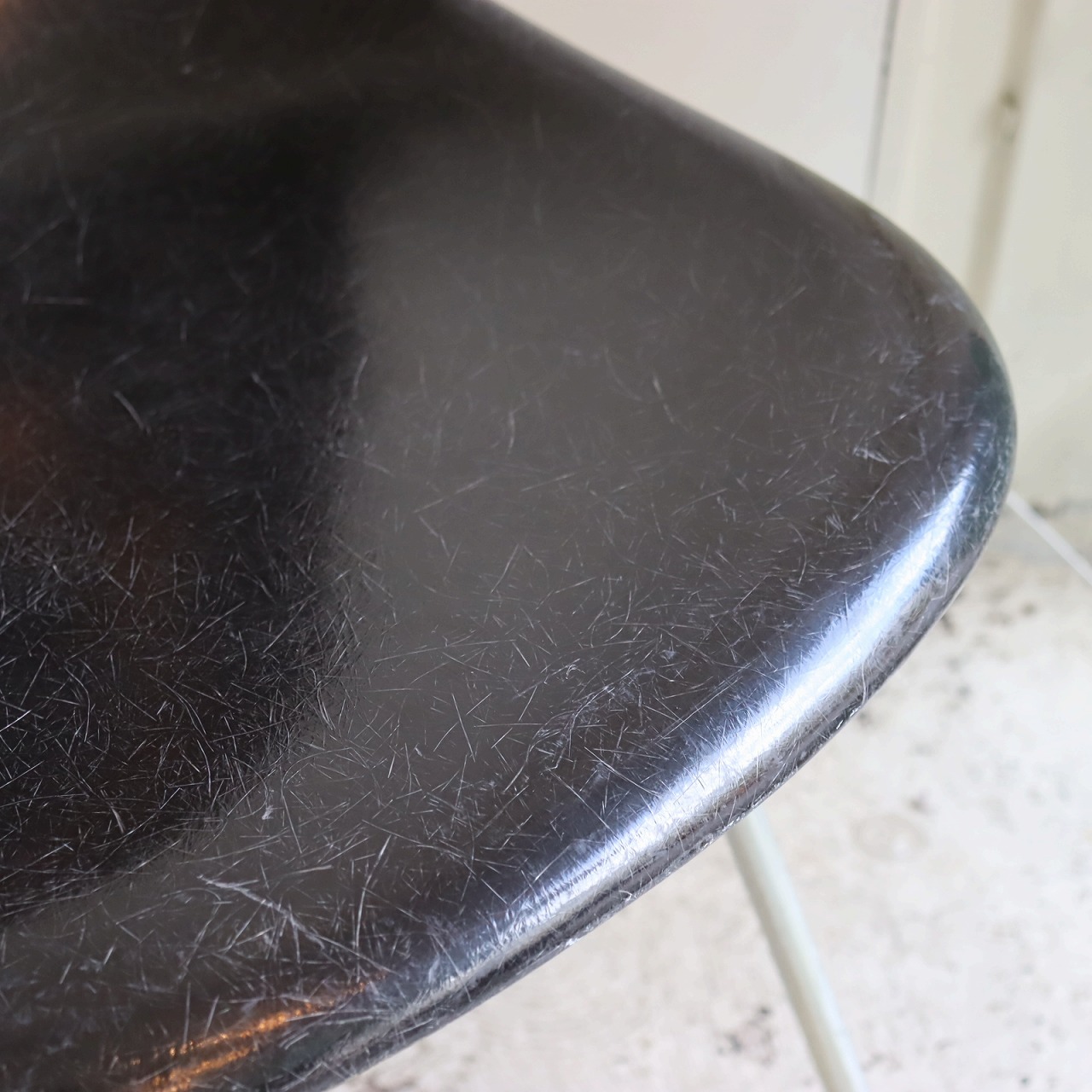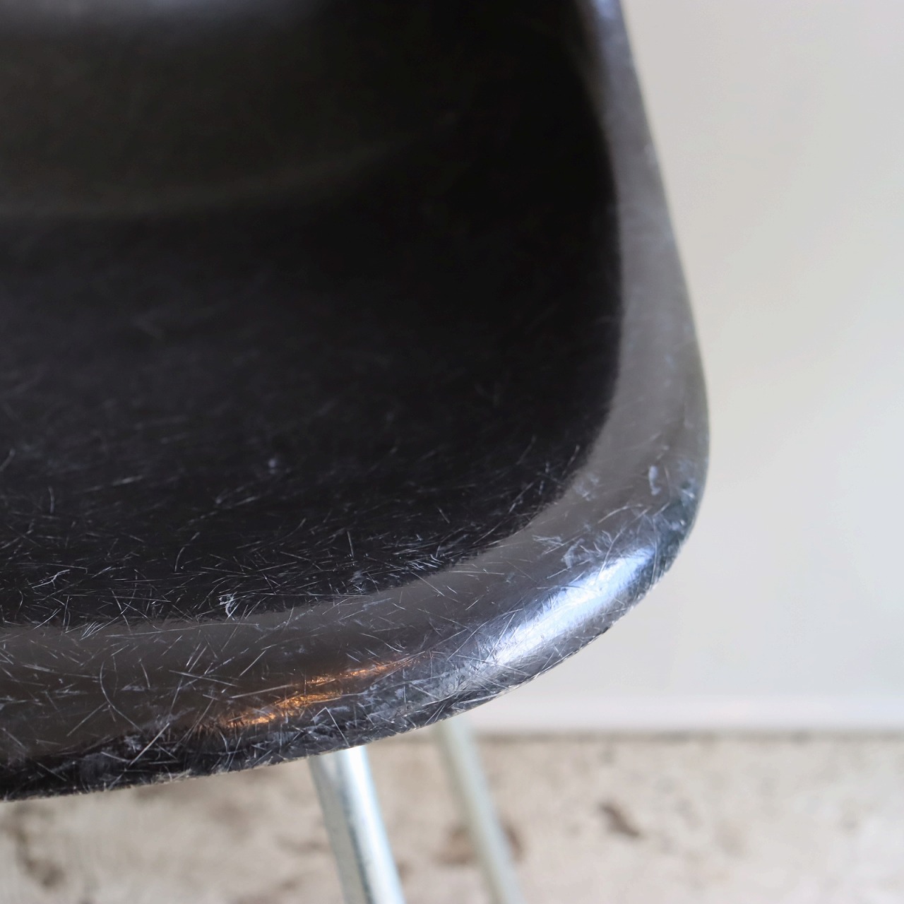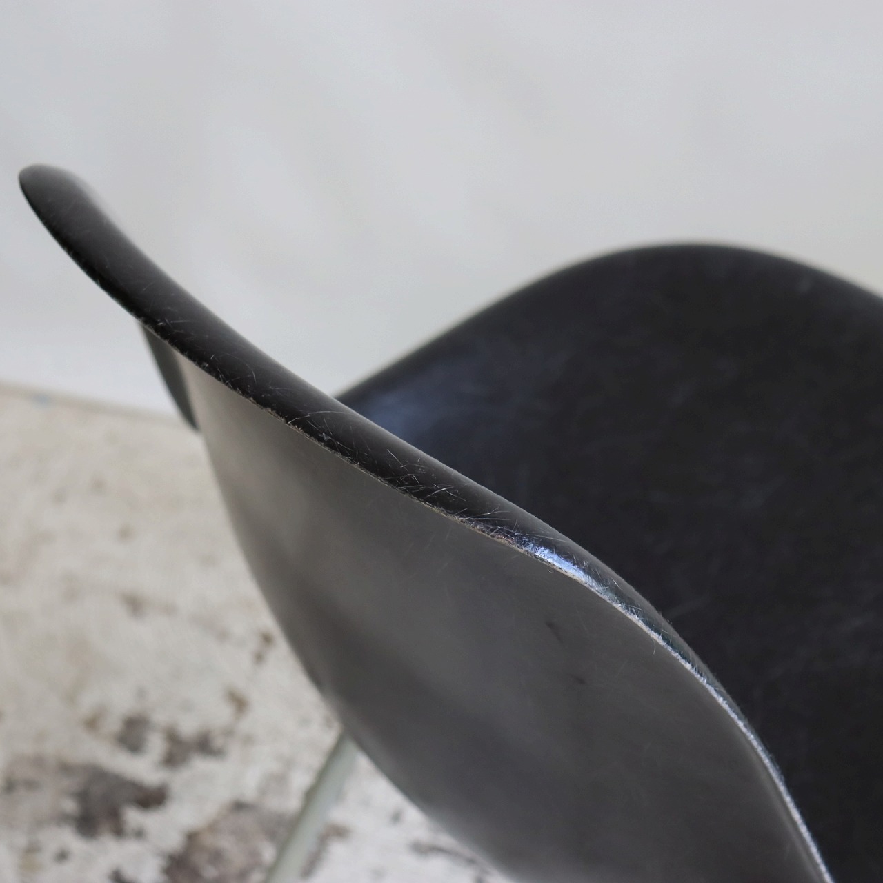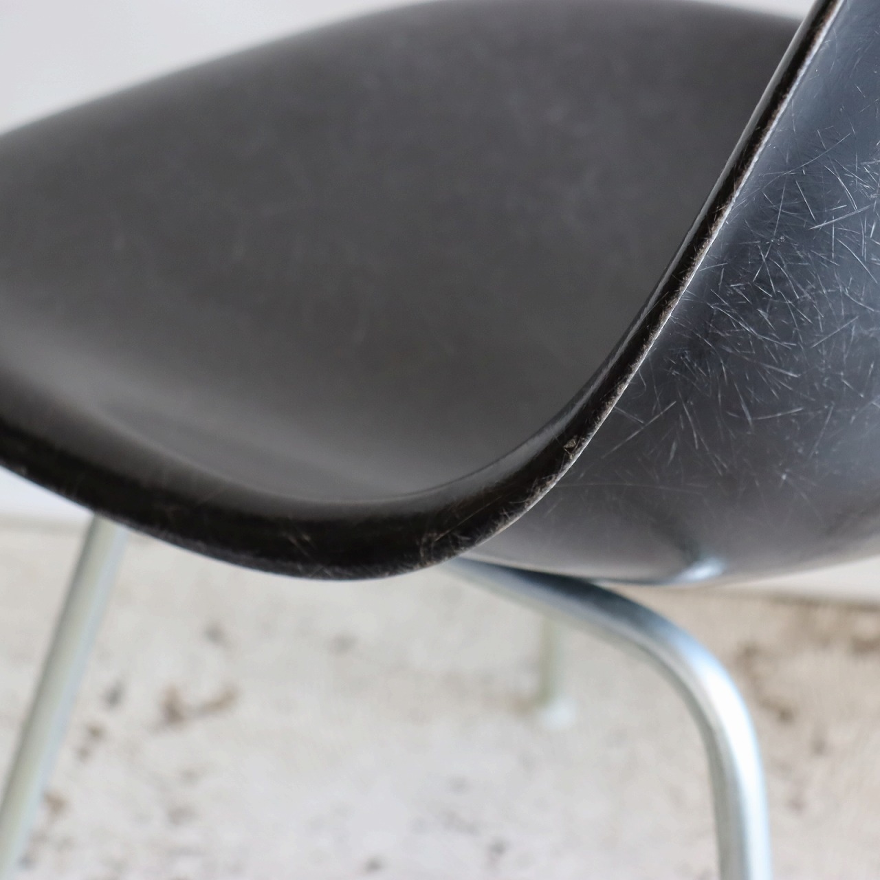 ハーマンミラー社製サイドシェルチェア。チャールズ・イームズデザインのビンテージチェア。FRP(ファイバーグラス)製のブラック、ナローマウントです。