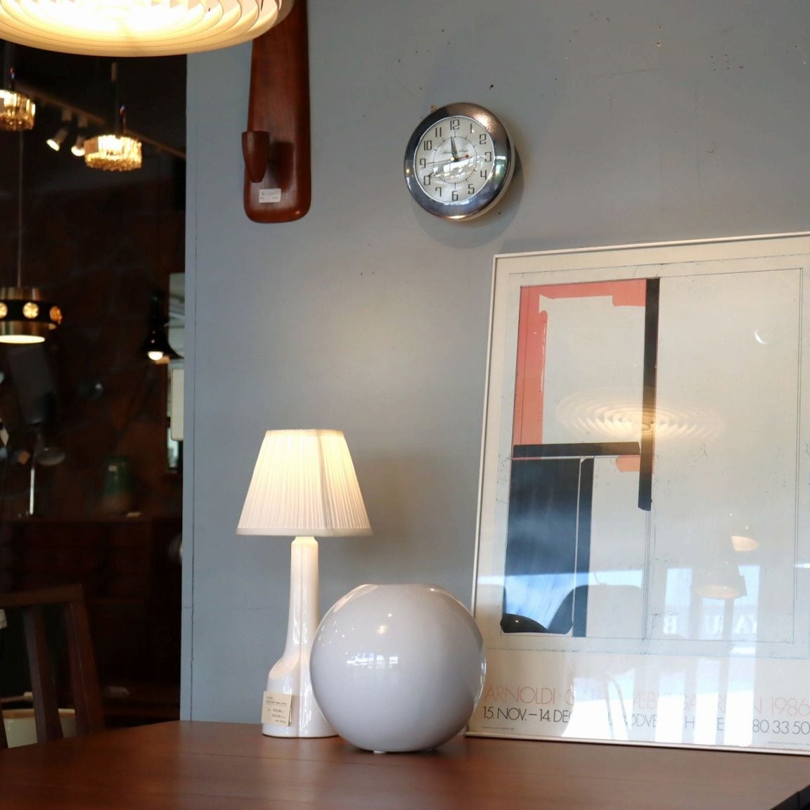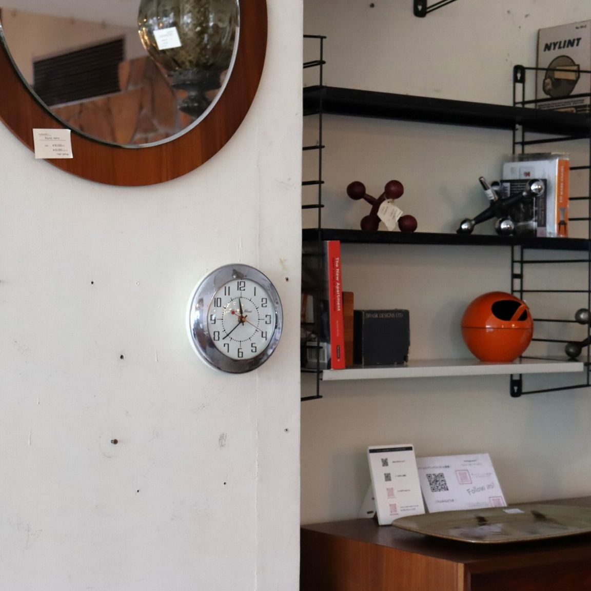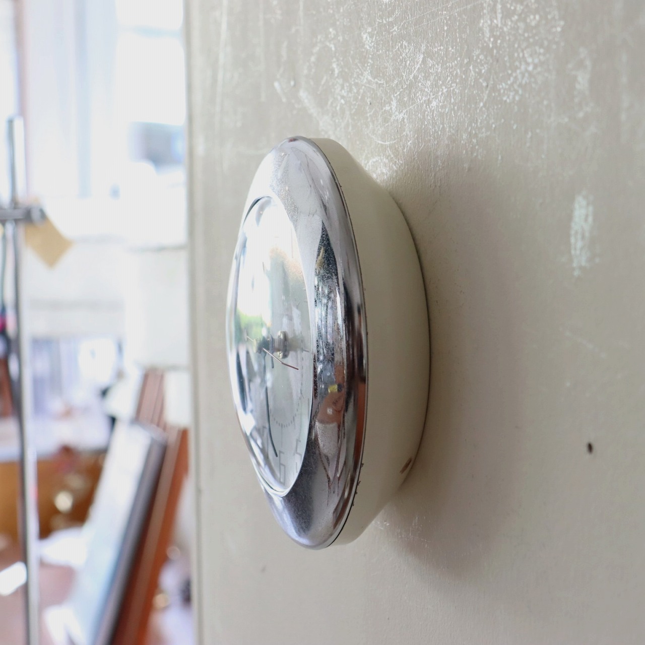 カッパー塗装がミラーのような艶の存在感抜群のウォールクロック。文字盤や背面のベースはホワイトのため、よりシルバーが際立ちます。室内や照明の灯りが映り込み、表情が豊かです。