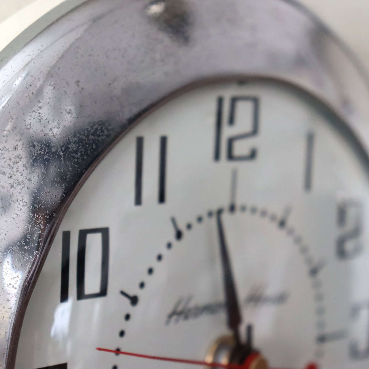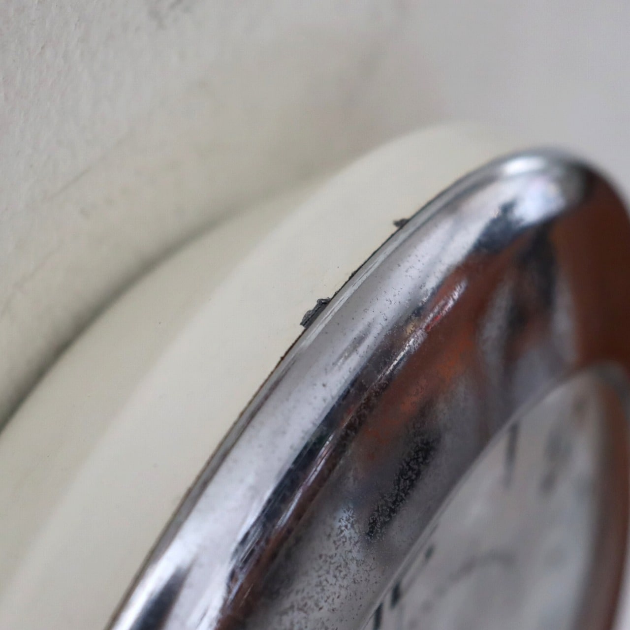 キッチンクロックはもともとコード(コンセント)ですが、ムーブメントに交換しています。大きく目立つようなダメージは見当たりません。