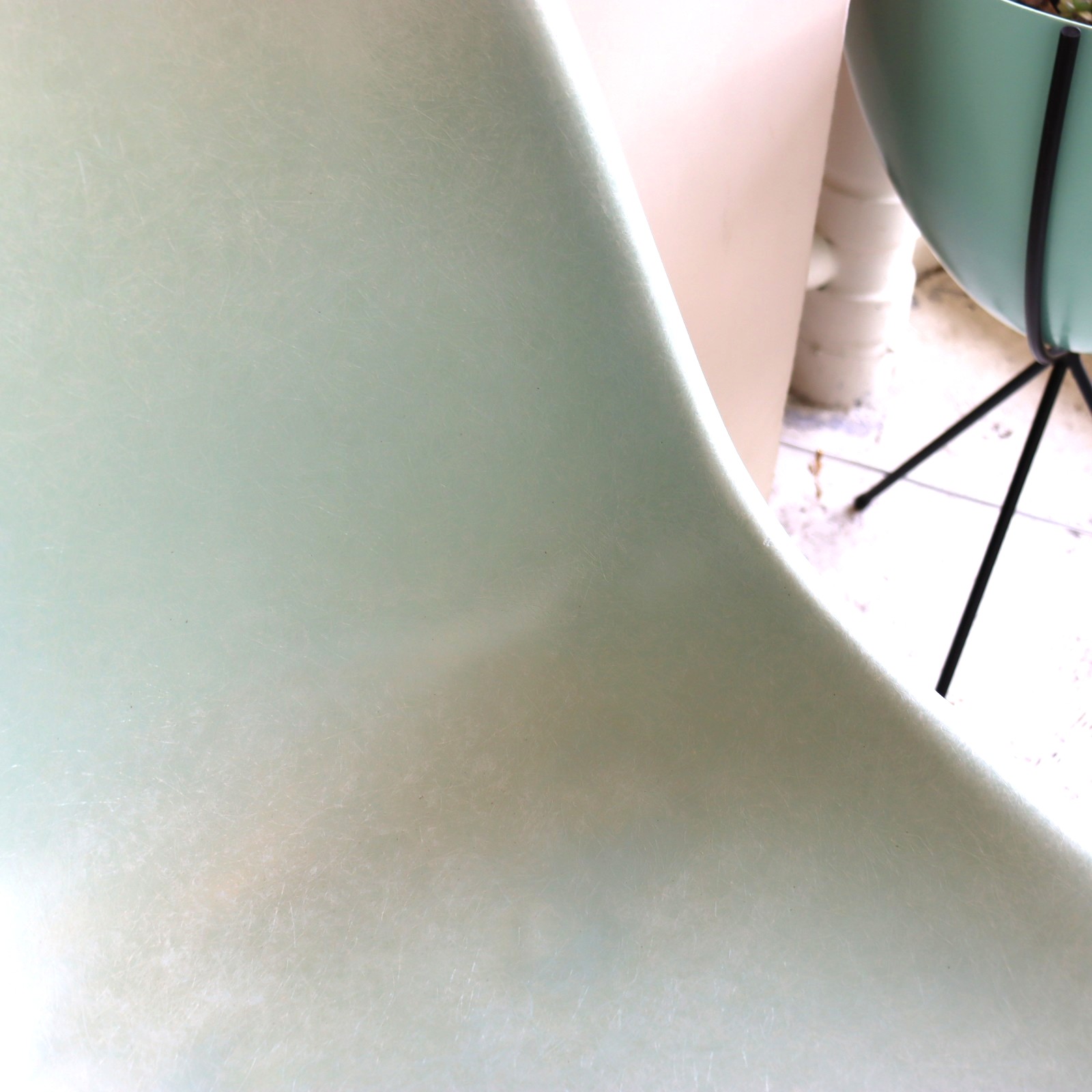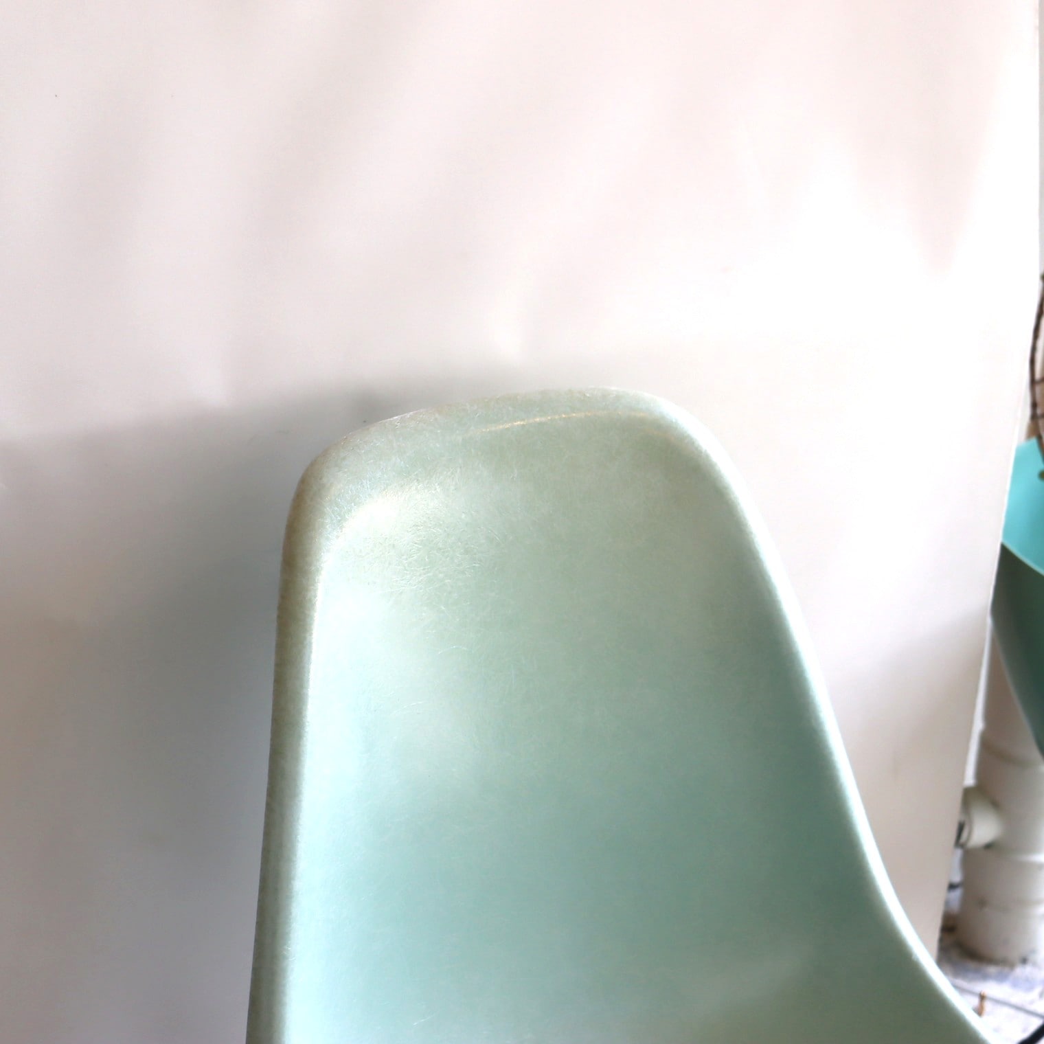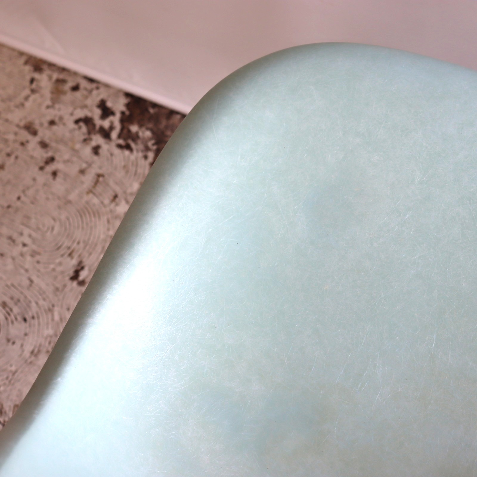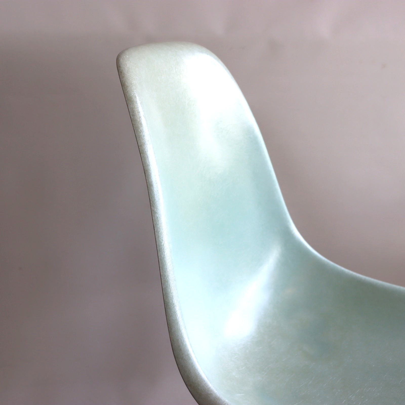 ハーマンミラー社製サイドシェルチェア。チャールズ・イームズデザインのビンテージチェア。FRP(ファイバーグラス)製のロビンズエッグブルー、ナローマウントです。