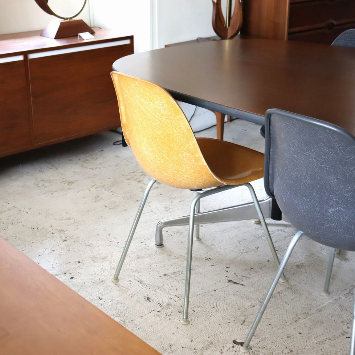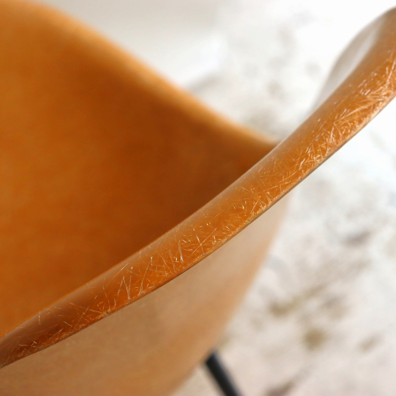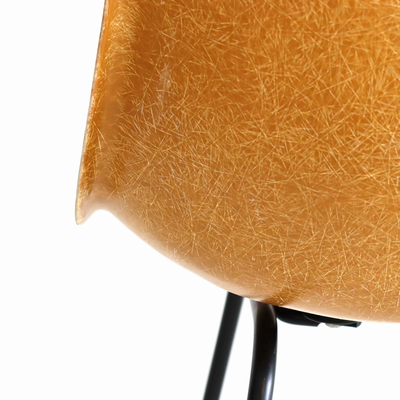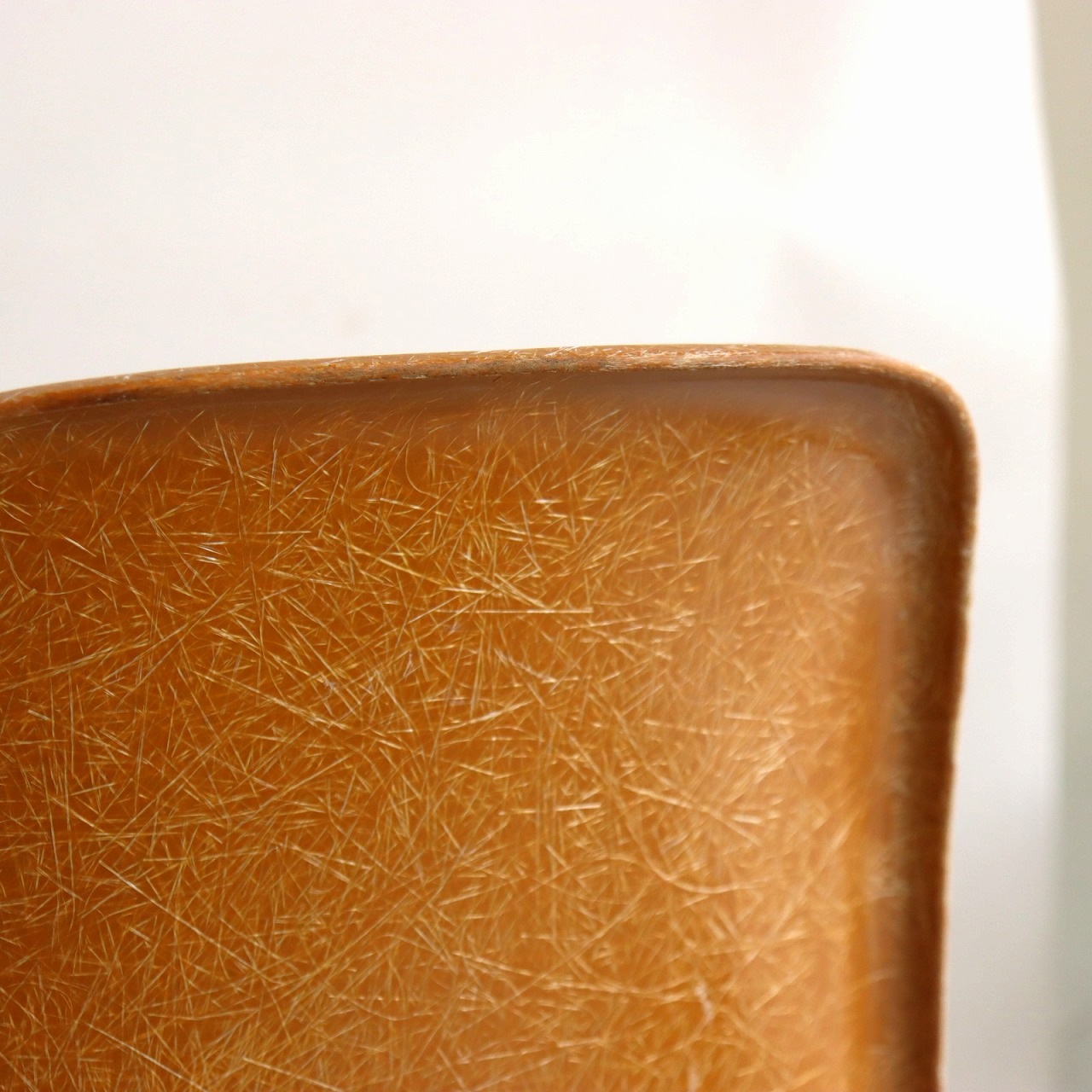 ハーマンミラー社製サイドシェルチェア。チャールズ・イームズデザインのビンテージチェア。FRP(ファイバーグラス)製のオークルダーク、ナローマウントです。