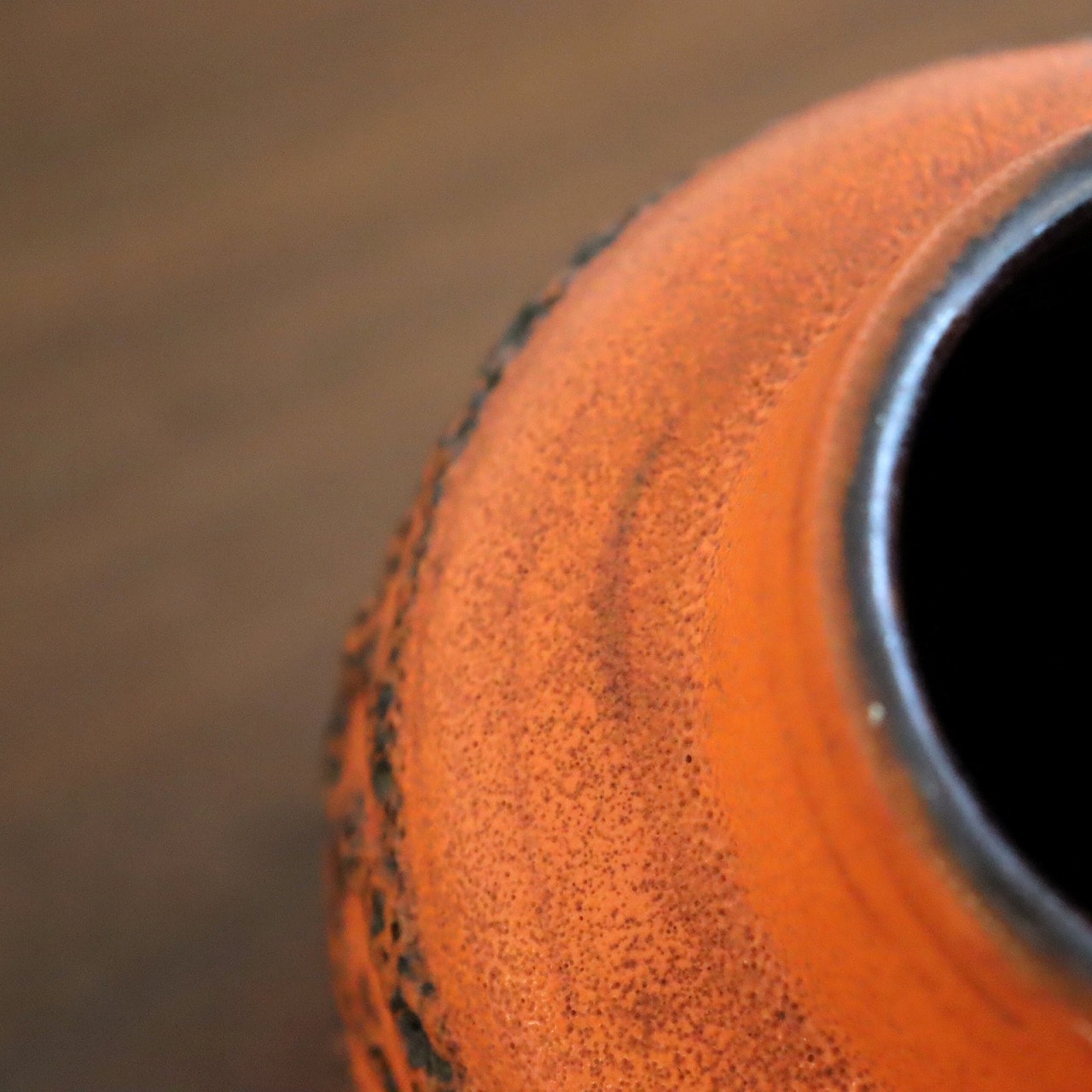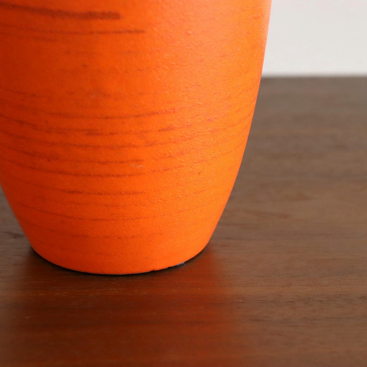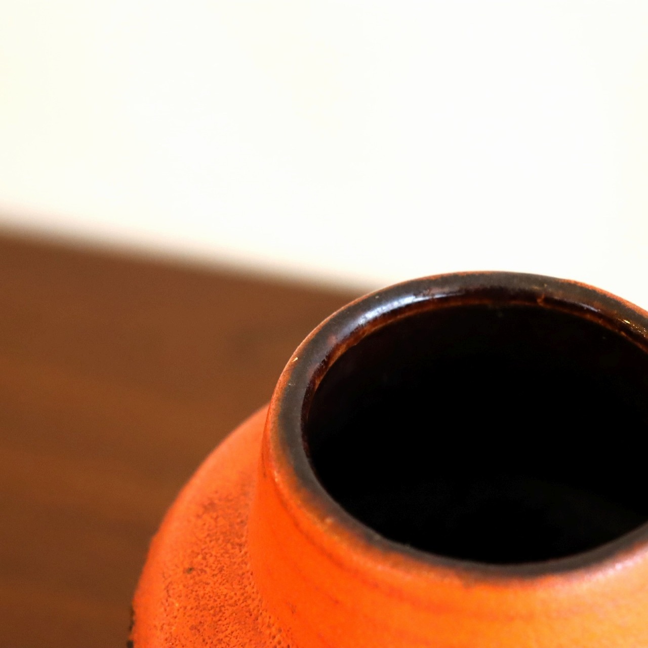 オレンジの釉薬は少しざらざらとした手触り。ところどころ薄い刷毛模様のラインが書かれています。鮮やかなオレンジはお部屋のどこにあっても目立つアイテムになりそうです。