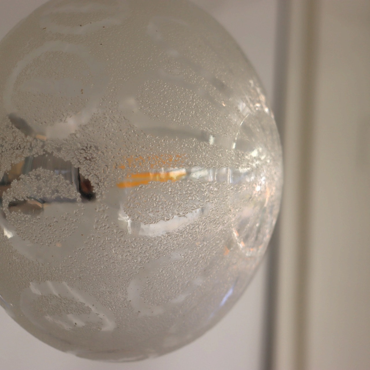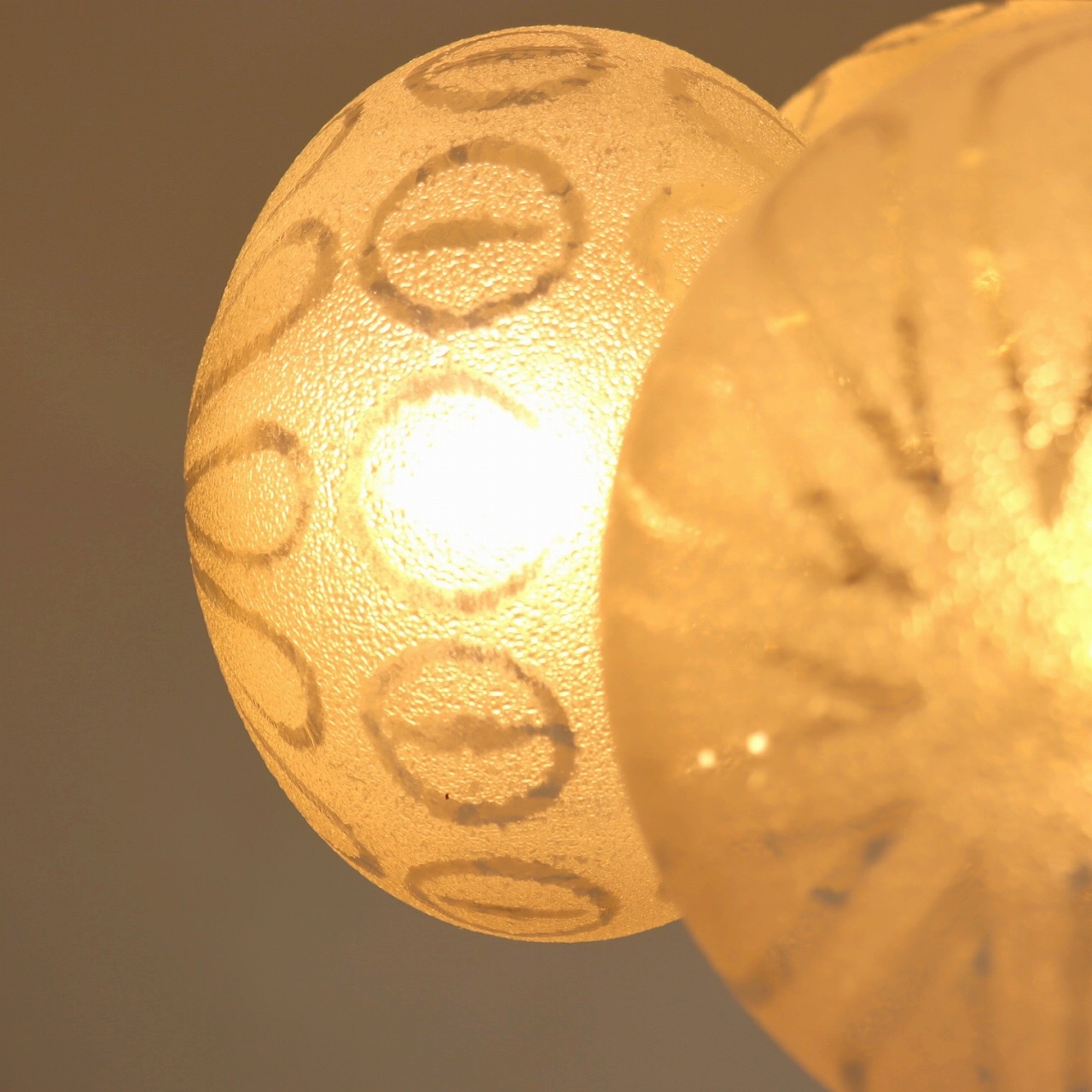 ガラスシェードは楕円形に膨らんだシルエットでクリアガラスとフロストガラスで模様がデザインされています。