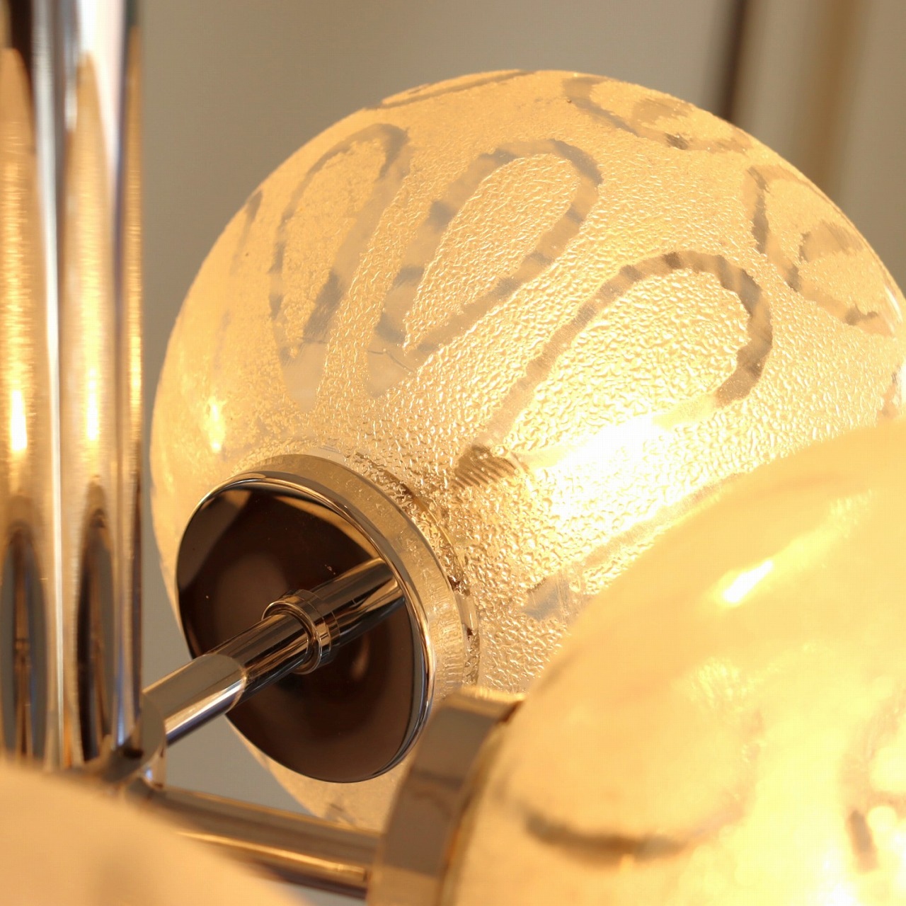 クロームメッキとガラスの艶感は上品で美しい佇まいです。部屋を華やかに照らしてくれます。