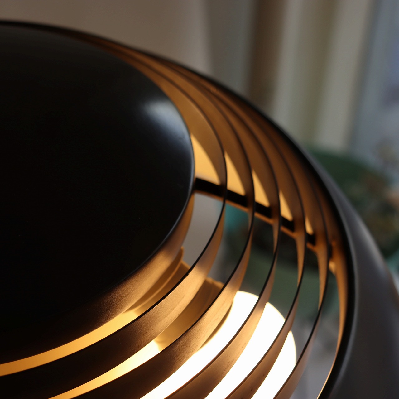 アルネ・ヤコブセンが用いるデザインの基本である幾何学形状が美しく反映されているランプです。半円型のシェード上部には等間隔のスリットが施されていて、隙間から漏れる光は広がりのあるあたたかな灯りです。