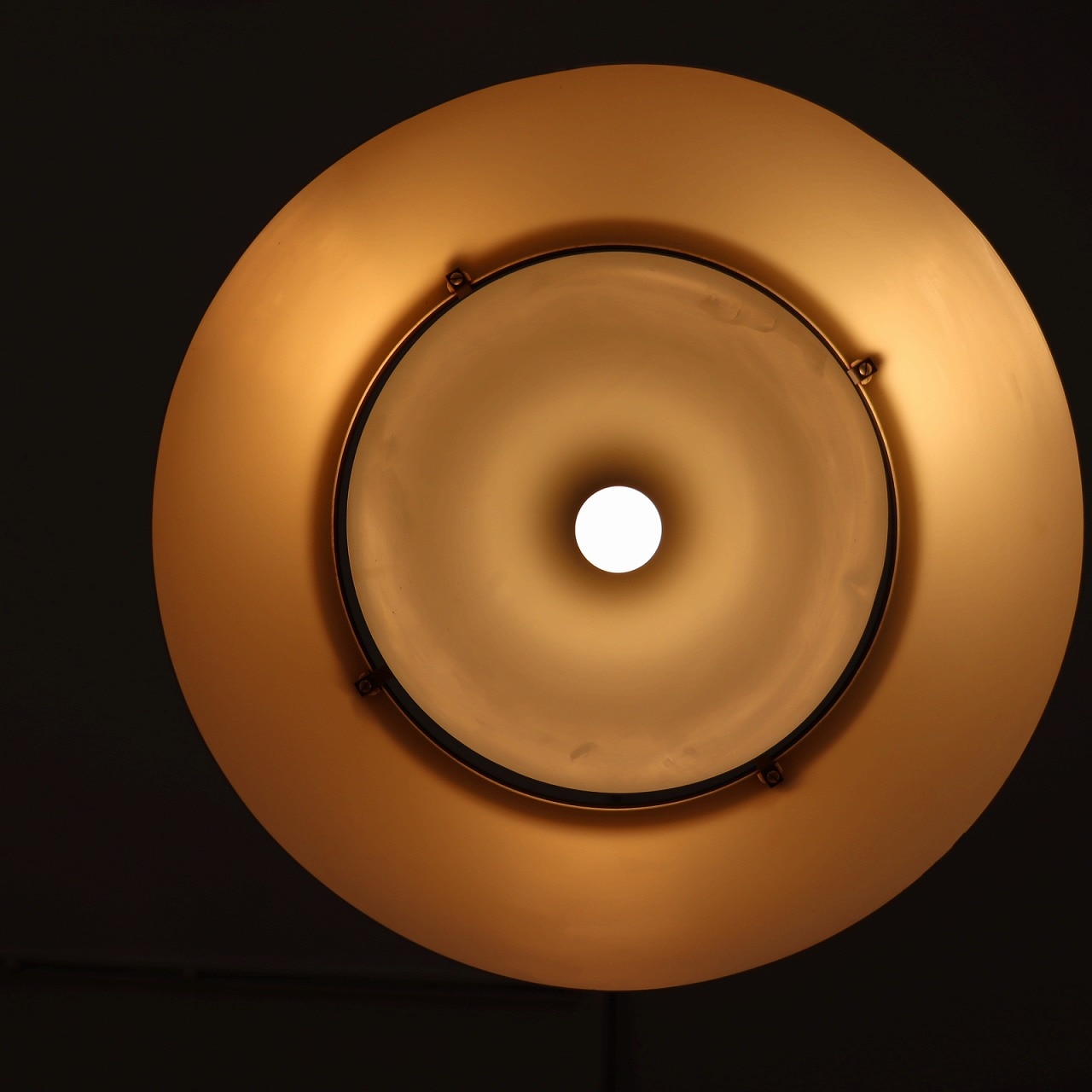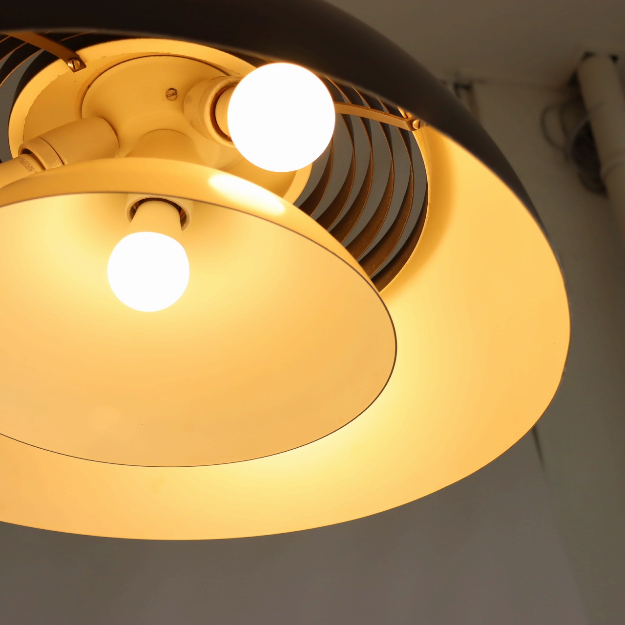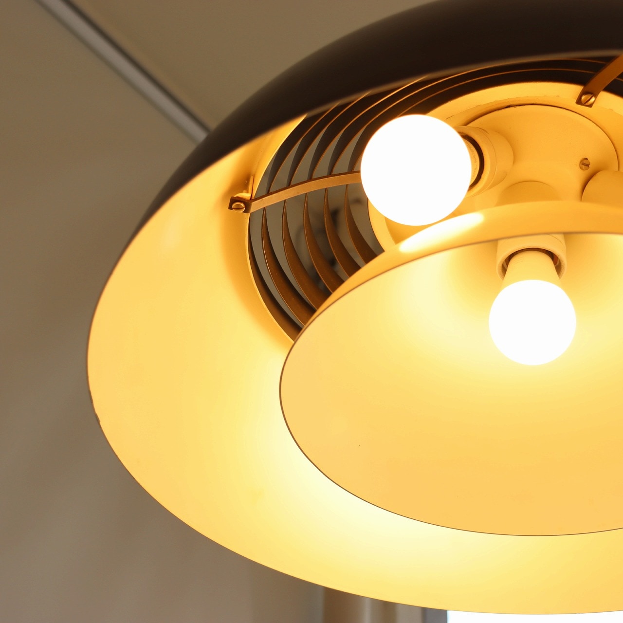 大小、大きさの異なった半円型のシェードが2つ重なったデザイン。大きさが異なるシェードを重ねたデンマークらしいつくりで、光の濃淡とグラデーションが楽しめるランプです。