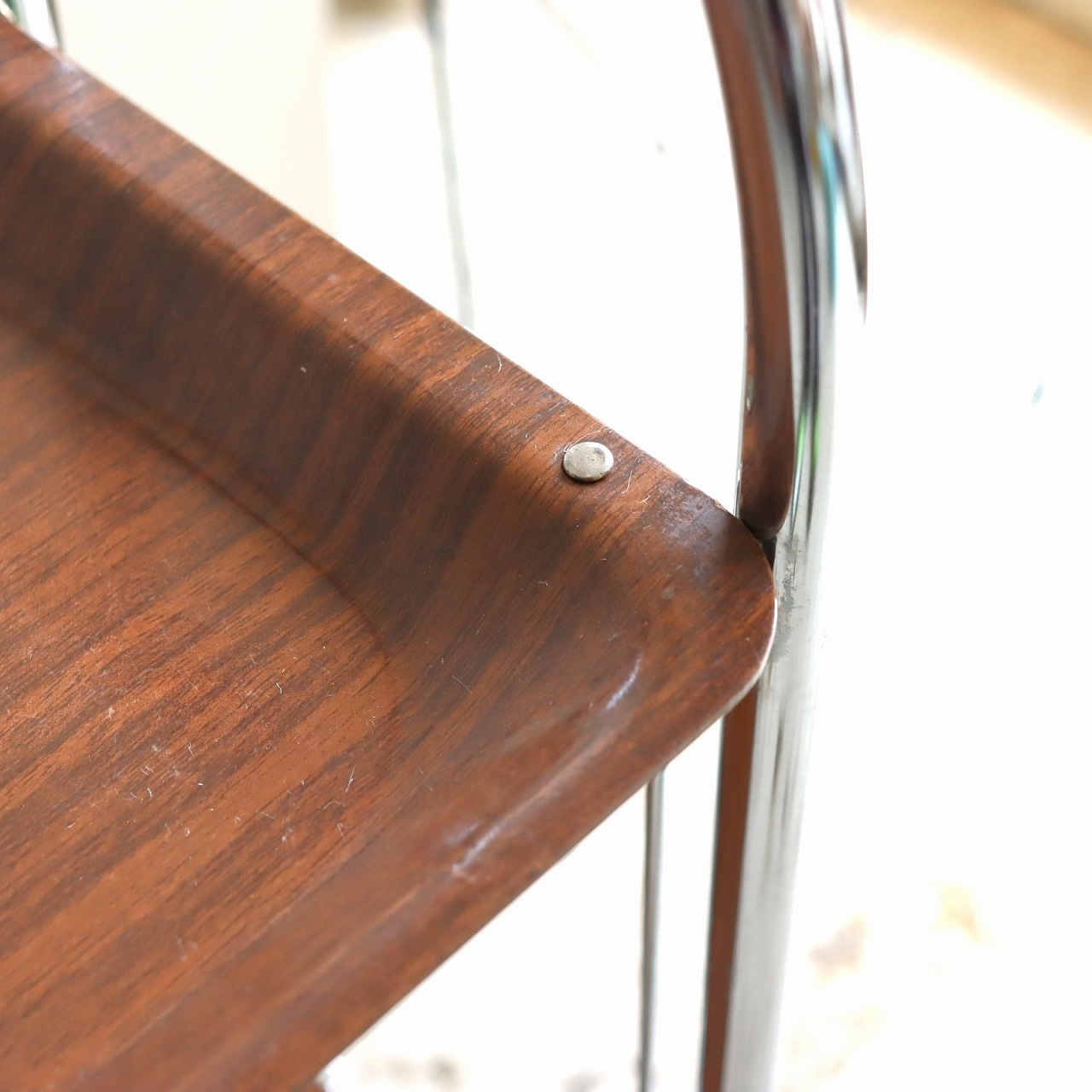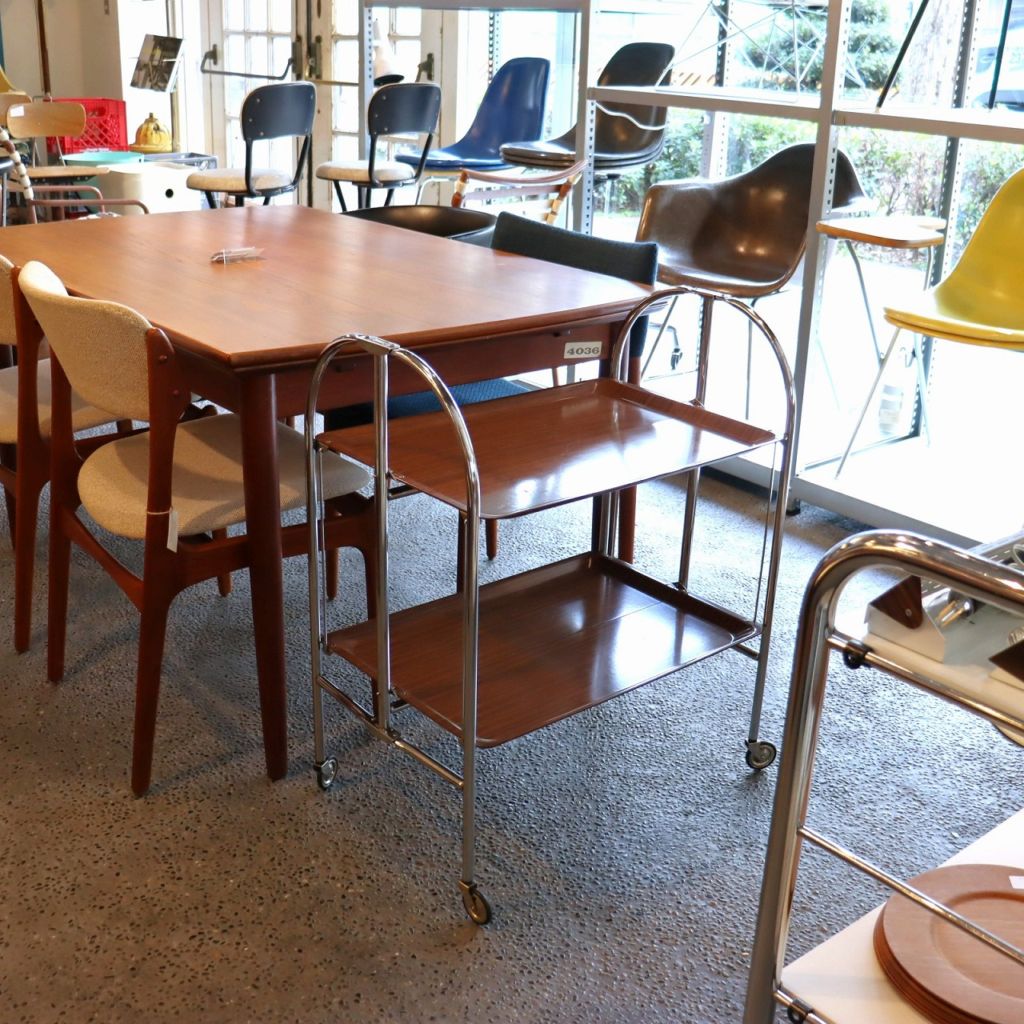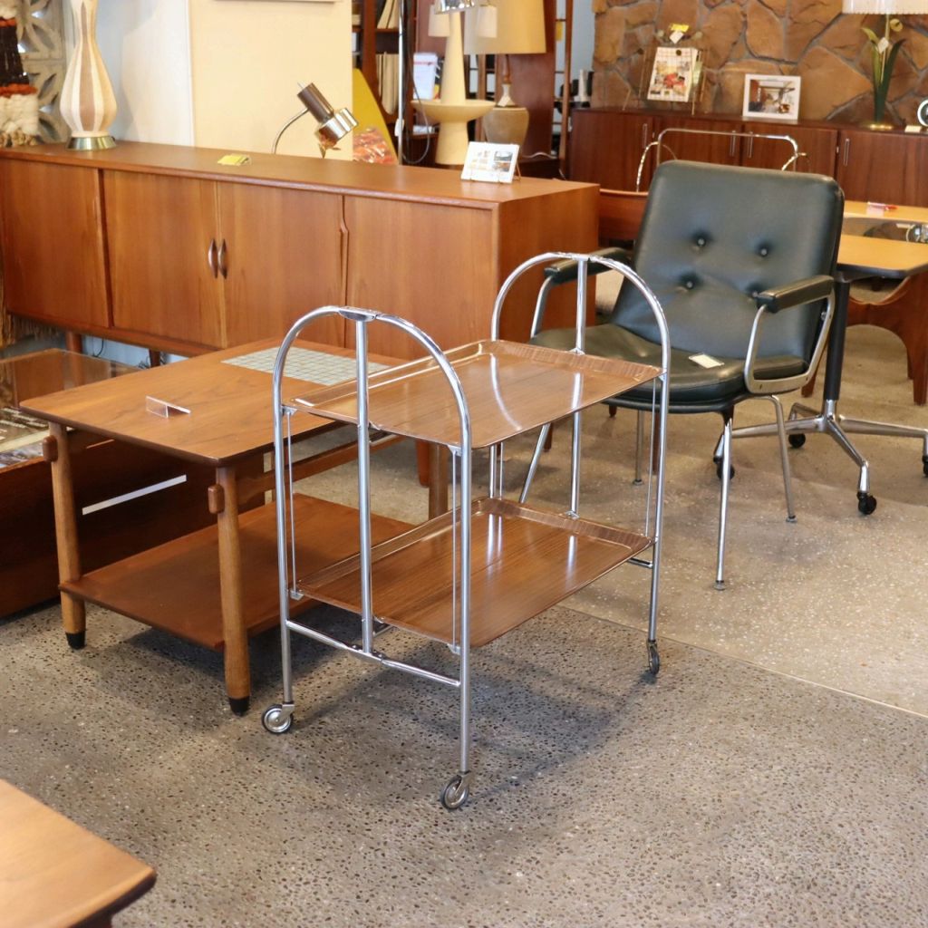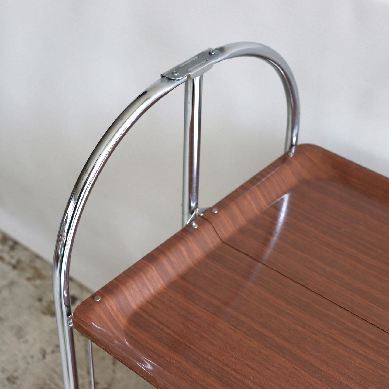 アーチ型のキャスターベースに樹脂製トレーが2枚。マットな質感はクールな佇まいです。