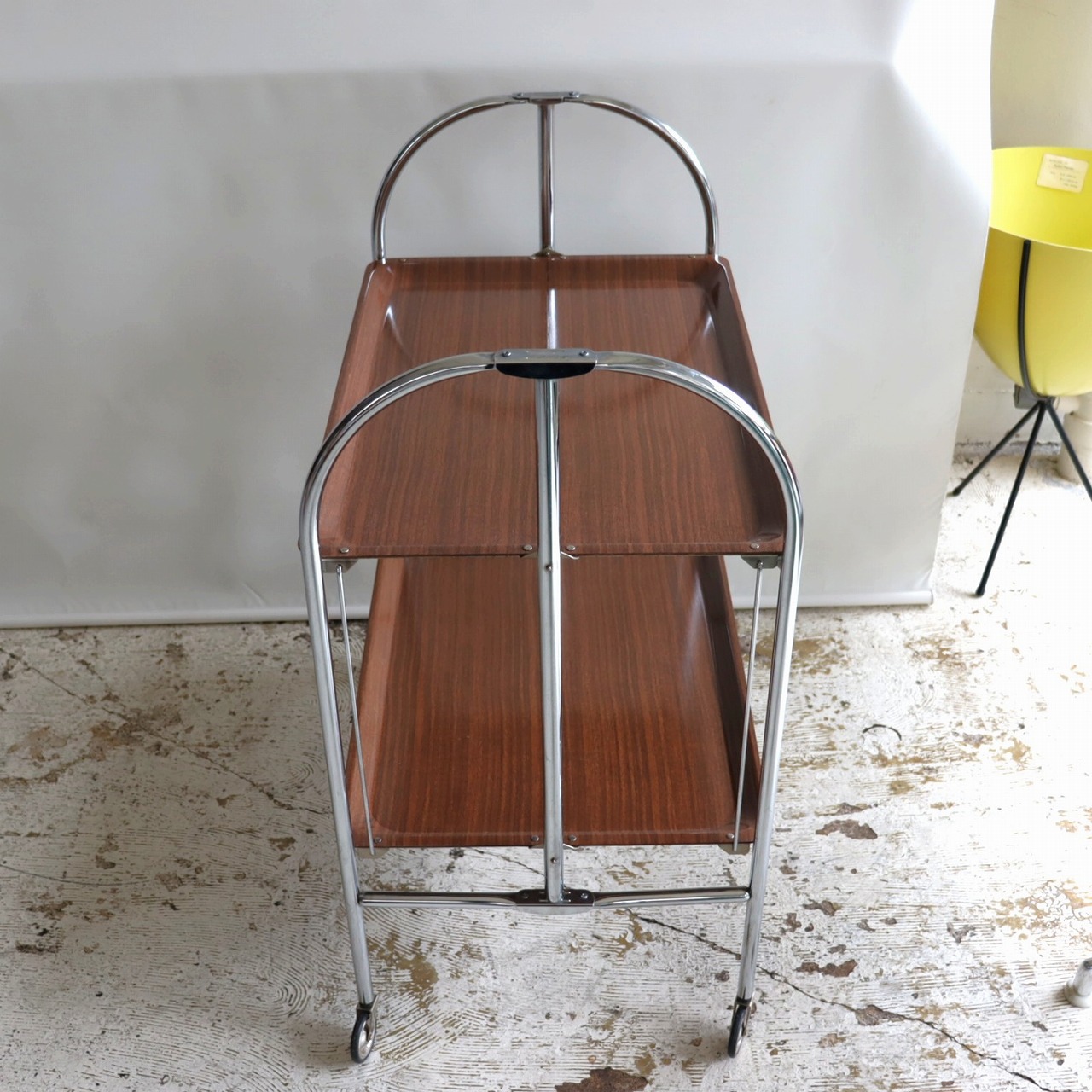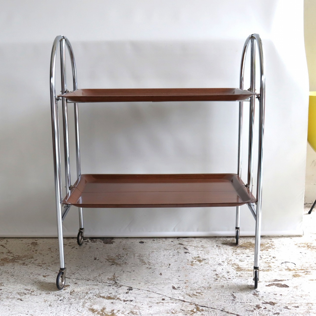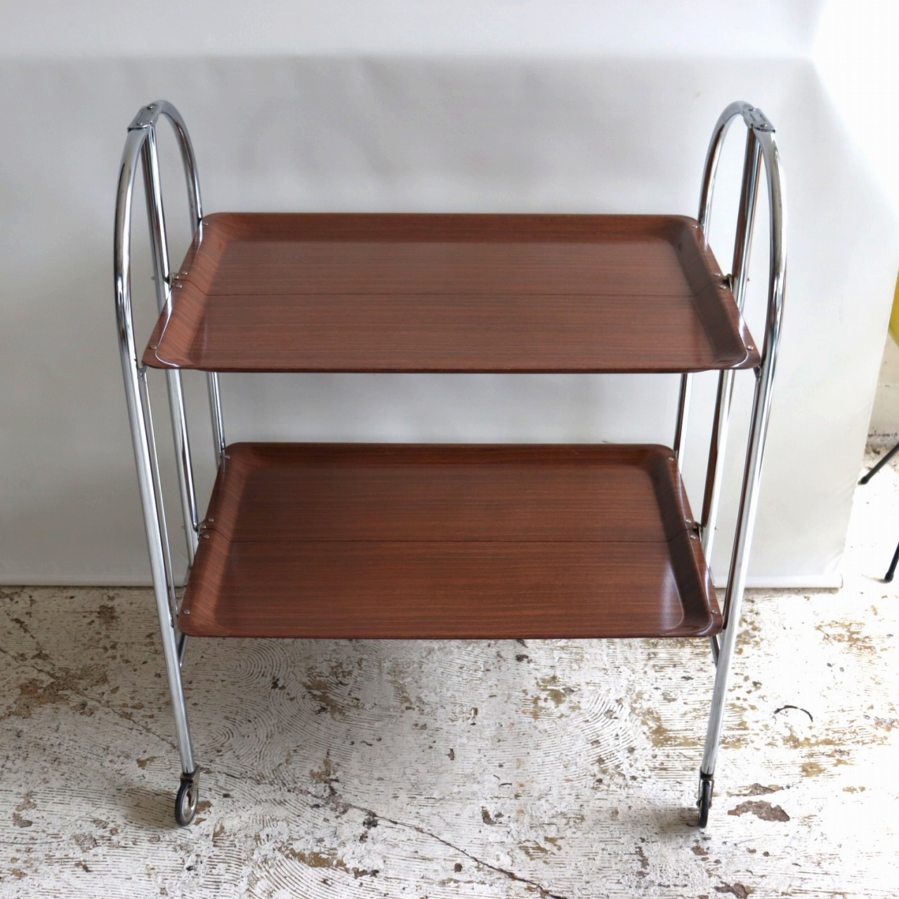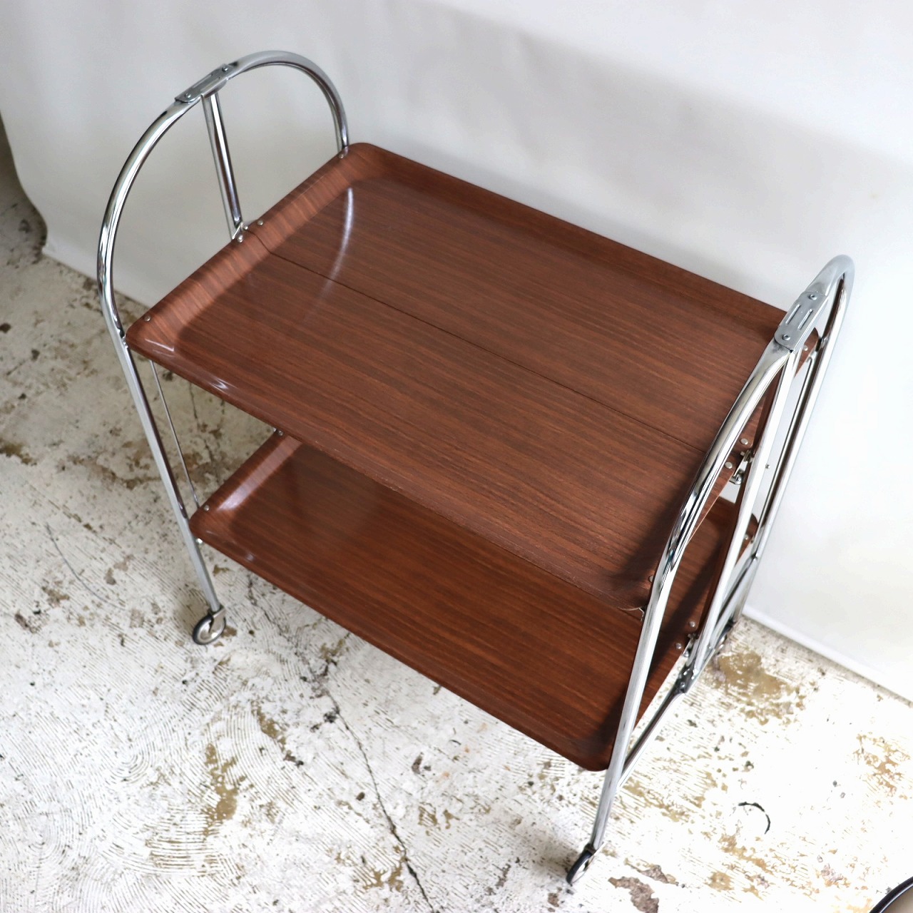ワゴン/カート。折り畳みのできる2段ワゴンです。折りたたんでも自立する便利なキャスターワゴン。