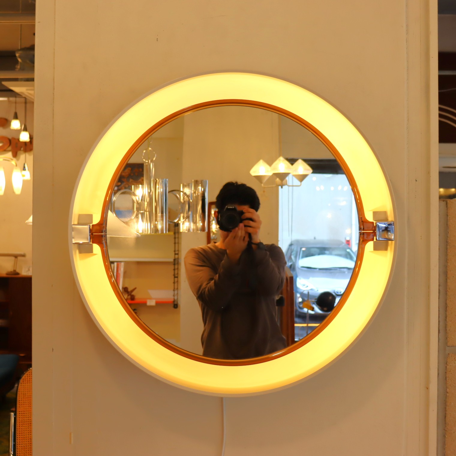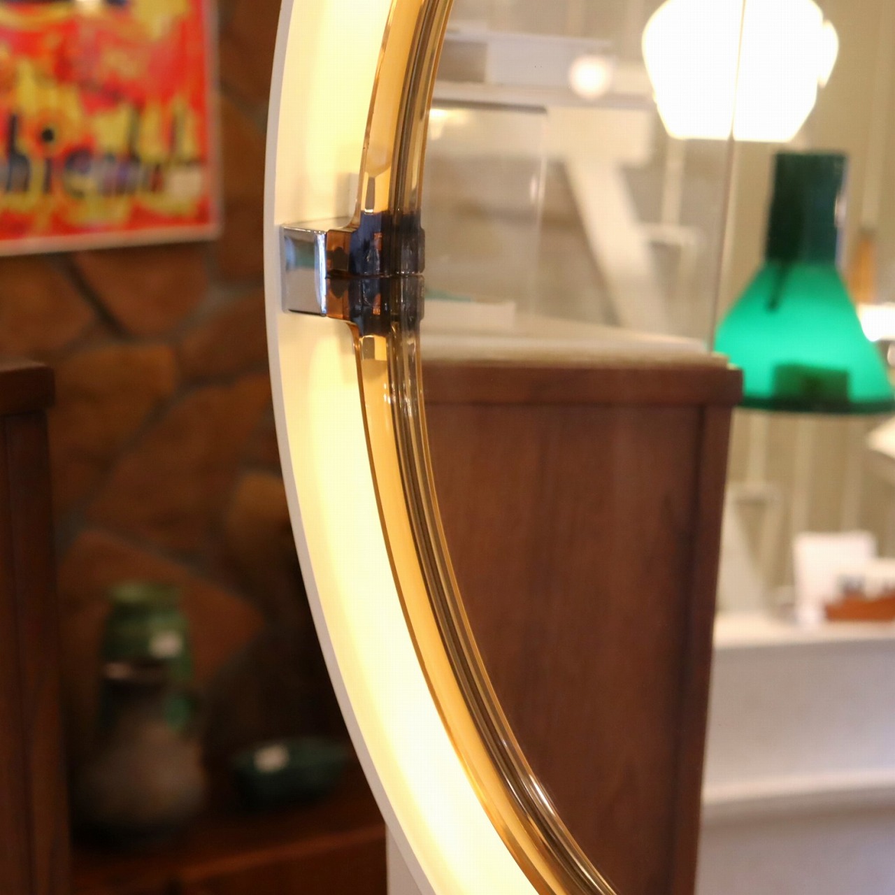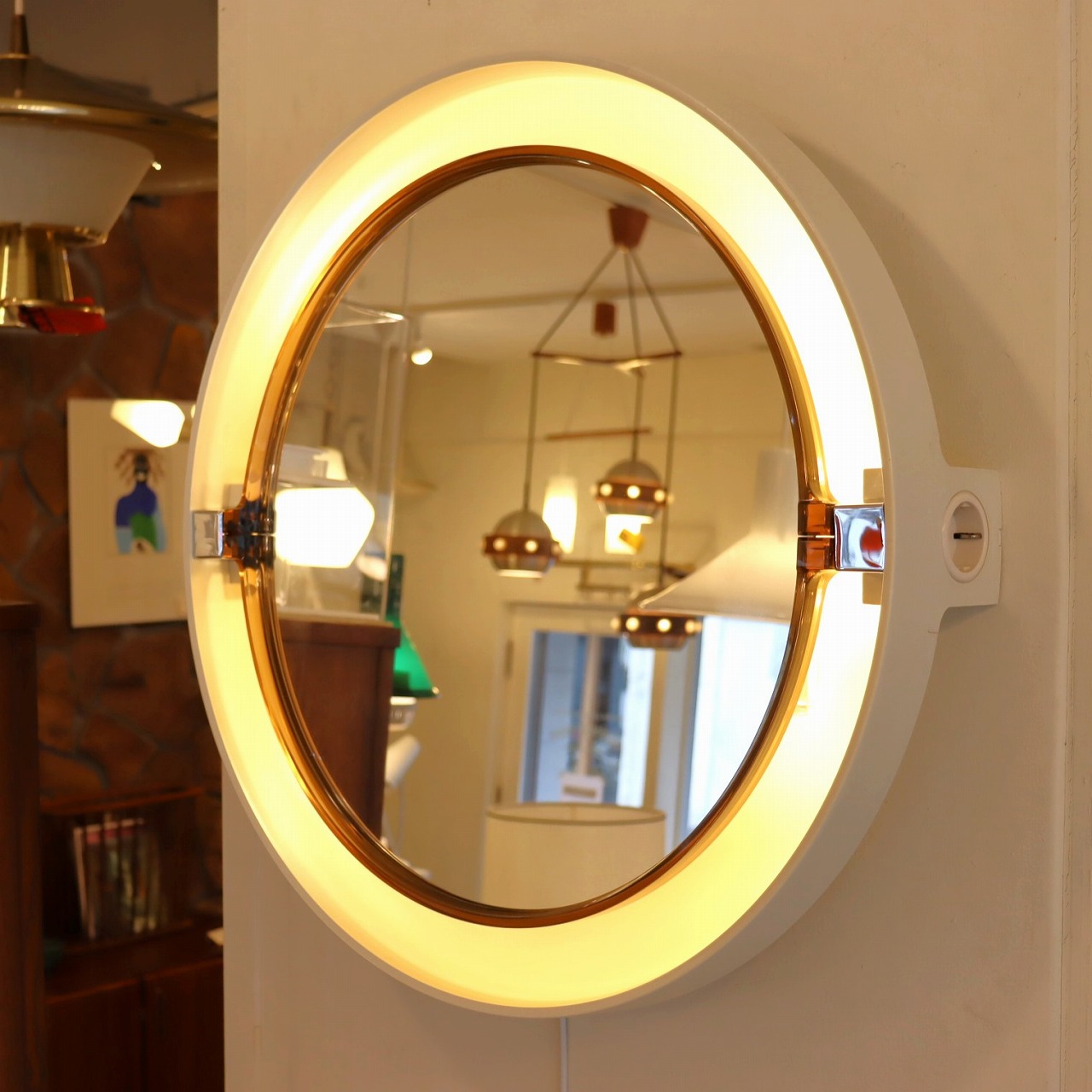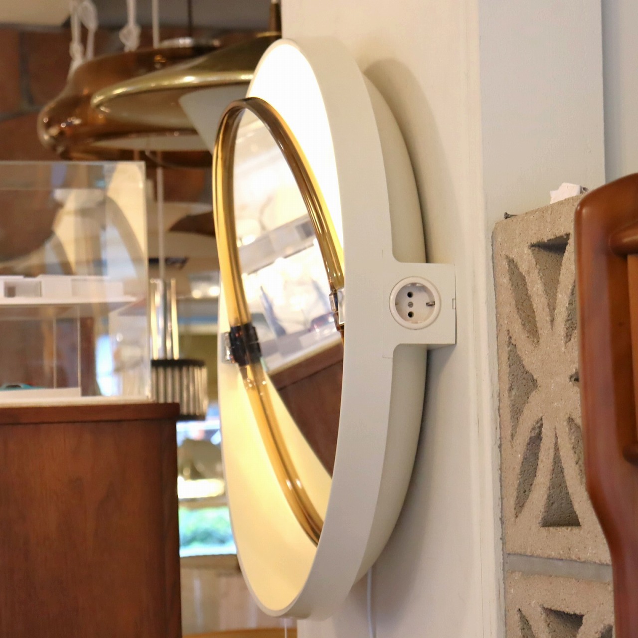 Allibert社製バックライトラウンドミラー。70年代にアリバート社が製造した、プラスチックとアクリル製の円形ライトミラー。