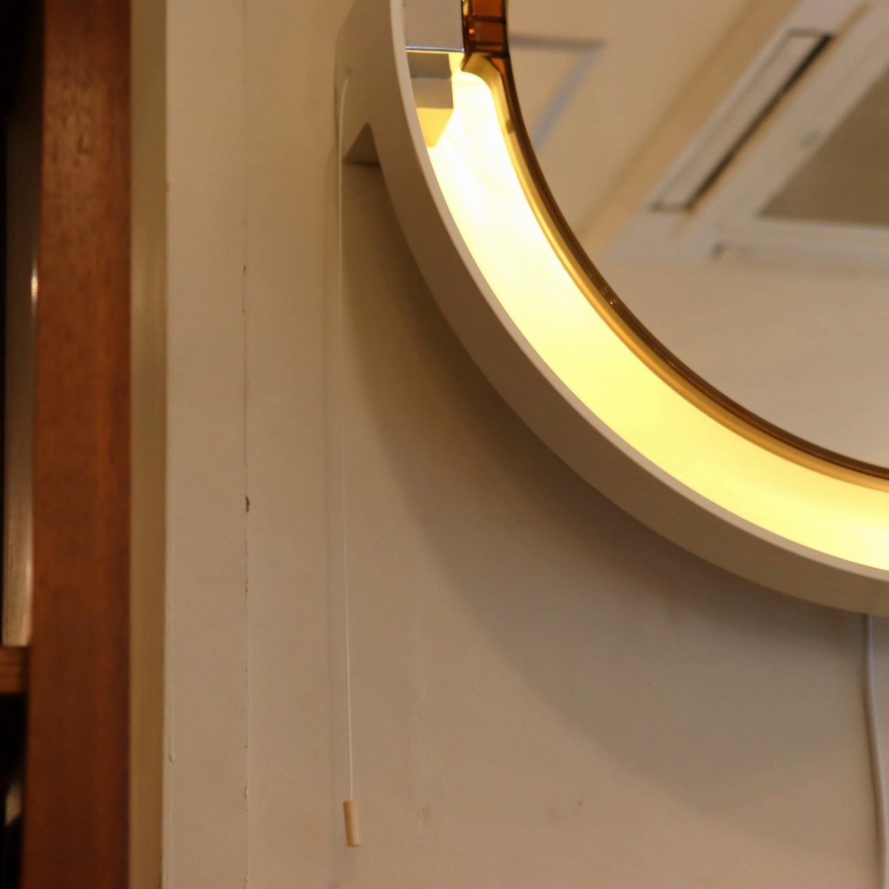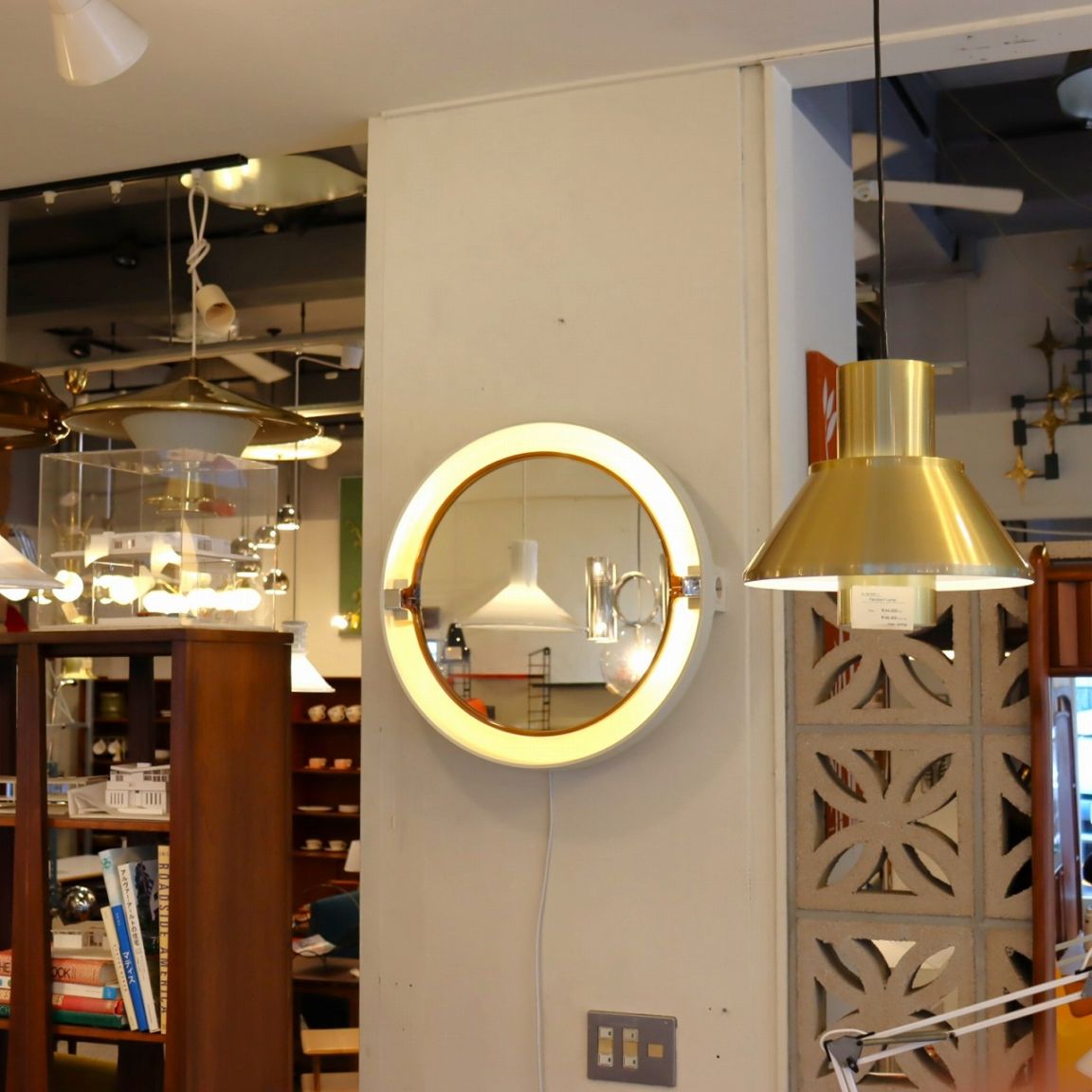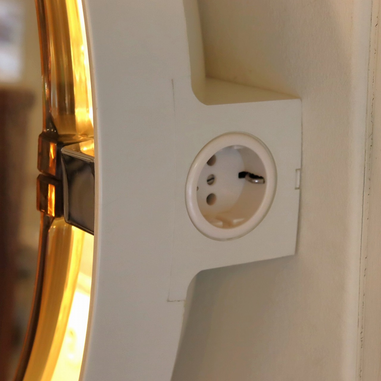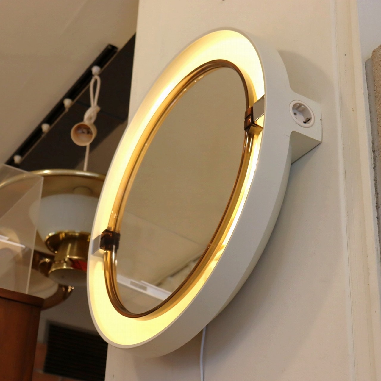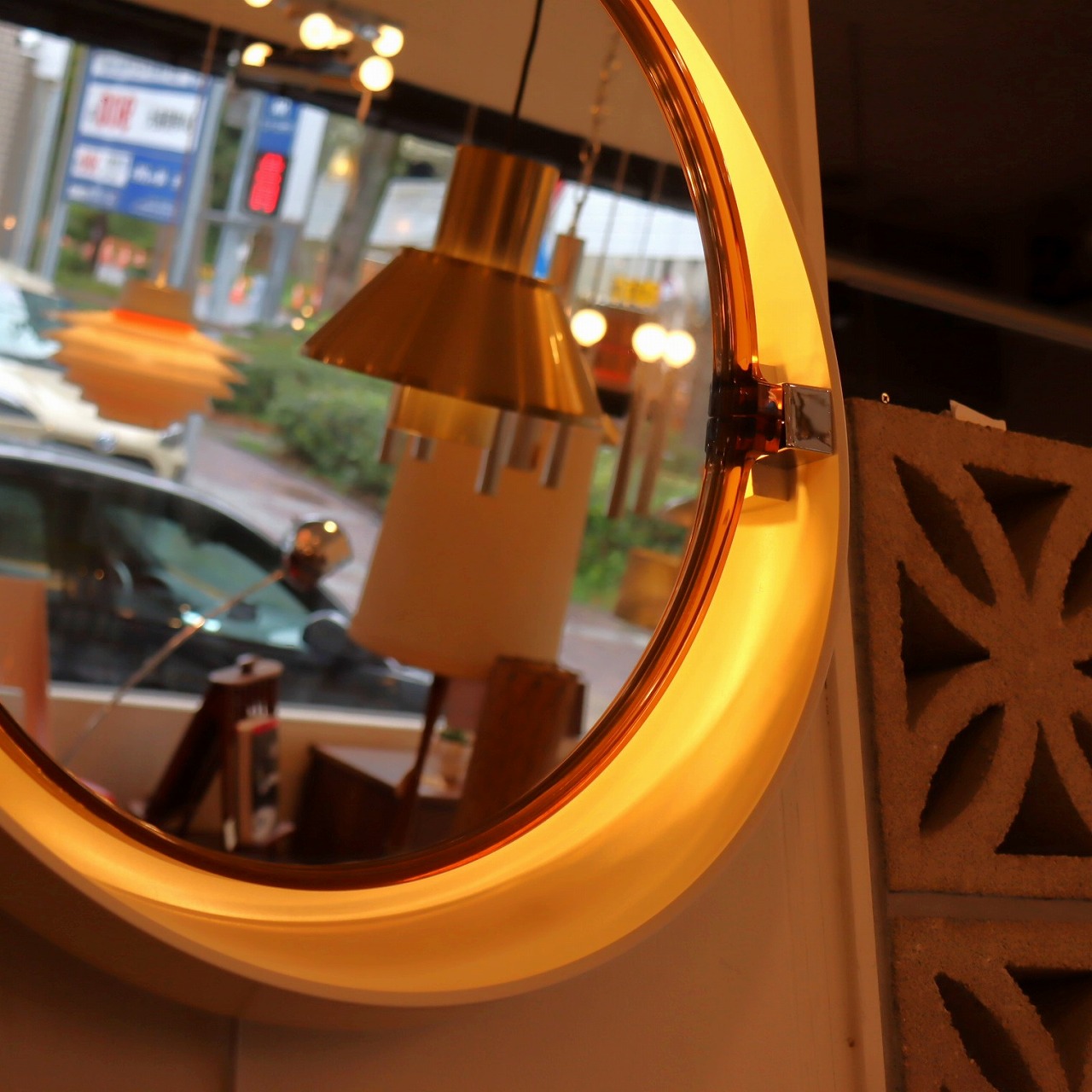 Allibert社製バックライトラウンドミラー。70年代にアリバート社が製造した、プラスチックとアクリル製の円形ライトミラー。