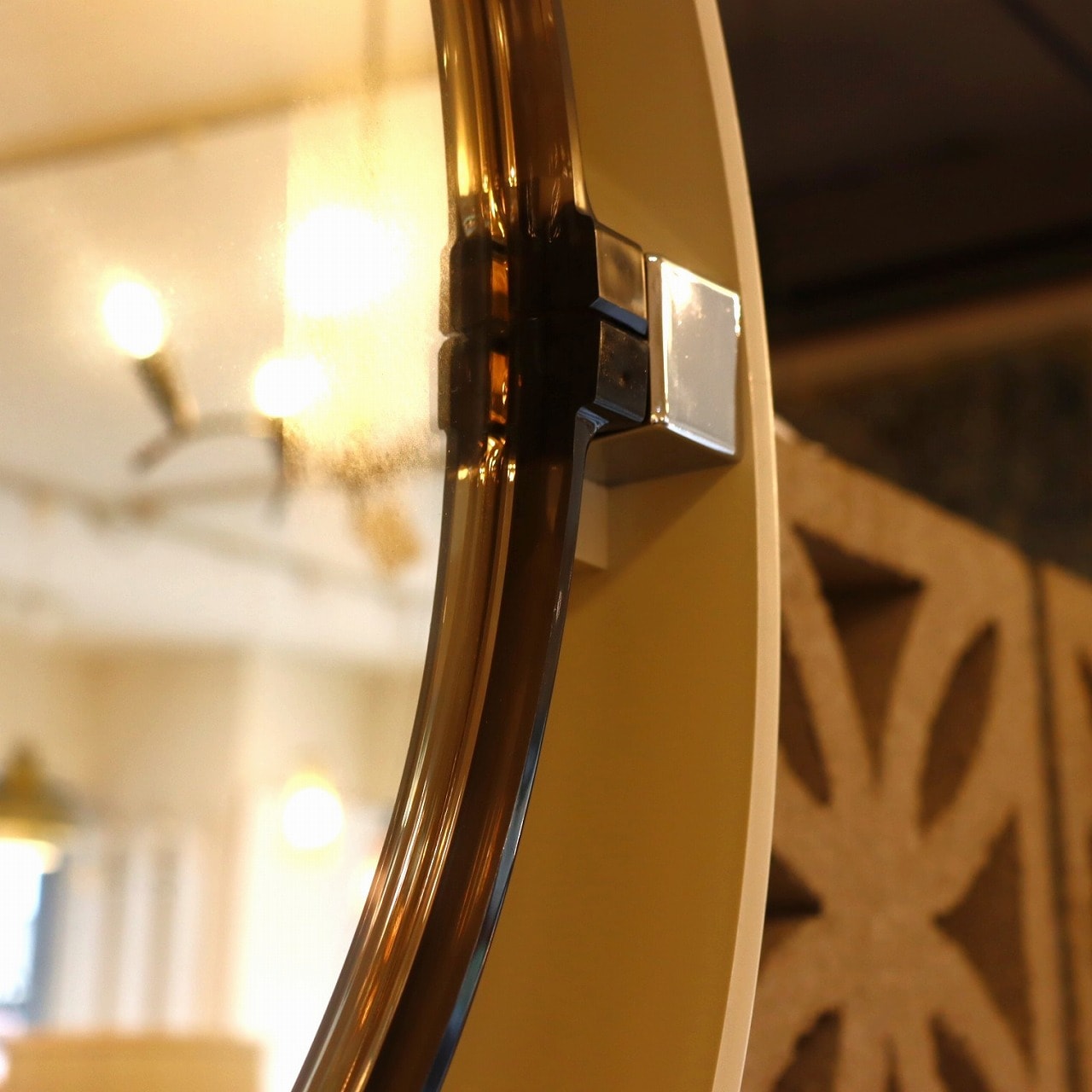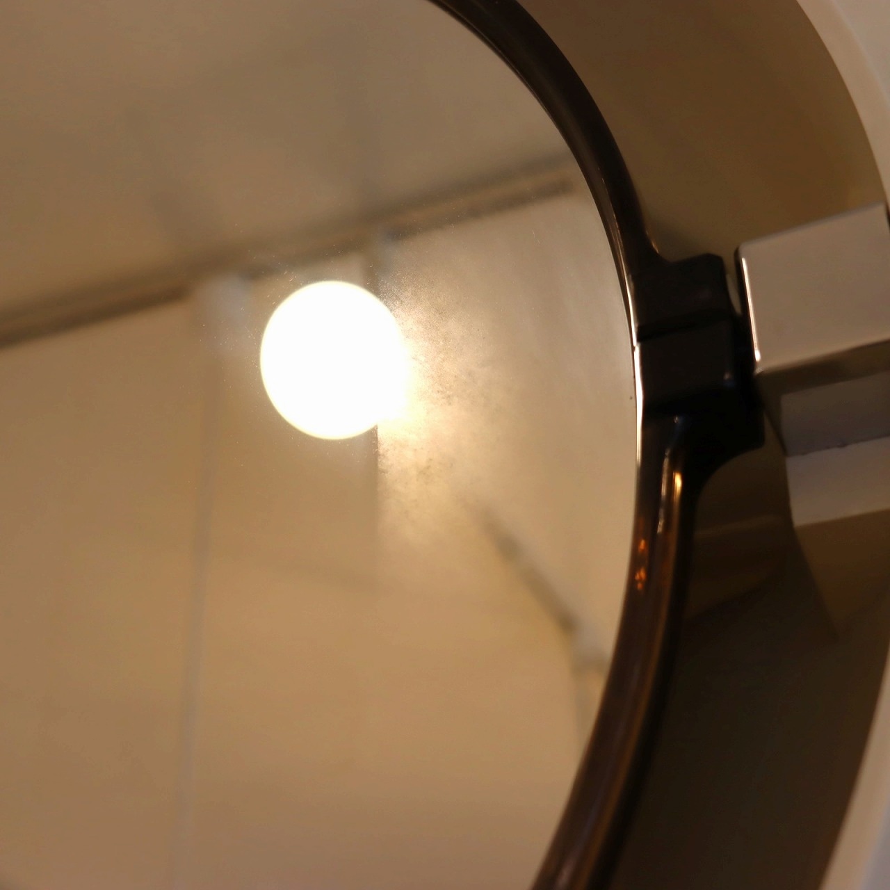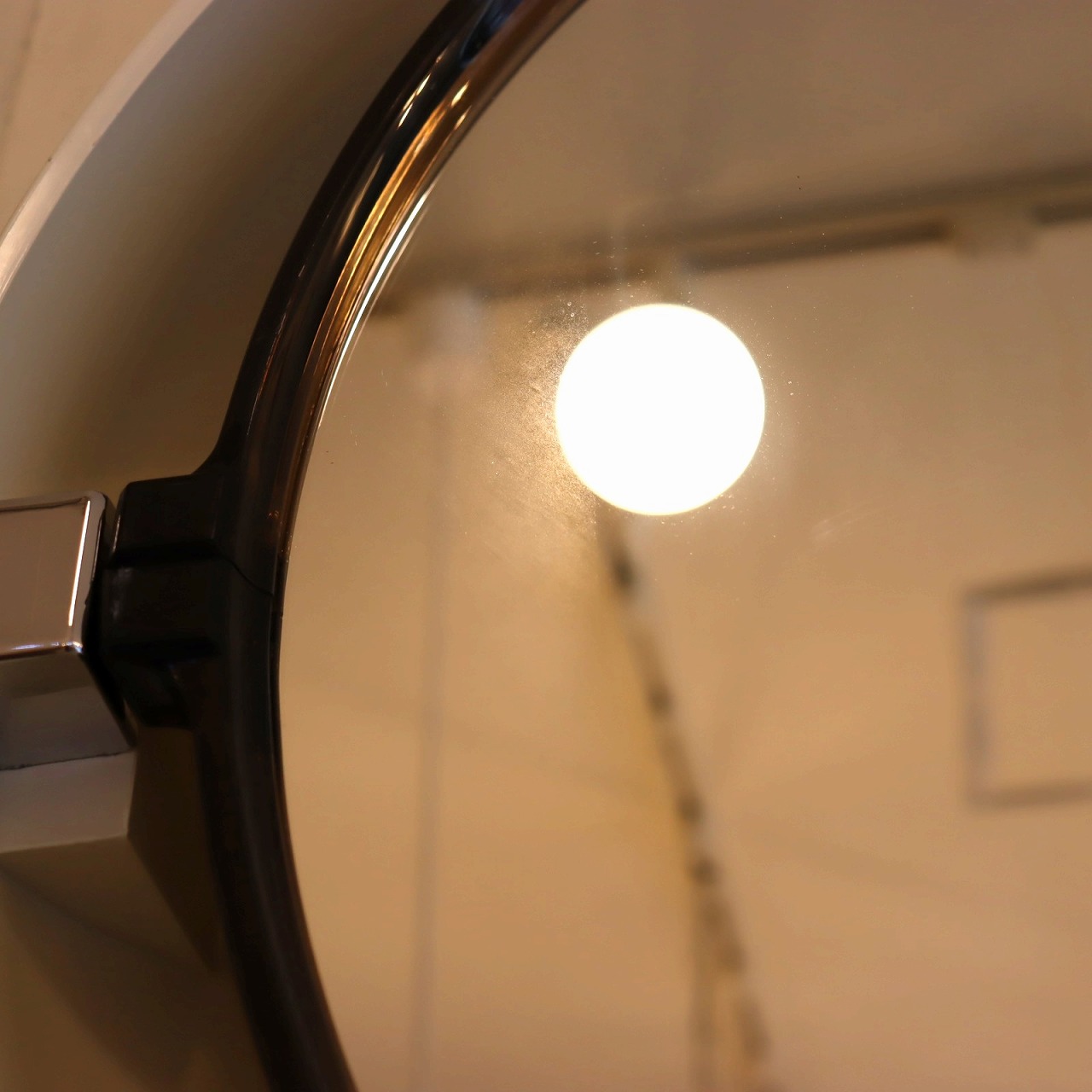ミラーは回転可動式で、上下に角度を変えることができます。アクリルのフレームがミラーを縁取っていてスペースエイジな雰囲気もとても素敵。