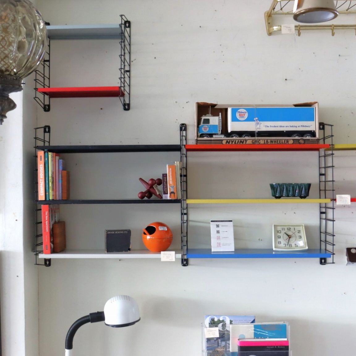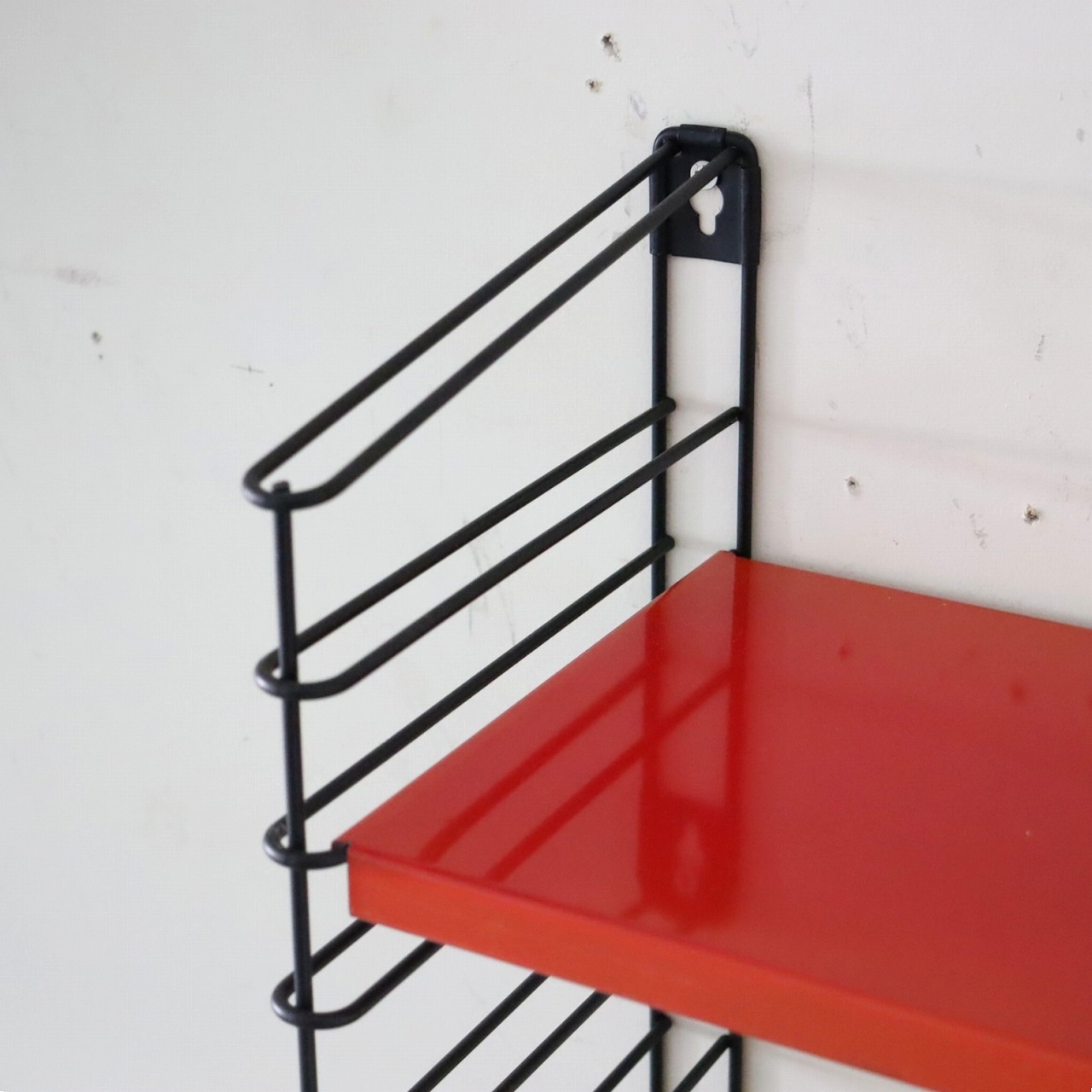 トマド社製ウォールシェルフ。ポップな雰囲気のスチール板がかわいいユニットシェルフ。