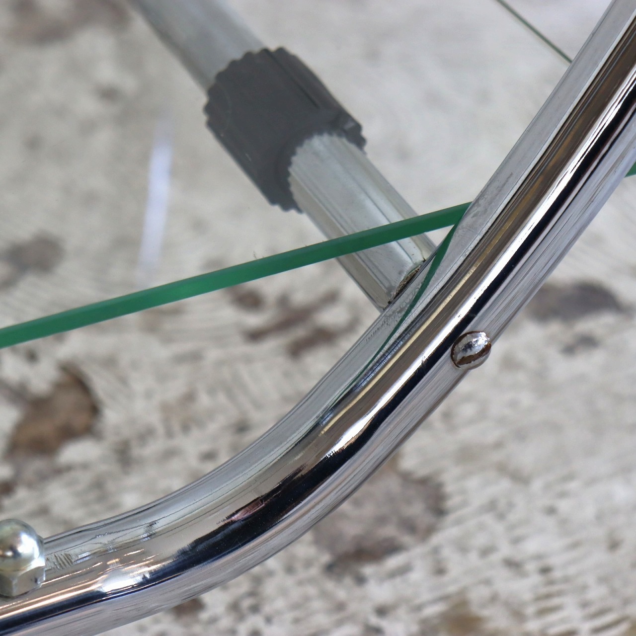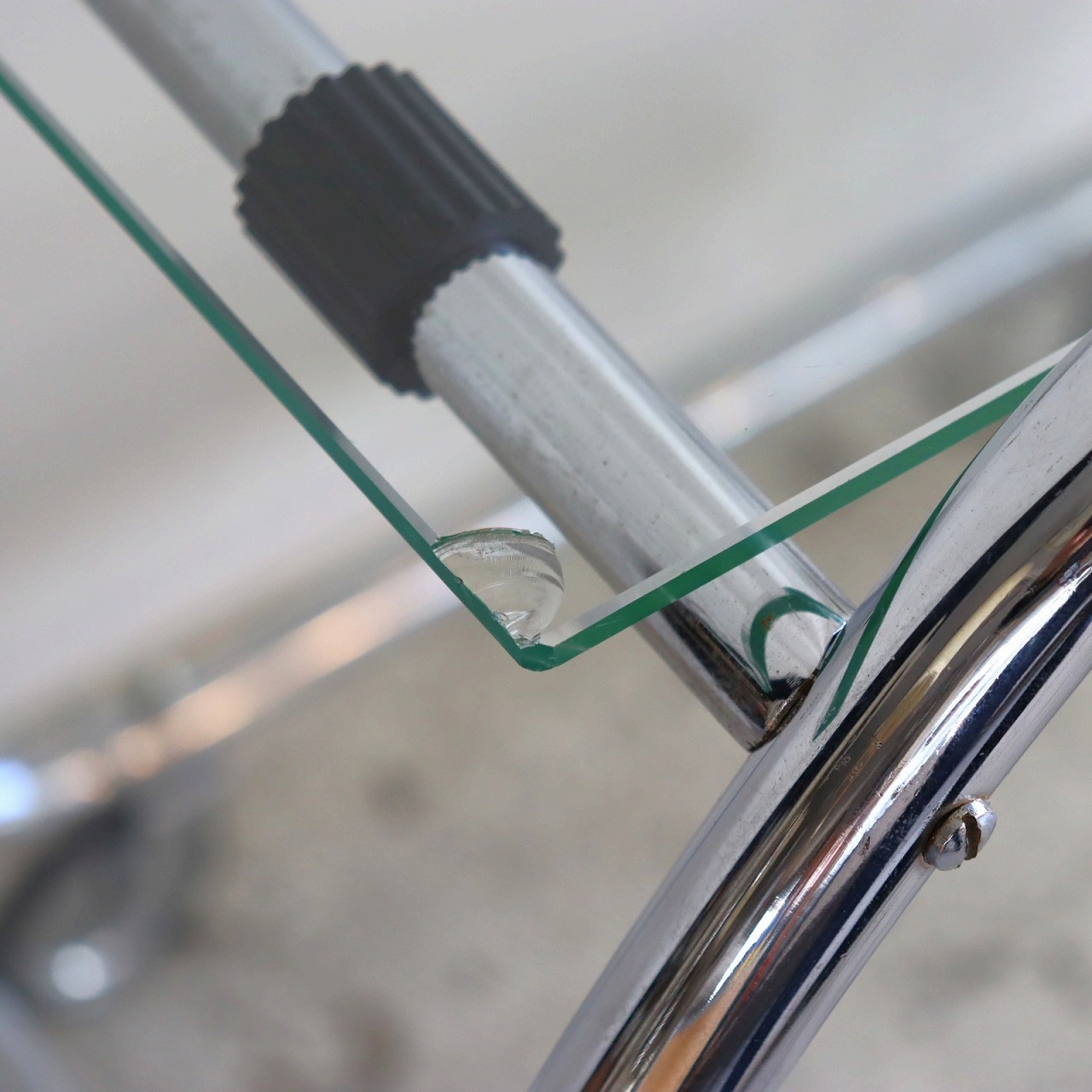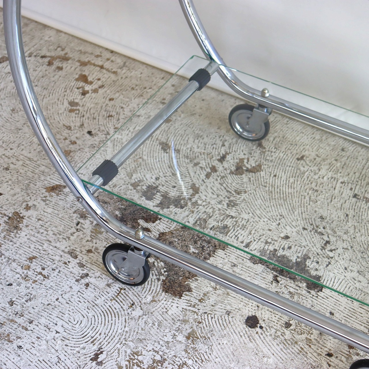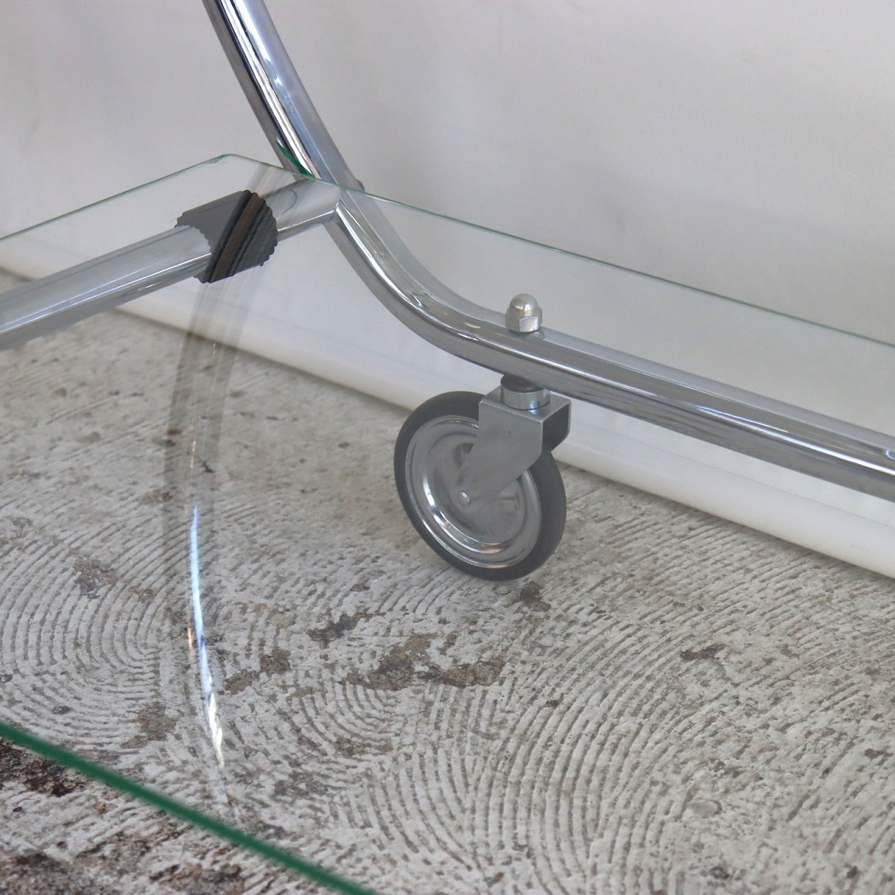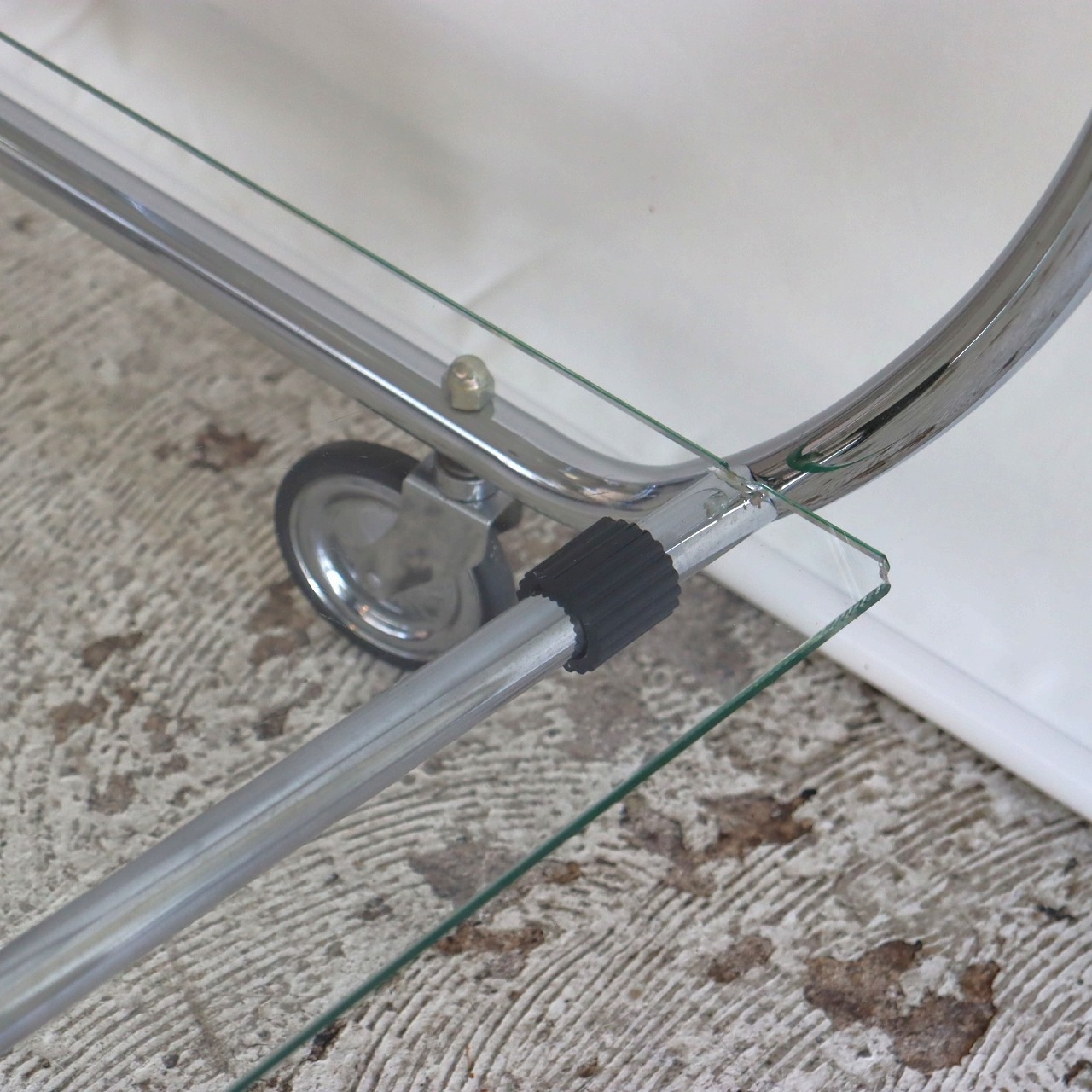 ガラスの端にいくつか欠けがありますが、大きく目立つようなダメージはありません。キャスターの動きは問題なくスムーズです。